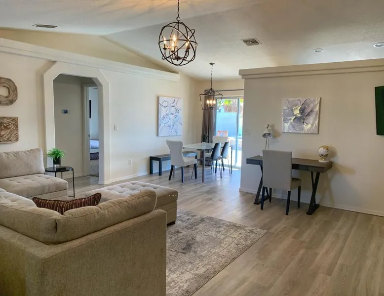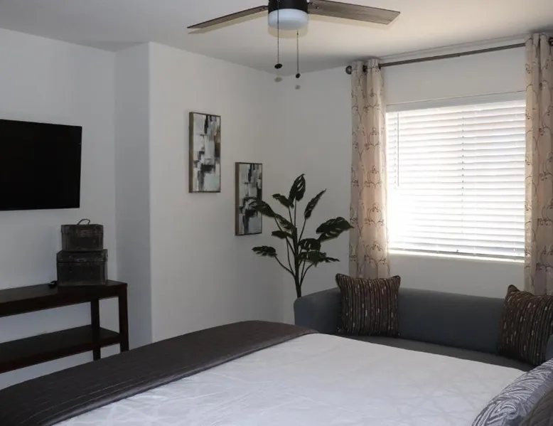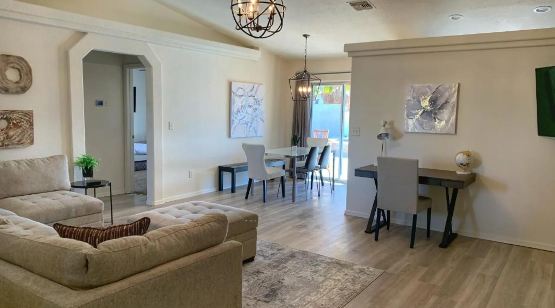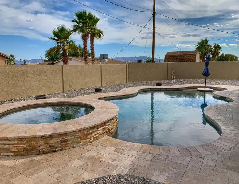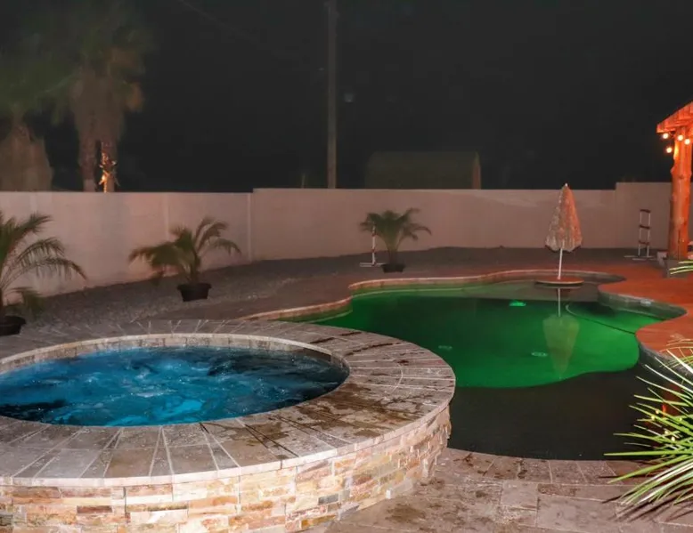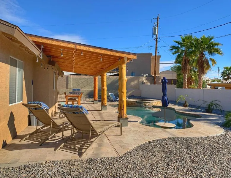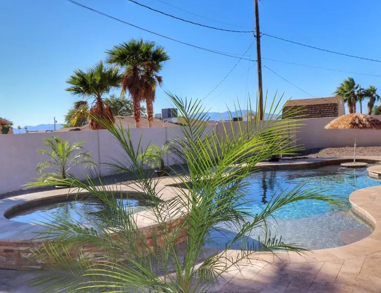 Spacious Accommodations: THE ACE OF OASIS in Lake Havasu City offers a spacious holiday home with three bedrooms and two bathrooms. The property features a terrace, tennis court, and free WiFi, ensuring a comfortable and relaxing stay. Outdoor Amenities: Guests can enjoy a hot tub, outdoor seating area, and barbecue facilities. The terrace provides a perfect spot for outdoor dining, while the tennis court offers a fun activity for all ages. Modern Comforts: The holiday home is equipped with air-conditioning, a fully fitted kitchen, and a washing machine. Additional amenities include streaming services, a work desk, and free toiletries, catering to all guest needs. Local Attractions: Located on a quiet street, THE ACE OF OASIS is close to fishing and hiking opportunities. Lake Havasu City provides scenic views of the surrounding mountains and offers various activities for visitors to enjoy. This holiday home's special features are the private pool and the hot tub. Featuring a private entrance, this spacious holiday home also consists of 3 bedrooms, a seating area and 2 bathrooms with a bath and a shower. Guests will find a stovetop, a refrigerator, a dishwasher and an oven in the kitchen. The holiday home also provides guests with a barbecue. The air-conditioned holiday home provides a flat-screen TV with streaming services, a washing machine, a tea and coffee maker, a dining area as well as pool views. The unit offers 6 beds.