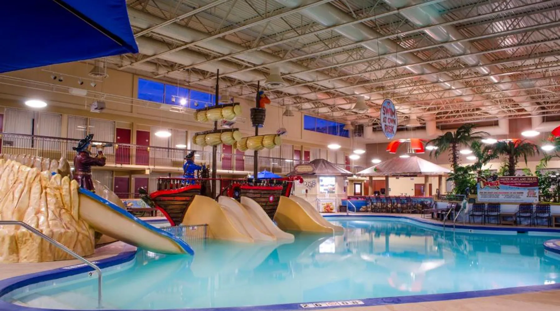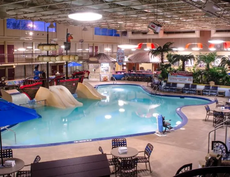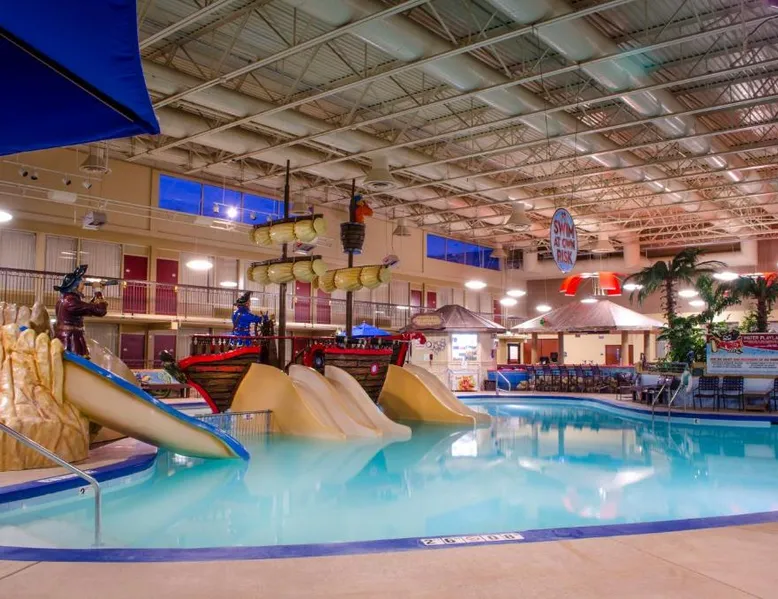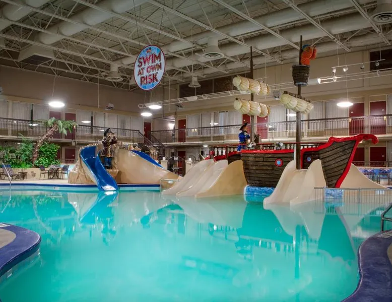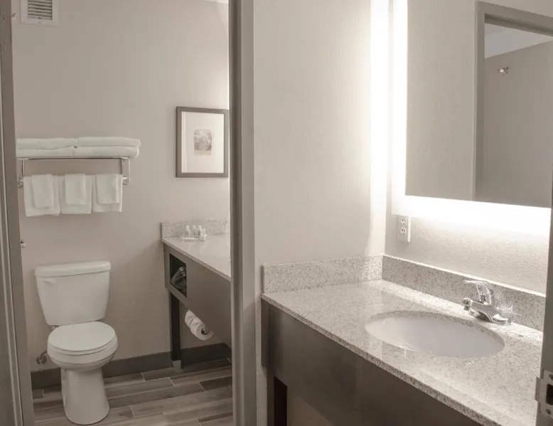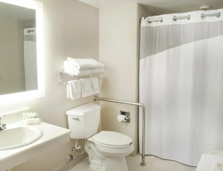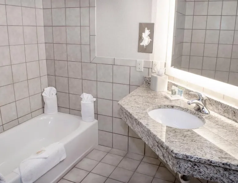 Just off Interstate 29 and less than a 10-minute drive from downtown Fargo, this North Dakota hotel provides guest rooms with 32-inch flat-screen TVs and free Wi-Fi. A 13,000 square foot water park and a casino are featured on the property. Tea and coffee-making facilities are included in all rooms at the Holiday Inn Fargo. A work desk is also provided in each spacious guest room. Every room includes a private bathroom with a hairdryer. The on-site Shipwreck Bay Waterpark features a large swimming pool and water slides. A fitness center and laundromat are also available on site. Gallery Restaurant and Café offers a variety of dining options for breakfast, lunch and dinner. Hector International Airport is 5 miles from this hotel. The Fargodome, North Dakota State University and the Fargo Air Museum are within a 10-minute drive from the property. A 32-inch flat-screen cable TV is included in this room, along with a microwave, fridge, coffee-making facilities, and a work desk.