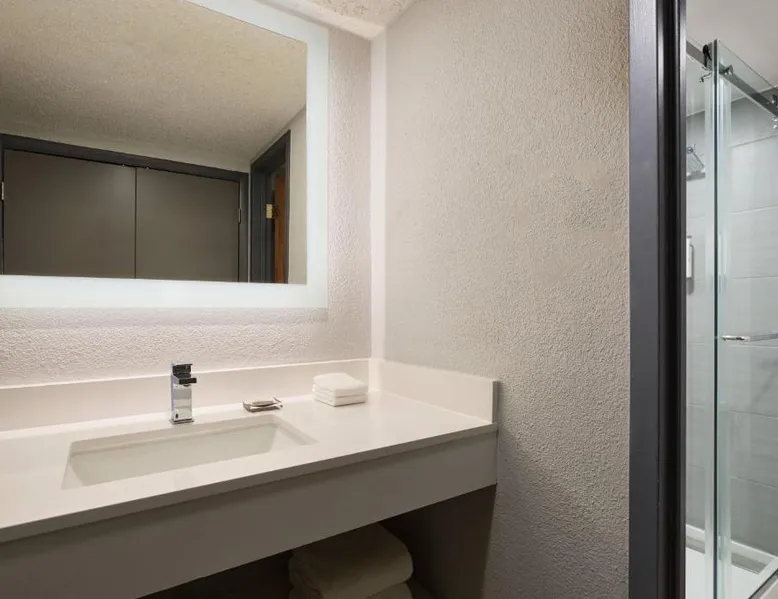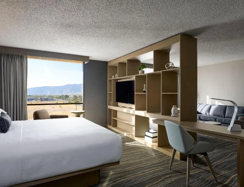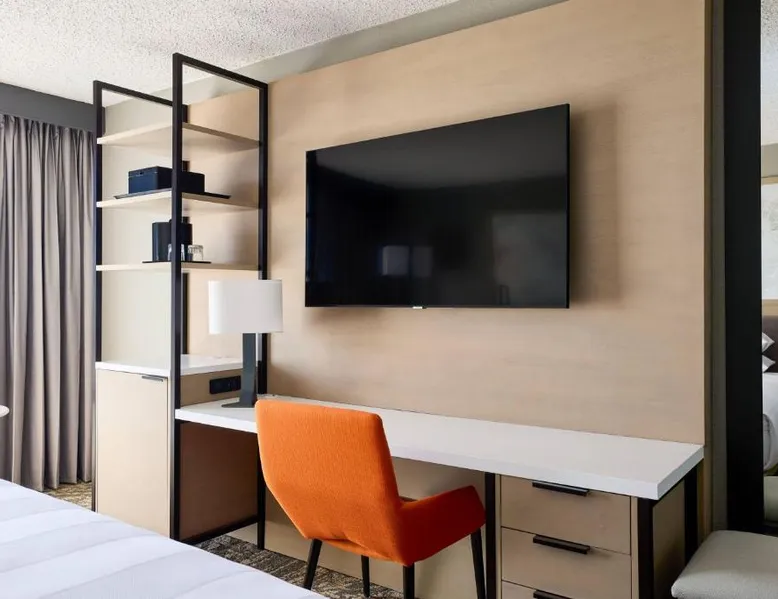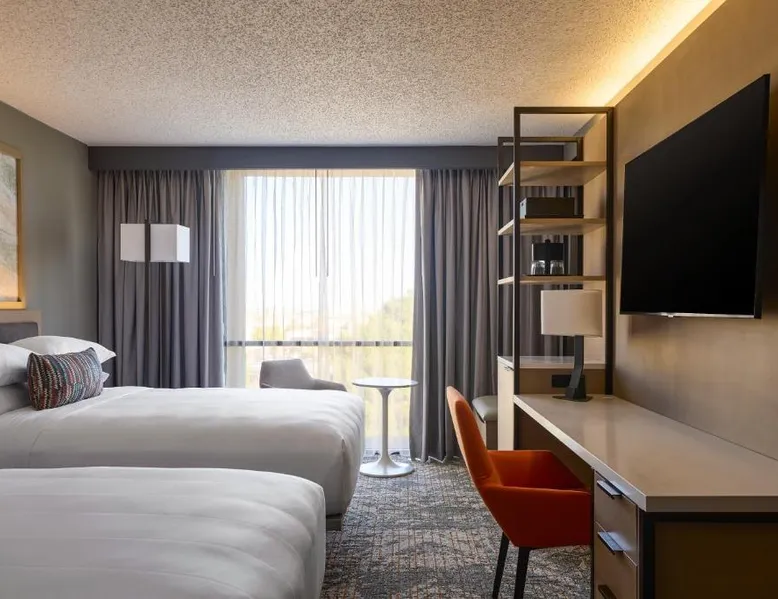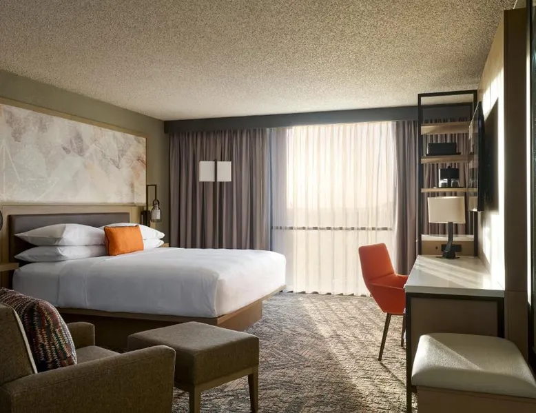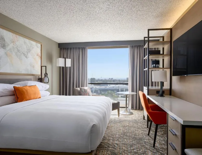 Adjacent to the El Paso International Airport, this hotel offers a free 24-hour airport shuttle. Enjoy the heated indoor/outdoor pool or work up a sweat in the fully-equipped fitness center. The spacious rooms at the Marriott El Paso are furnished with pull-out desks, providing a flexible working area. Each bathroom features granite vanity tops and stone floors. Guests can enjoy Southwestern dishes at the in house Red Rim Bistro. Popular nearby attractions include the renowned El Paso Museum of Archaeology and the Centennial Museum and Chihuahuan Desert Gardens, both within a 15 minute drive from Marriott El Paso. Providing free toiletries, this double room includes a private bathroom with a bath or a shower and a hairdryer. The spacious air-conditioned double room provides a flat-screen TV with streaming services, a coffee machine, a carpeted floor, heating as well as pool views. The unit offers 1 bed.