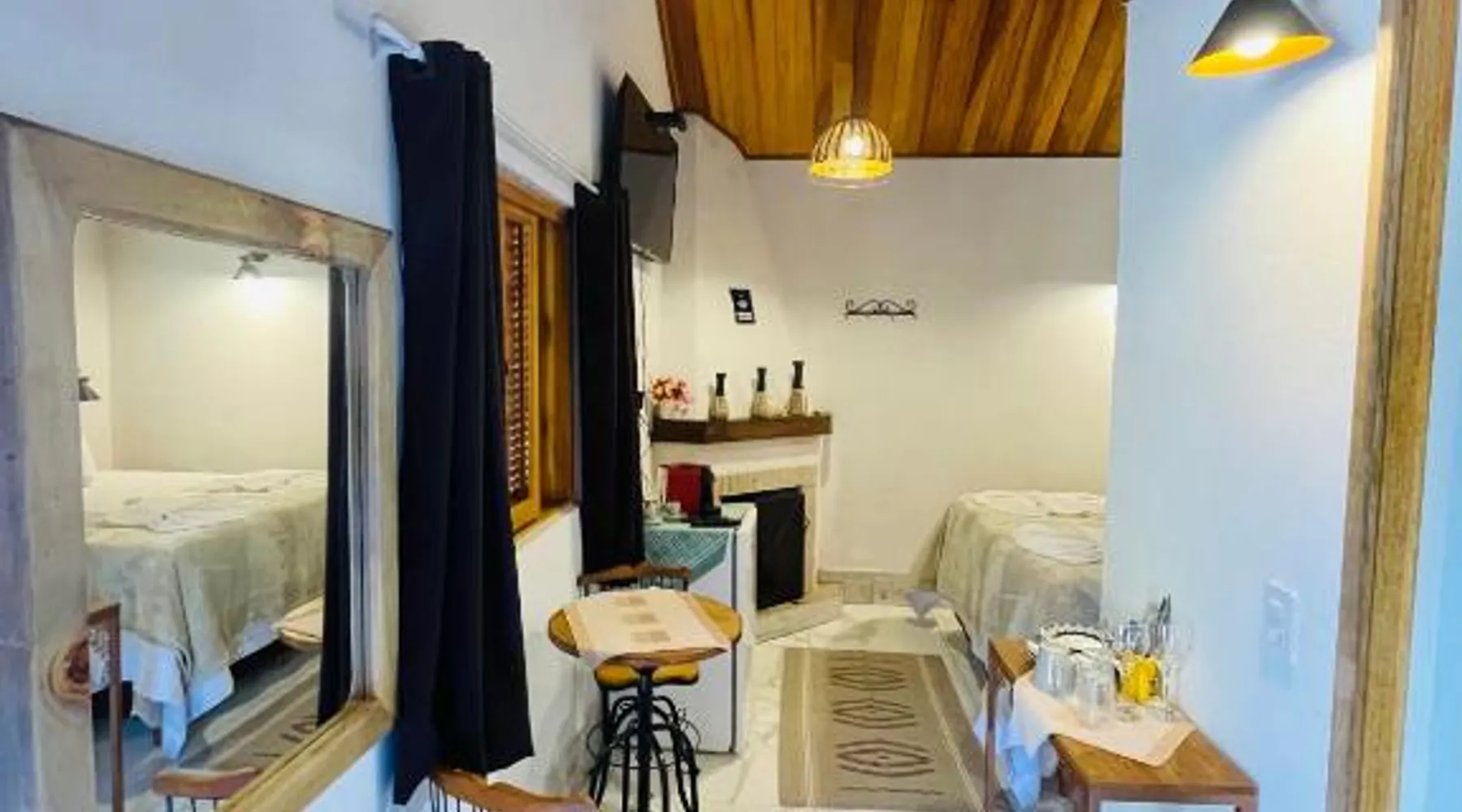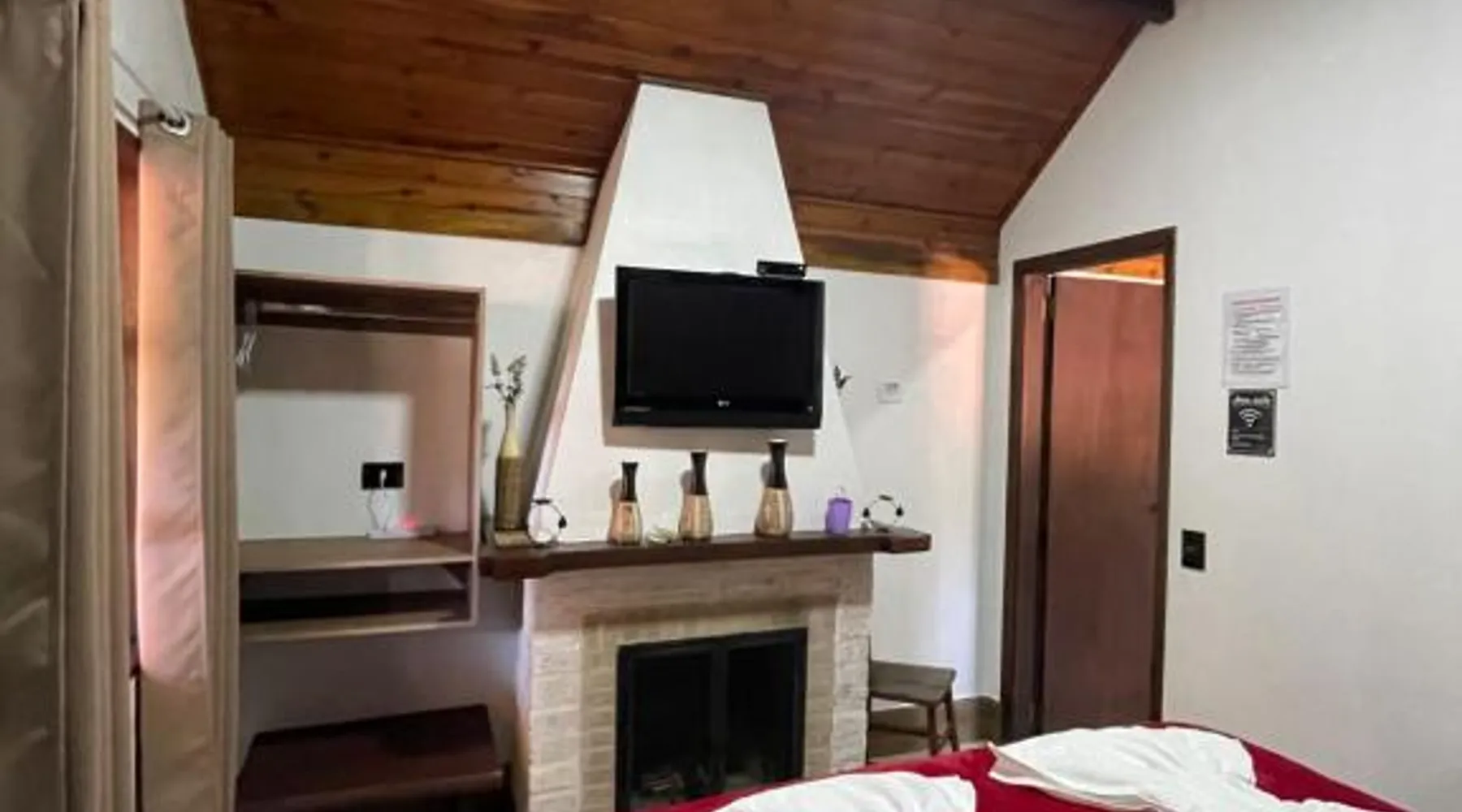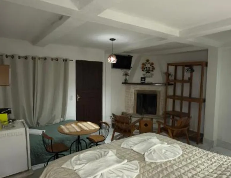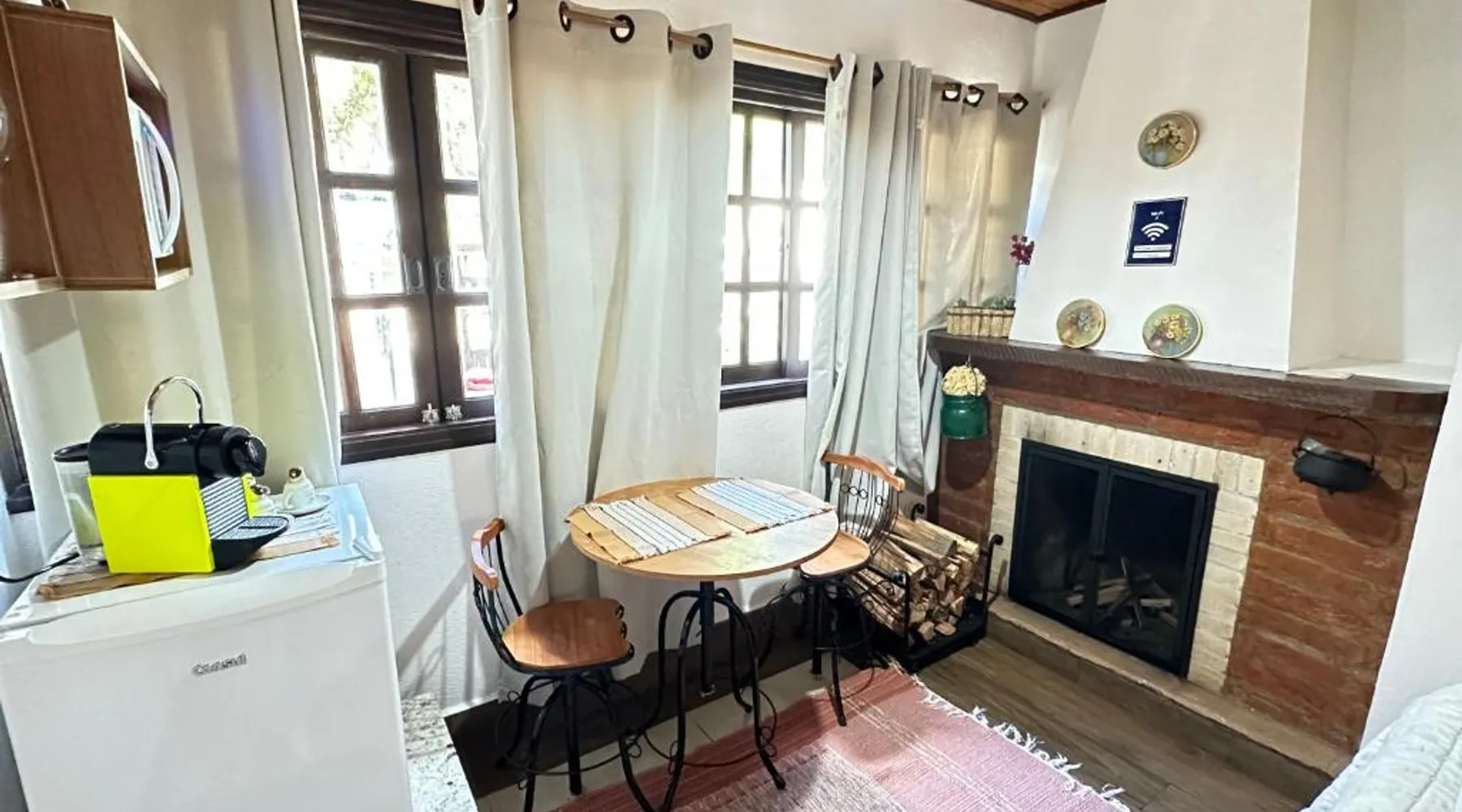 Comfortable Accommodations: Chalés Grindelwald in Monte Verde offers chalet-style accommodations with free WiFi, ensuring a pleasant stay. Convenient Facilities: Guests benefit from a paid shuttle service, 24-hour front desk, concierge, housekeeping, picnic area, family rooms, express check-in and check-out, car hire, and a tour desk. Comfortable Amenities: Each chalet features a private bathroom with a walk-in shower, fireplace, hypoallergenic bedding, hairdryer, coffee machine, dining table, refrigerator, free toiletries, microwave, TV, and tiled floors. Additional amenities include bathrobes, streaming services, spa bath, kitchen, kitchenware, and ground-floor units with inner courtyard views. Local Attractions: Located 55 mi from São José dos Campos Airport, the property is a short walk from Municipal Stadium Verner Grimberg Monte Verde, 0.6 mi from Tree Square Monte Verde, and 1.2 mi from Celeiro Shopping Monte Verde. Nearby activities include hiking trails and an ice-skating rink. Guest Satisfaction: Guests highly rate the breakfast provided by the property, room cleanliness, and bed comfort. Guests will have a special experience as this chalet provides a spa bath and a fireplace. The chalet features 1 bedroom and 2 bathrooms with a walk-in shower and free toiletries. This chalet has a coffee machine, a tiled floor, a flat-screen TV and a quiet street view. The unit offers 1 bed.