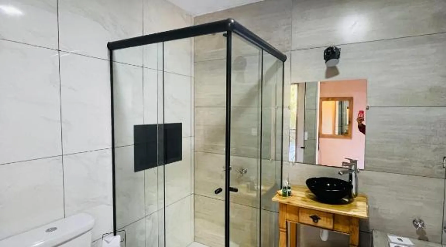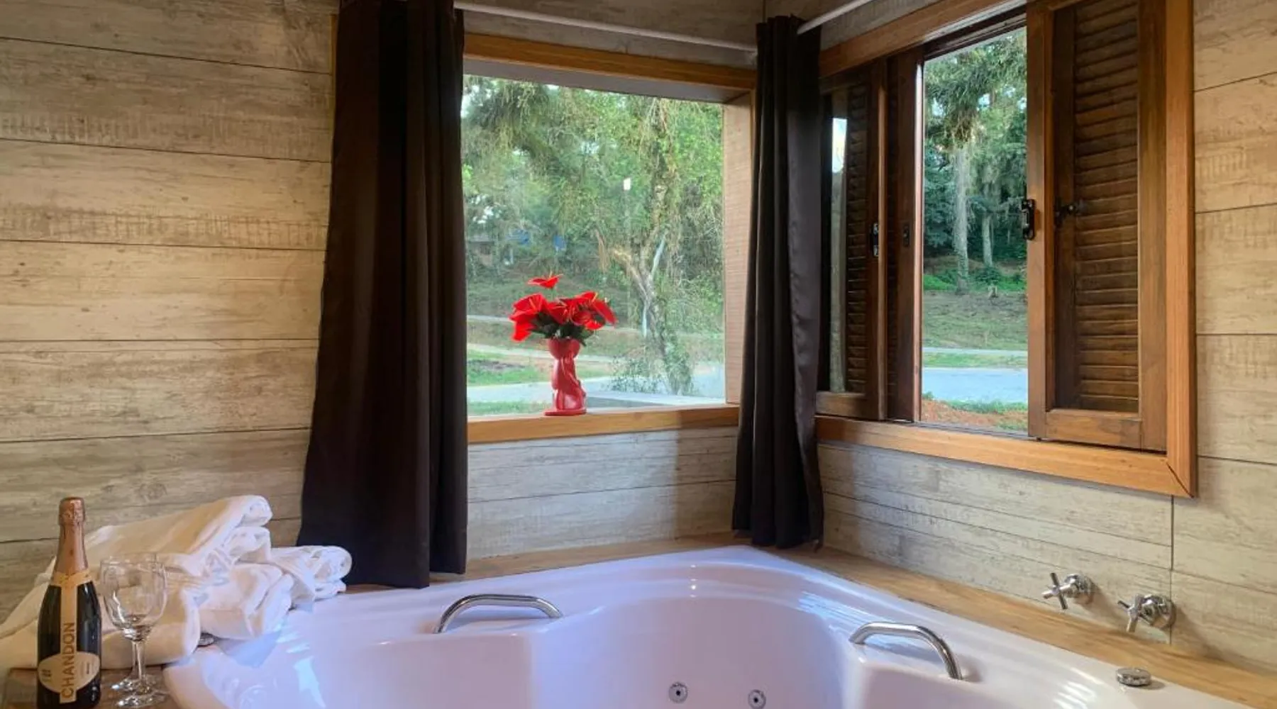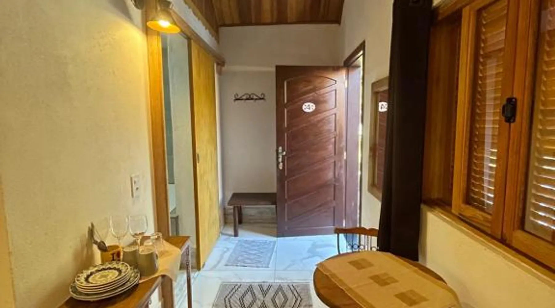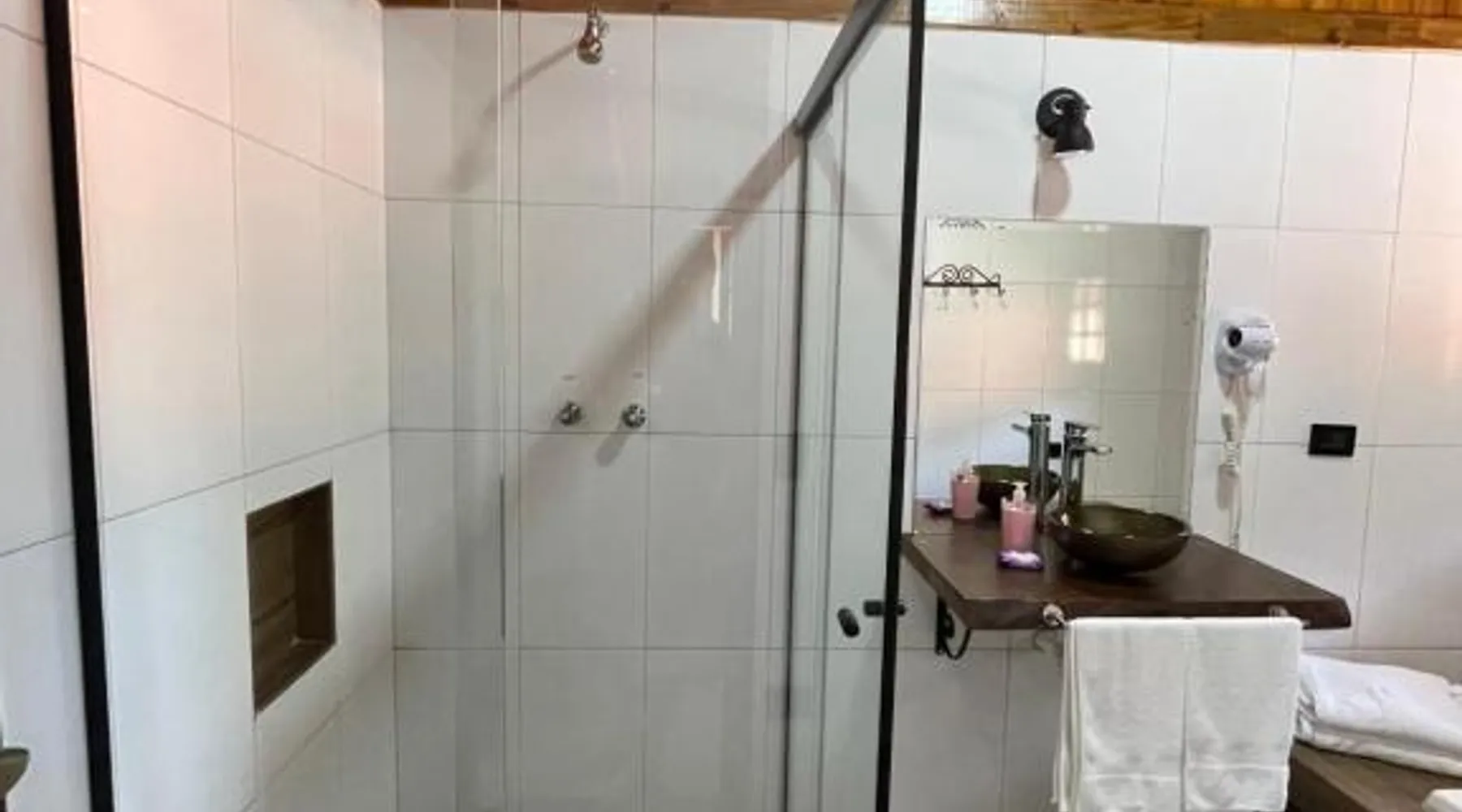 Comfortable Accommodations: Chalés Grindelwald in Monte Verde offers chalet-style accommodations with free WiFi, ensuring a pleasant stay. Convenient Facilities: Guests benefit from a paid shuttle service, 24-hour front desk, concierge, housekeeping, picnic area, family rooms, express check-in and check-out, car hire, and a tour desk. Comfortable Amenities: Each chalet features a private bathroom with a walk-in shower, fireplace, hypoallergenic bedding, hairdryer, coffee machine, dining table, refrigerator, free toiletries, microwave, TV, and tiled floors. Additional amenities include bathrobes, streaming services, spa bath, kitchen, kitchenware, and ground-floor units with inner courtyard views. Local Attractions: Located 55 mi from São José dos Campos Airport, the property is a short walk from Municipal Stadium Verner Grimberg Monte Verde, 0.6 mi from Tree Square Monte Verde, and 1.2 mi from Celeiro Shopping Monte Verde. Nearby activities include hiking trails and an ice-skating rink. Guest Satisfaction: Guests highly rate the breakfast provided by the property, room cleanliness, and bed comfort. Guests will have a special experience as this chalet provides a spa bath and a fireplace. The chalet features 1 bedroom and 2 bathrooms with a walk-in shower and free toiletries. This chalet has a coffee machine, a tiled floor, a flat-screen TV and a quiet street view. The unit offers 1 bed.