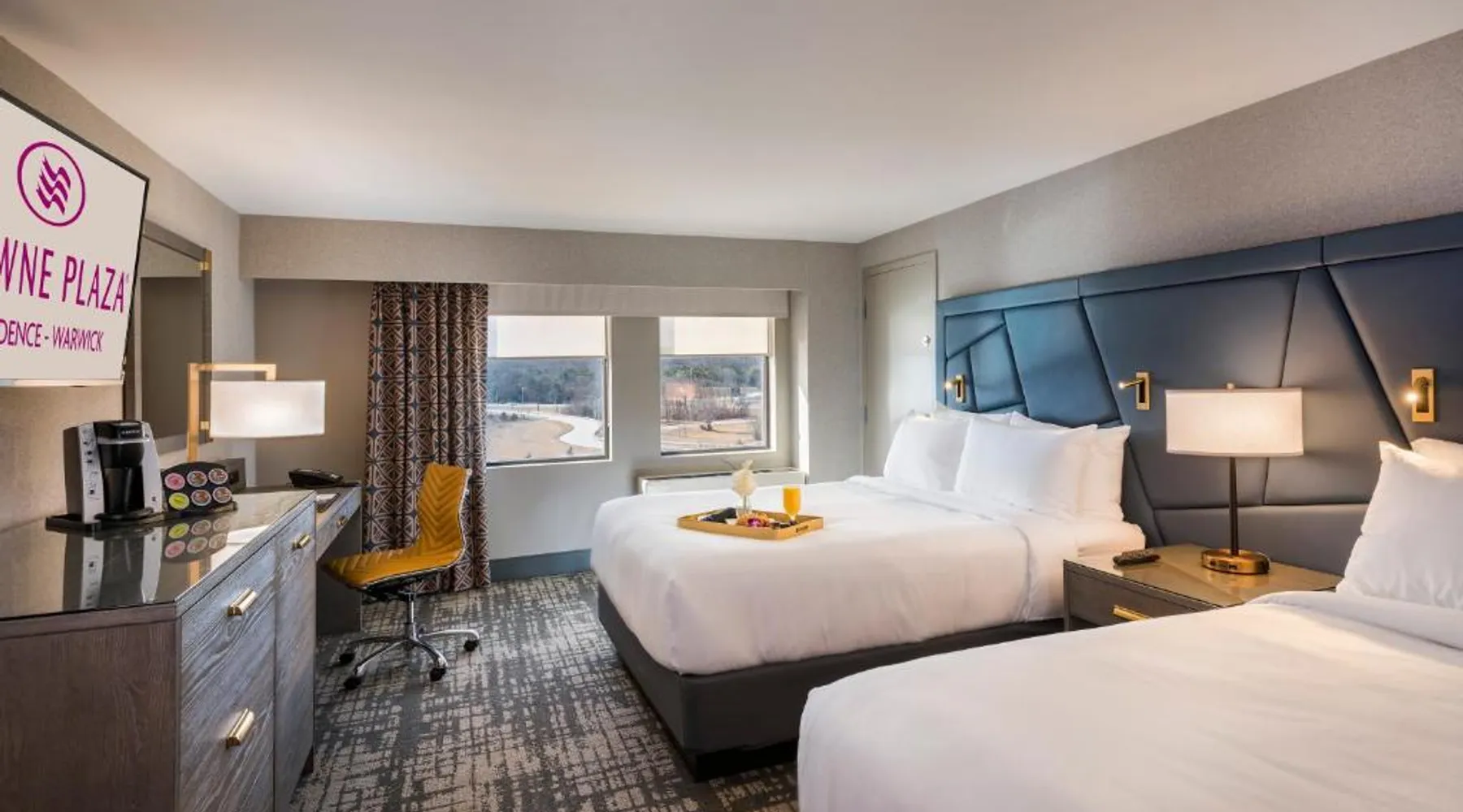 Comfortable Accommodations: Crowne Plaza Providence-Warwick in Warwick offers rooms with air-conditioning, private bathrooms, and modern amenities. Each room includes a work desk, free WiFi, and a flat-screen TV. Exceptional Facilities: Guests can enjoy a fitness center, indoor swimming pool, sun terrace, and free airport shuttle service. Additional facilities include a restaurant, bar, lounge, and outdoor seating area. Dining Experience: The hotel serves American cuisine with a buffet breakfast featuring warm dishes. A coffee shop and outdoor seating area provide additional dining options. Prime Location: Located 1.2 mi from T.F. Green Airport, the hotel is a 19-minute walk from Apponaug. Nearby attractions include Pawtuxet Village (6.8 mi) and Brown University (9.9 mi). Guests appreciate the attentive staff and excellent service. This hearing-accessible room with 1 king bed has a flat-screen TV, work desk and coffee maker.