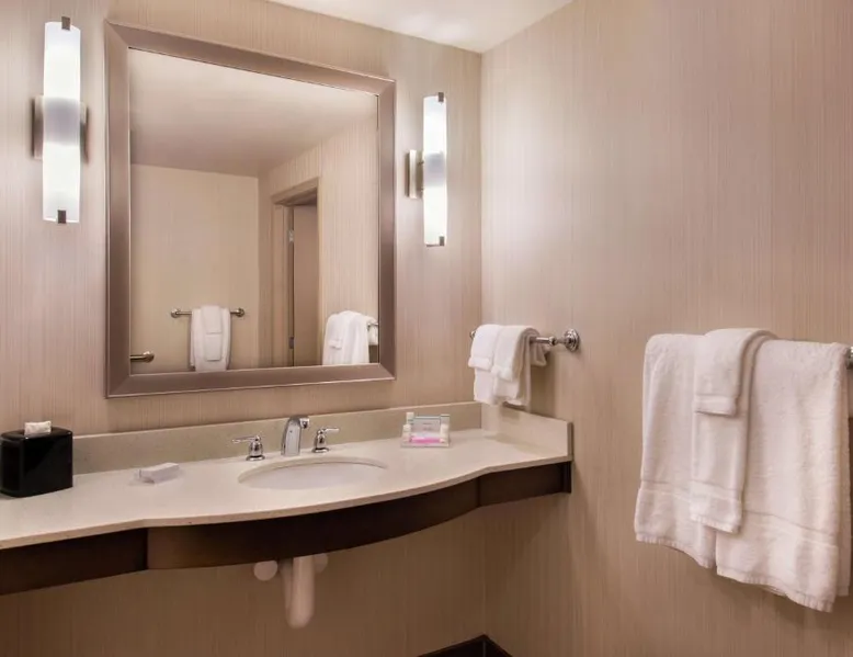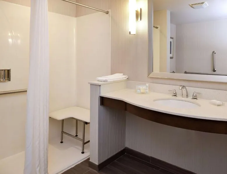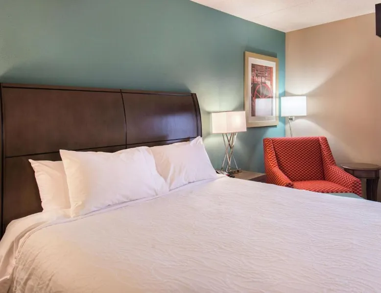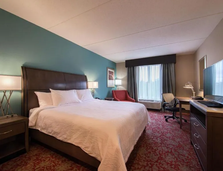 Comfortable Accommodations: Hilton Garden Inn Bristol in Bristol offers family rooms with air-conditioning, free WiFi, and amenities such as tea and coffee makers, refrigerators, and work desks. Each room includes a shower and free toiletries. Exceptional Facilities: Guests can enjoy a fitness center, indoor swimming pool, sun terrace, and outdoor fireplace. The hotel features a restaurant, bar, and lounge, along with a minimarket and business area. Free on-site parking is available. Dining Experience: The family-friendly restaurant serves an à la carte breakfast and offers menus for special diets. Outdoor seating areas provide relaxing spaces. Convenient Location: Located 22 mi from Tri-Cities Regional Airport and 14 mi from Bristol Motor Speedway, the hotel is ideal for hiking and cycling enthusiasts. The spacious double room provides air conditioning, a tea and coffee maker, heating and a flat-screen TV. The unit offers 1 bed.