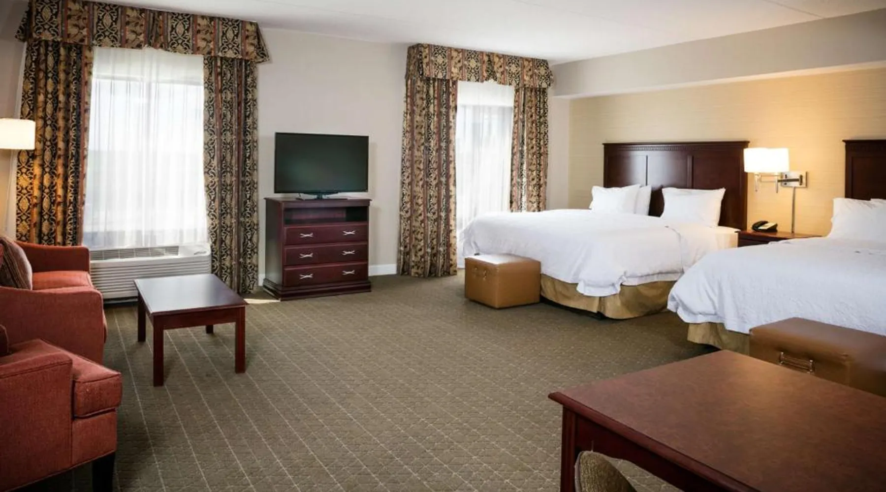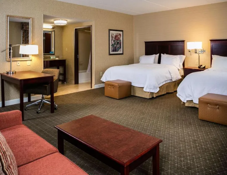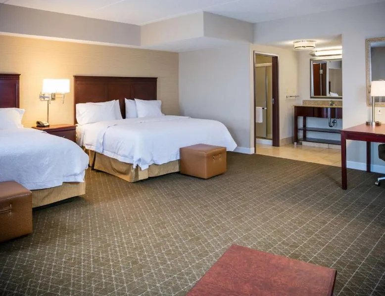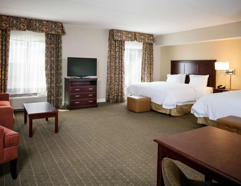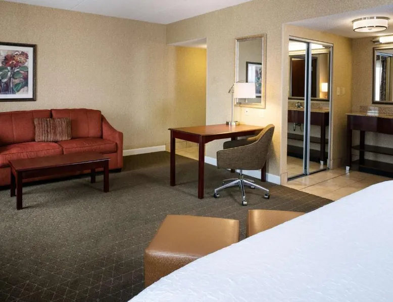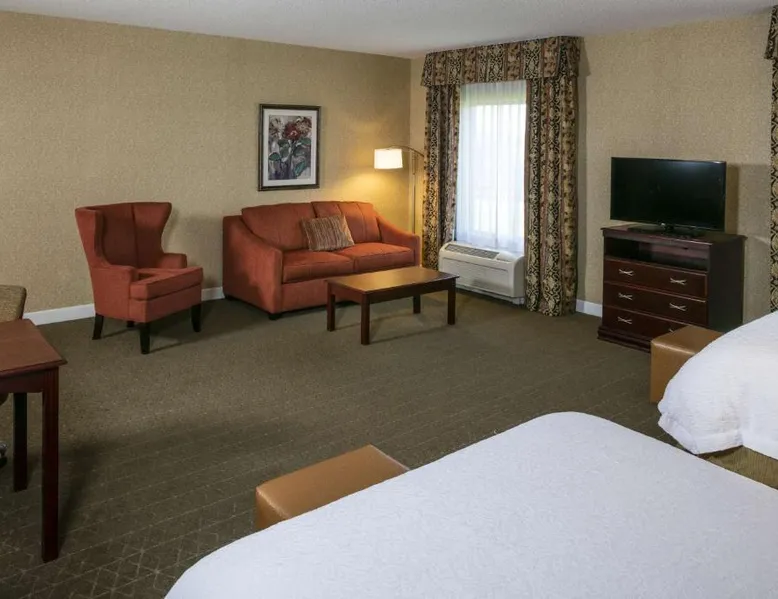 Comfortable Accommodations: Hampton Inn & Suites Toledo-Perrysburg in Rossford offers family rooms with air-conditioning, private bathrooms, and modern amenities. Each room includes a tea and coffee maker, hairdryer, refrigerator, work desk, free toiletries, microwave, shower, and TV. Exceptional Facilities: Guests enjoy an indoor swimming pool, fitness center, and free WiFi. Additional facilities include a fitness room, elevator, 24-hour front desk, minimarket, daily housekeeping service, business area, and full-day security. Delicious Breakfast: A complimentary American buffet breakfast is served daily, highly appreciated by guests for its quality and variety. Convenient Location: Located 16 mi from Toledo Express Airport, the hotel is near attractions such as Ottawa Park Golf Course (7.5 mi) and Toledo Museum of Art (8.7 mi). This room offers a sofa bed.