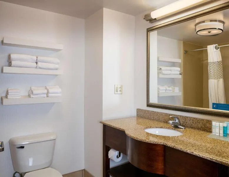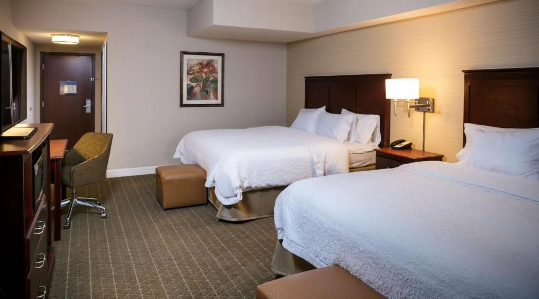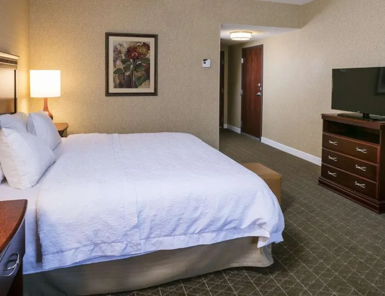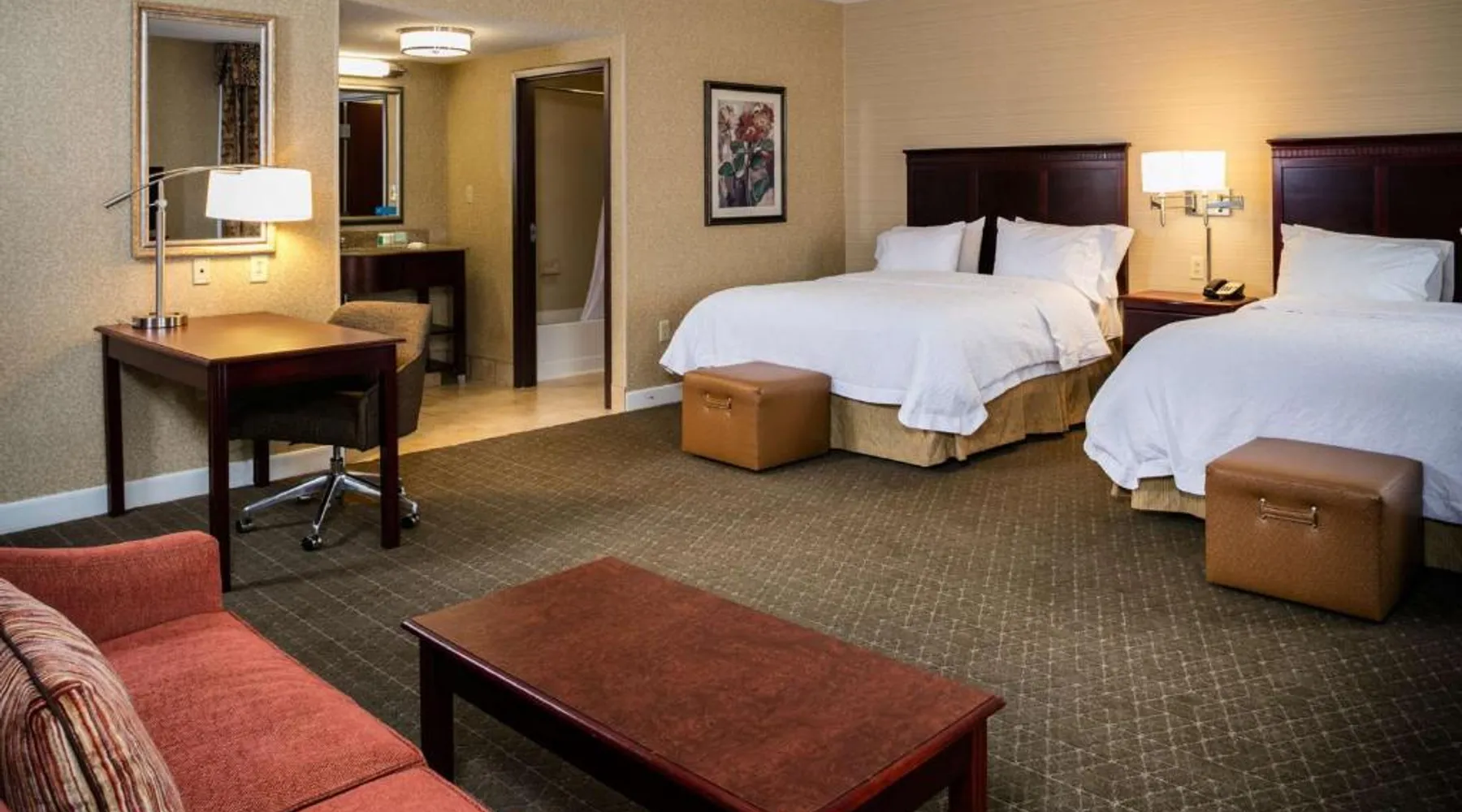 Comfortable Accommodations: Hampton Inn & Suites Toledo-Perrysburg in Rossford offers family rooms with air-conditioning, private bathrooms, and modern amenities. Each room includes a tea and coffee maker, hairdryer, refrigerator, work desk, free toiletries, microwave, shower, and TV. Exceptional Facilities: Guests enjoy an indoor swimming pool, fitness center, and free WiFi. Additional facilities include a fitness room, elevator, 24-hour front desk, minimarket, daily housekeeping service, business area, and full-day security. Delicious Breakfast: A complimentary American buffet breakfast is served daily, highly appreciated by guests for its quality and variety. Convenient Location: Located 16 mi from Toledo Express Airport, the hotel is near attractions such as Ottawa Park Golf Course (7.5 mi) and Toledo Museum of Art (8.7 mi). This room offers a sofa bed.