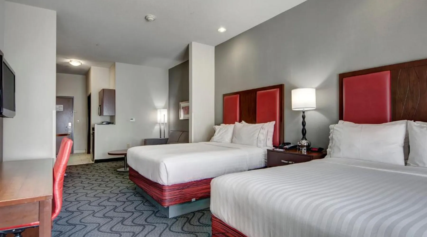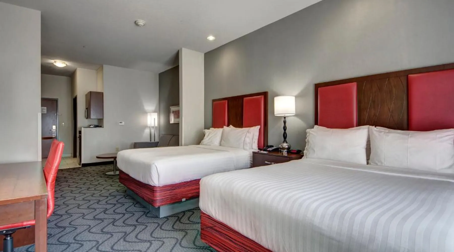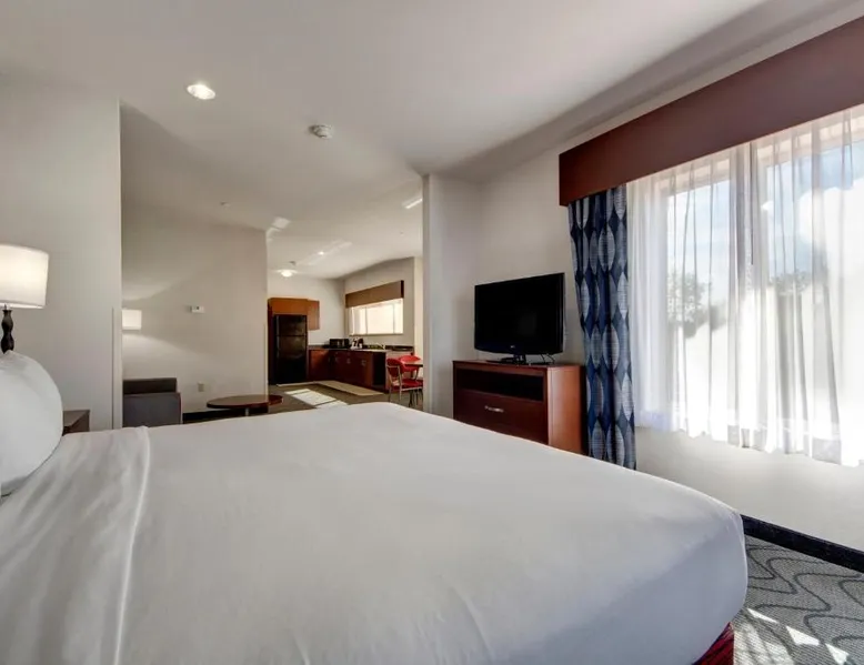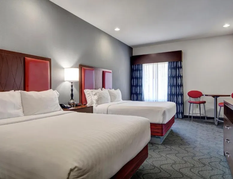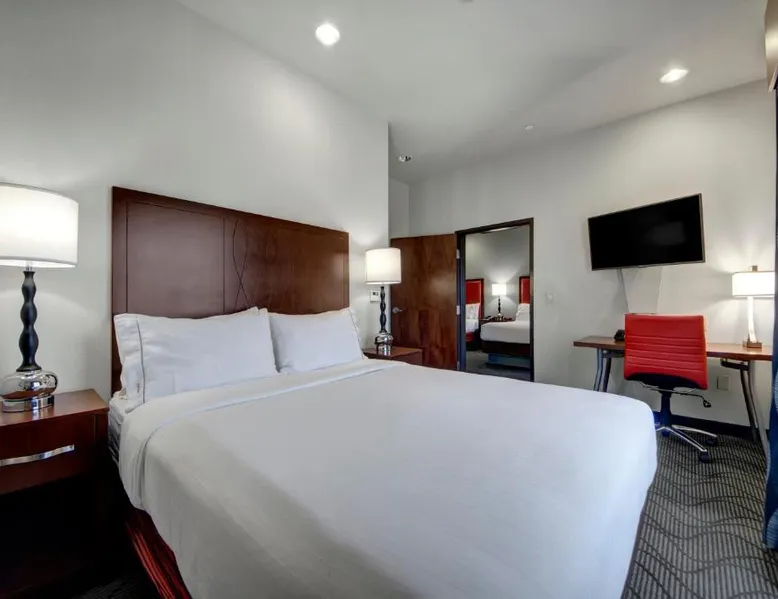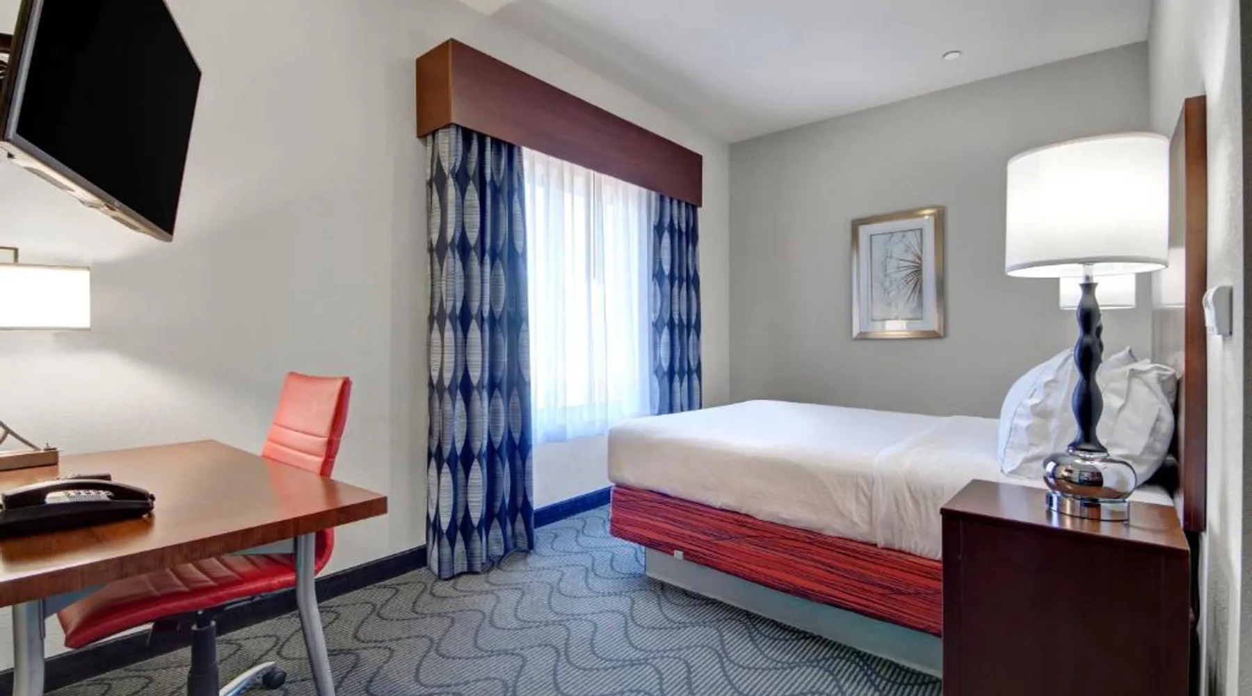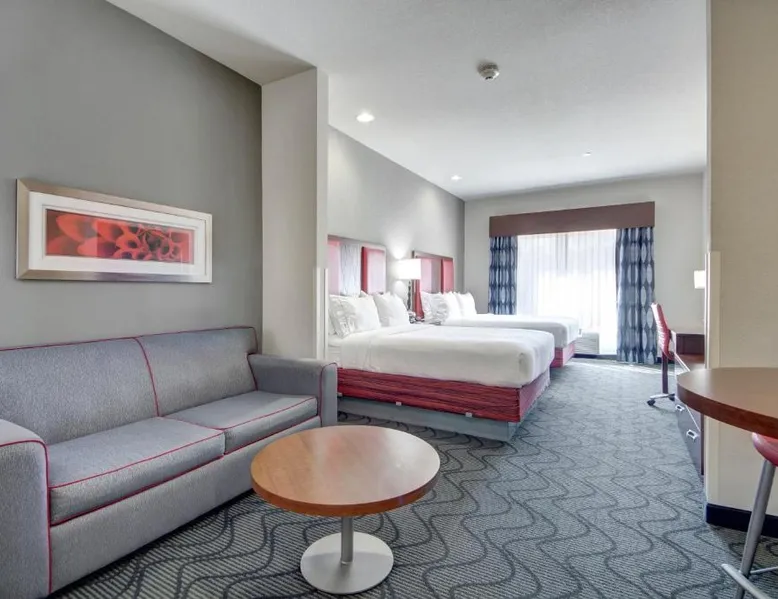 Comfortable Accommodations: Holiday Inn Express and Suites Oklahoma City North by IHG in Oklahoma City offers family rooms with air-conditioning, private bathrooms, and free WiFi. Each room includes a work desk, refrigerator, and free toiletries. Exceptional Facilities: Guests can enjoy a fitness center, indoor swimming pool, and a lounge. Additional amenities include a minimarket, business area, and free on-site parking. Delicious Breakfast: A complimentary American buffet breakfast is served daily, featuring warm dishes, fresh pastries, pancakes, fruits, and juice. Prime Location: Located 19 mi from Will Rogers World Airport, the hotel is a 14-minute walk from Frontier City. Nearby attractions include Oklahoma City Zoo and Oklahoma City Museum of Art. The spacious double room features air conditioning, a tea and coffee maker, as well as a private bathroom boasting a shower and a hairdryer. The double room offers a wardrobe, a safe deposit box, a carpeted floor along with heating. The unit has 1 bed.