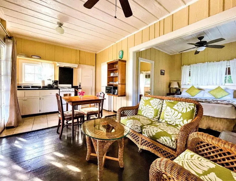 Located on the black sands of Kauai, the oldest of the Hawaiian Islands, these oceanfront cottages in Waimea have been restored with plantation-period furniture and feature patios overlooking the Pacific Ocean. The bright and colorful cottages at Waimea Plantation Cottages are decorated with floral patterns and tropical artwork. The kitchen is complete with an oven, full-size refrigerator, and a microwave. A DVD player is provided in each cottage. An oceanfront pool and on-site barbecue facilities are part of this Waimea property. Waimea River Park and the Waimea Theater are a 10-minute walk from the Waimea Plantation Cottages. Port Allen Airport is just 7 miles away. This vacation home has a barbecue, tea/coffee maker and DVD player. The cottage images shown here are only representative. Each cottage shape, square footage, and interior floor plan is unique.
