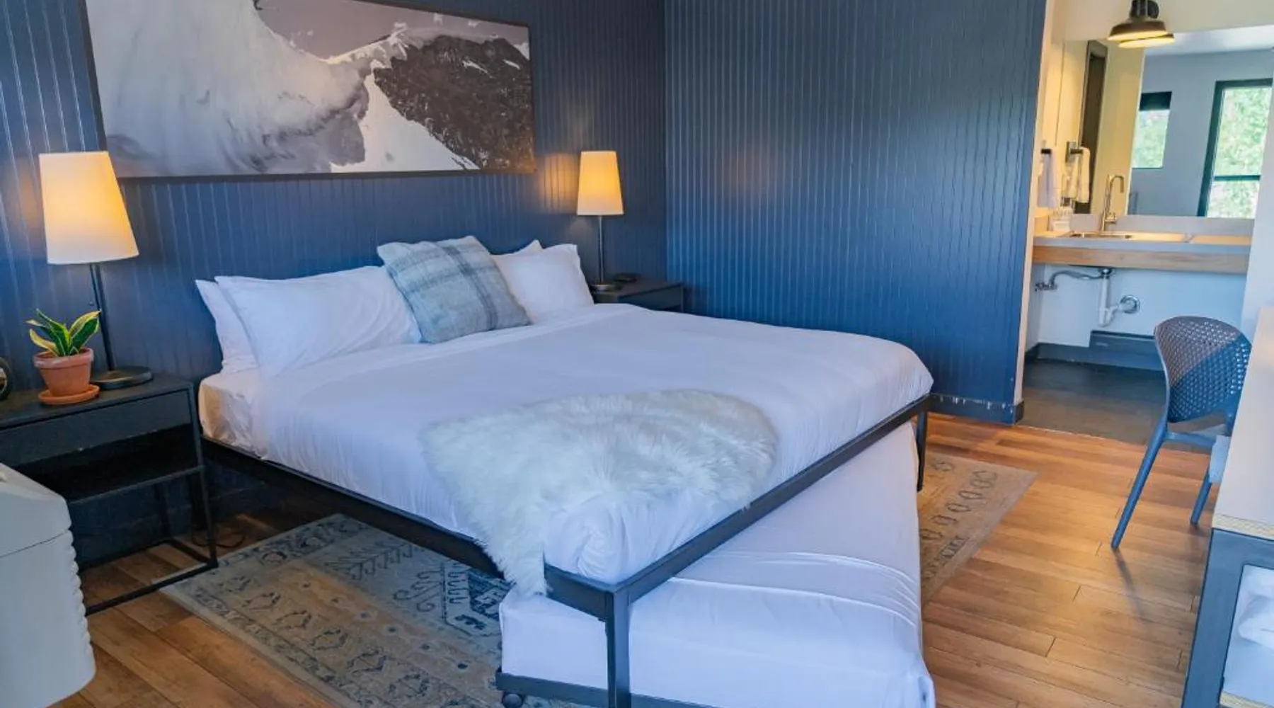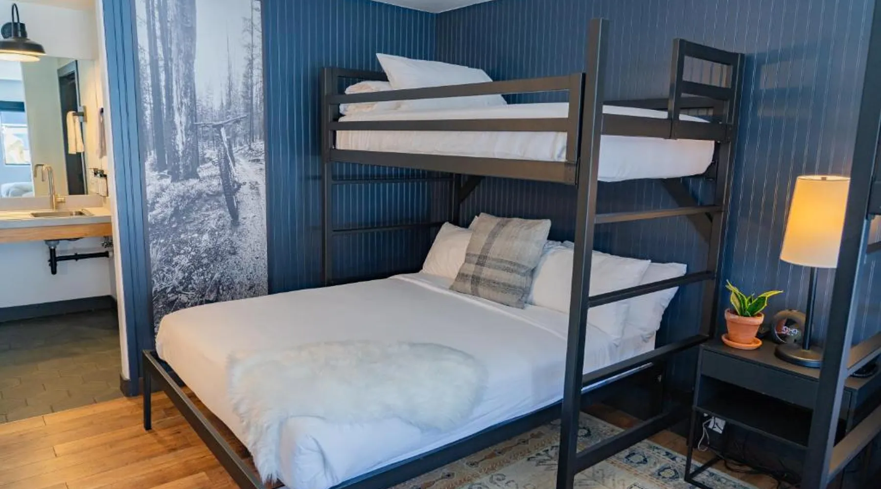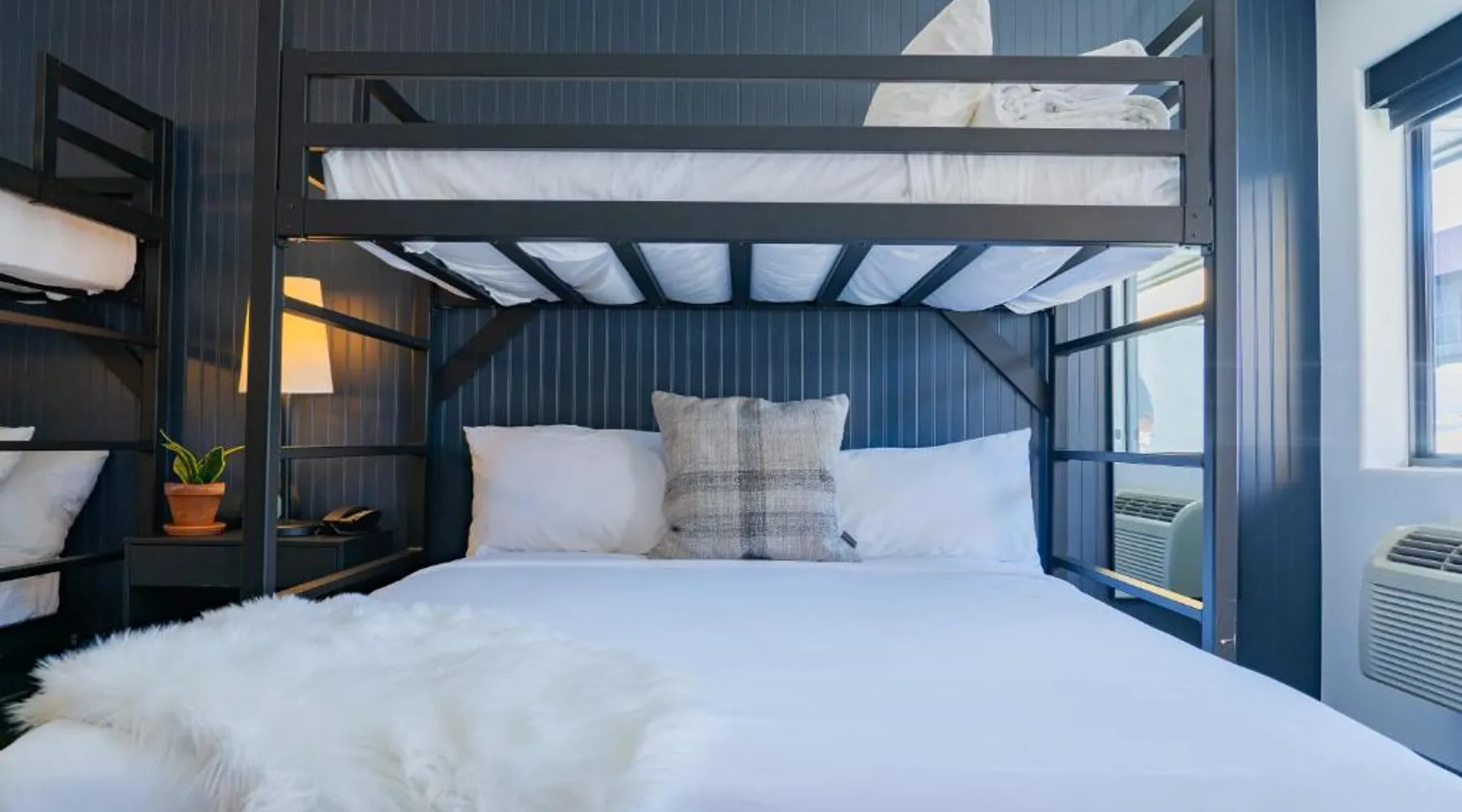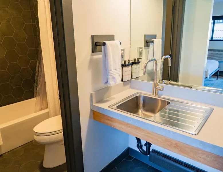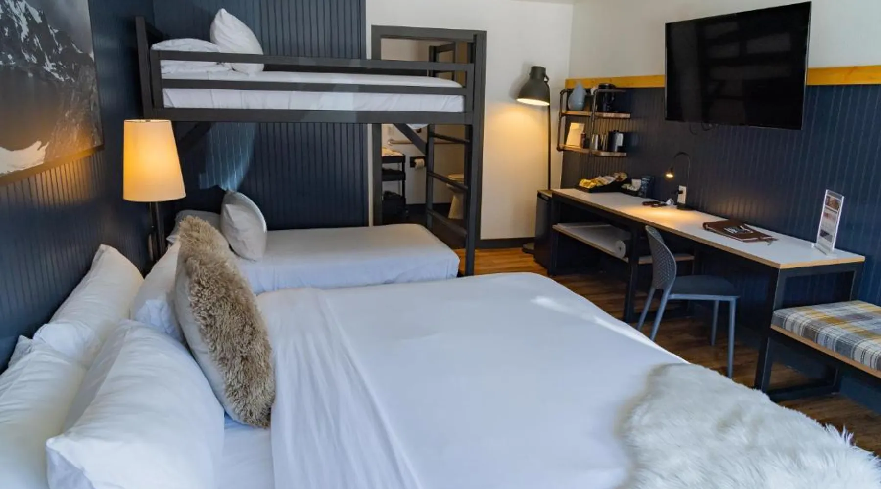 Comfortable Accommodations: Gravity Haus Winter Park in Winter Park offers family rooms with air-conditioning, bathrobes, refrigerators, work desks, mini-bars, TVs, and electric kettles. Each room includes a bath. Exceptional Facilities: Guests enjoy a fitness center, terrace, restaurant, bar, and free WiFi. Additional amenities include an outdoor fireplace, hot tub, coffee shop, outdoor seating area, picnic area, bicycle parking, and express check-in and check-out services. Dining Experience: The family-friendly restaurant serves American cuisine with gluten-free and dairy-free options. Lunch and dinner are available, along with cocktails. Convenient Location: Located 88 mi from Denver International Airport, the hotel is praised for its convenient location, comfortable beds, and attentive staff. The spacious quadruple room features air conditioning, a mini-bar, an electric kettle and a flat-screen TV. The unit has 2 beds.
