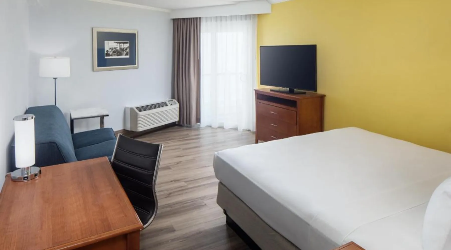 Enjoy oceanfront views from this Hampton Beach hotel. Boasting various on-site dining options and an indoor pool, this hotel is located 13.1 miles from historic Portsmouth. Rooms at Ashworth by the Sea Hotel feature a private balcony with either full or partial ocean views. Free WiFi and a flat-screen cable TV are also provided in every contemporary room. A fitness center and a The Sand Bar rooftop lounge overlooking the water are offered at Hotel Ashworth by the Sea. Guests can dine at Breakers Restaurant, which serves American cuisine and seafood. The Wharfside Cafe offers breakfast while the outdoor lounge, Sandbar, serves cocktails. Concerts are held at the Hampton Beach Casino Ballroom, which is .3 miles away from the hotel. Offering free toiletries, this single room includes a private bathroom with a bath, a shower and a hairdryer. This single room is air-conditioned and features a flat-screen TV with cable channels, a tea and coffee maker, a wardrobe and parquet floors. The unit offers 1 bed.