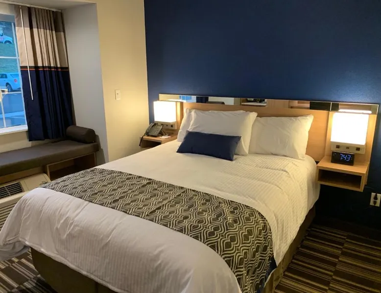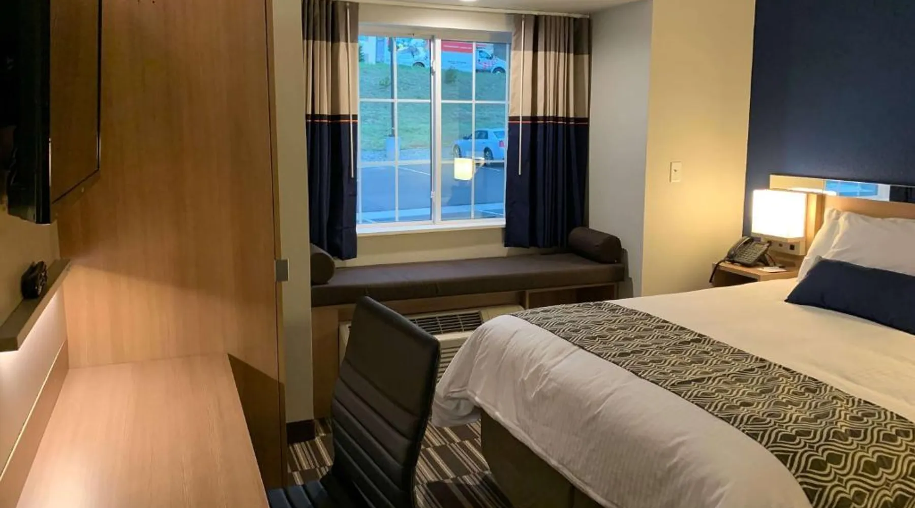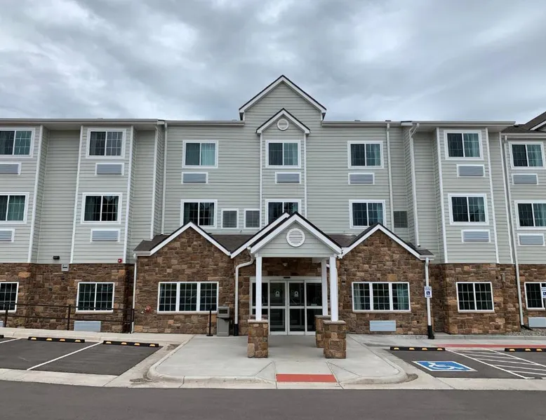 Comfortable Accommodations: Microtel Inn & Suites by Wyndham Woodland Park in Woodland Park offers air-conditioned rooms with private bathrooms, free WiFi, and essential amenities including a work desk, refrigerator, and TV. Convenient Facilities: Guests benefit from free on-site private parking, a elevator, and a 24-hour front desk. Additional features include a hairdryer, microwave, and free toiletries. Local Attractions: Located 27 mi from Colorado Springs Airport, the hotel is near Garden of the Gods (18 mi), Rock Ledge Ranch Historic Site (18 mi), and North Pole Colorado Santa'S Workshop (8.7 mi). Other attractions include Palmer Park (24 mi) and Cheyenne Mountain Zoo (22 mi). The spacious air-conditioned double room has private bathroom fitted with a bath or a shower and a hairdryer. The unit has 1 bed.