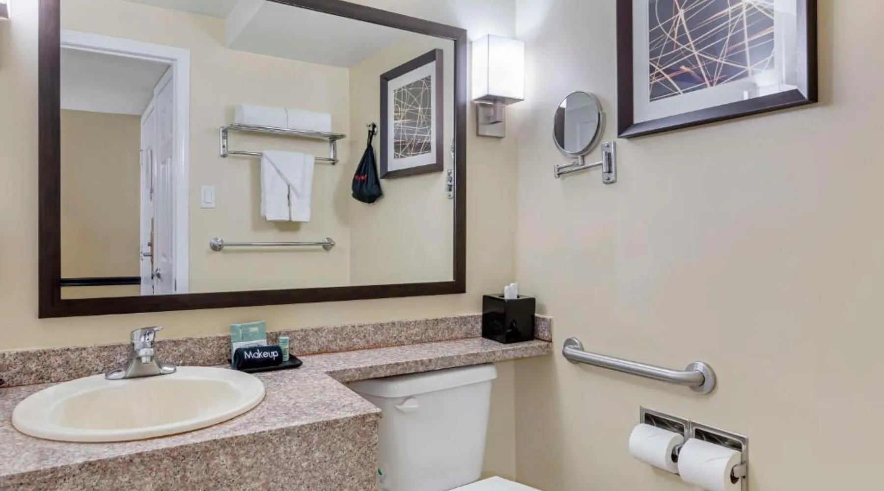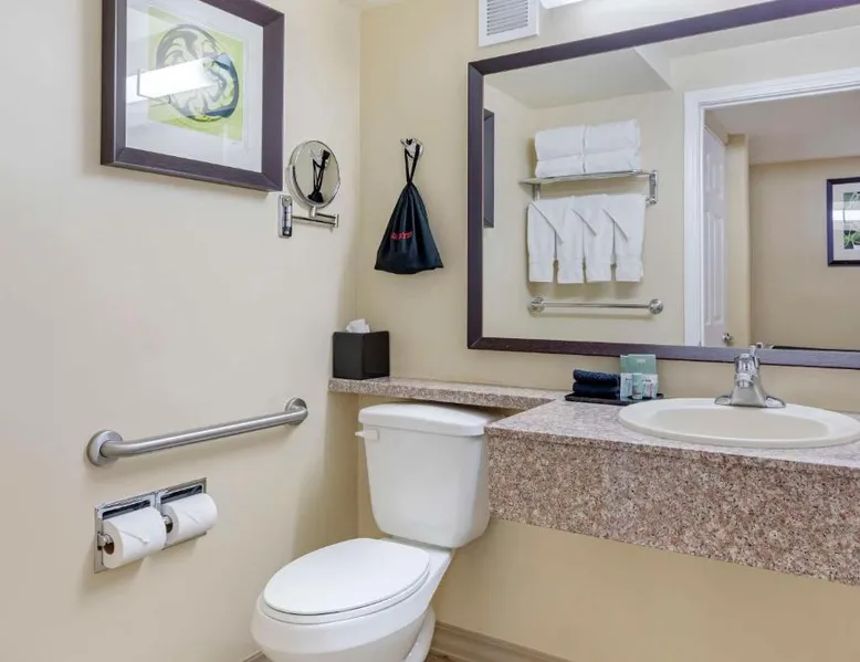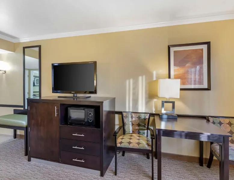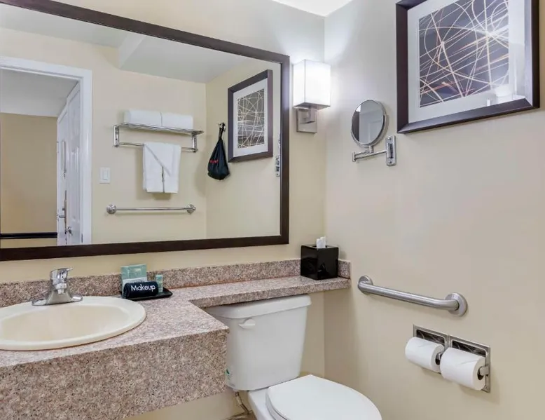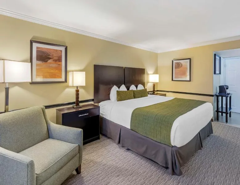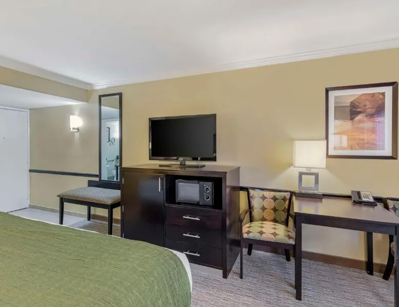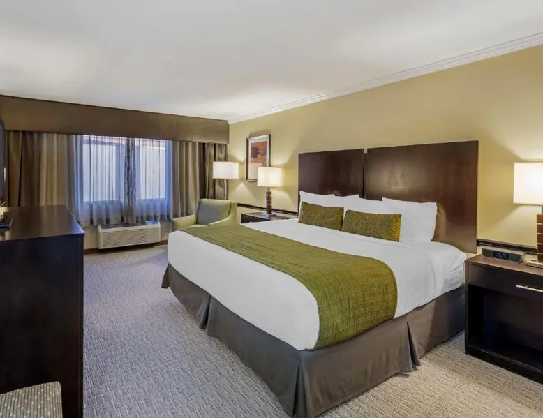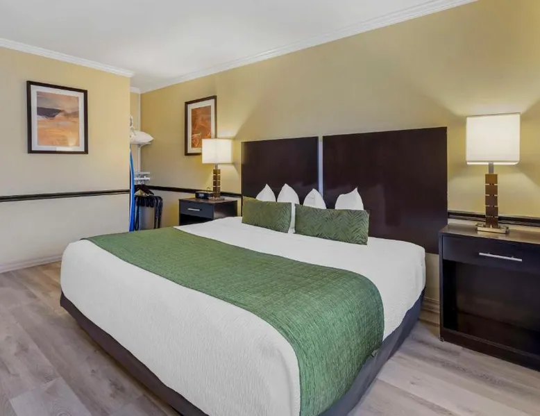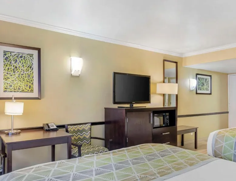 Located off Highway 101, this Canoga Park hotel features an on-site restaurant and lounge, has an outdoor heated pool and serves a daily continental breakfast. California State University Northridge is 6 miles away. A 40-inch flat-screen cable TV is featured in all of the air-conditioned rooms at Best Western Canoga Park Motor Inn. Each comfortable room is equipped with a microwave, a fridge and tea and coffee-making facilities. Free WiFi is included in all guest rooms. The Village Café Family Restaurant and the Royal Room cocktail lounge are located on-site at Canoga Park Best Western. Serving American cuisine, The Village Café is open for breakfast, lunch and dinner. Royal Room cocktail lounge offers nightly entertainment that includes live music and karaoke. Guests have access to a bowling center and a game room with a variety of video games at Best Western Canoga Park. Billiards and snooker tables are available in the hotel lounge. Fallbrook Shopping Mall is 3 miles from Best Western Canoga Park Motor Inn. Universal Studios is 23 minutes’ drive away. Venice Boardwalk and Santa Monica Beach are within 30 minutes’ drive away from this hotel. Providing free toiletries, this quadruple room includes a private bathroom with a shower and a hairdryer. The air-conditioned quadruple room provides a TV with satellite channels, a private entrance, a tea and coffee maker, a wardrobe as well as pool views. The unit offers 2 beds.
