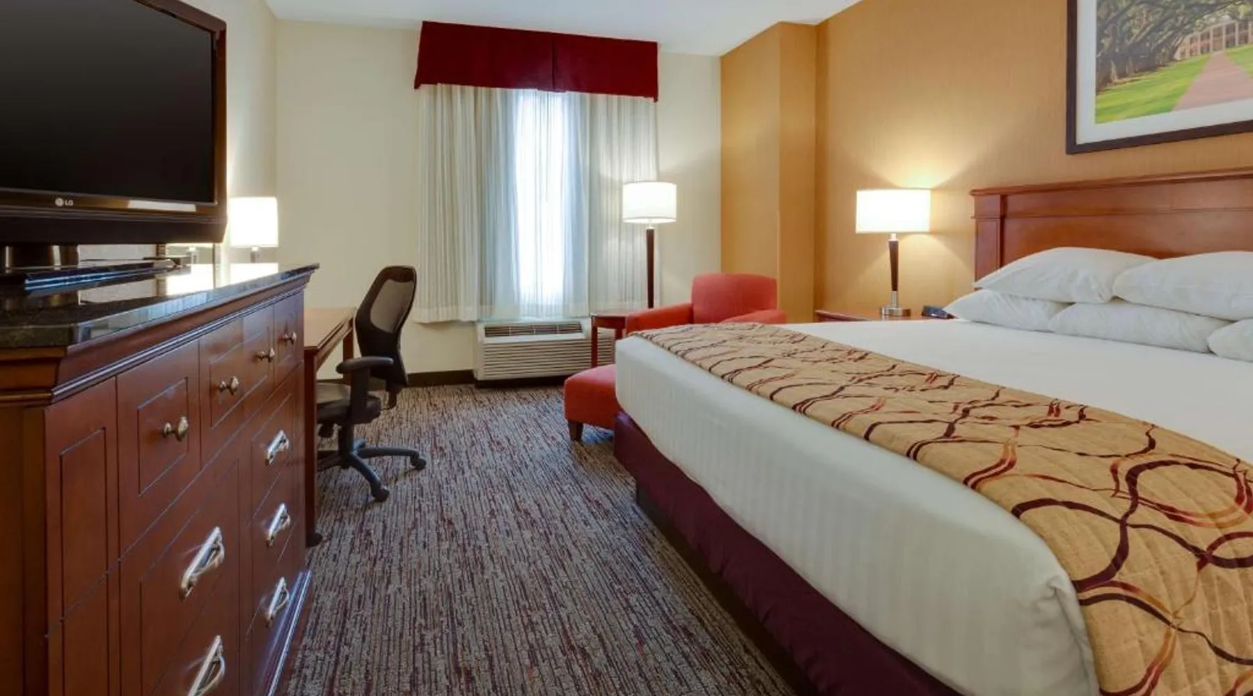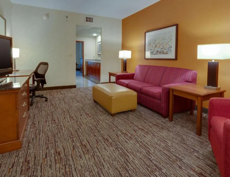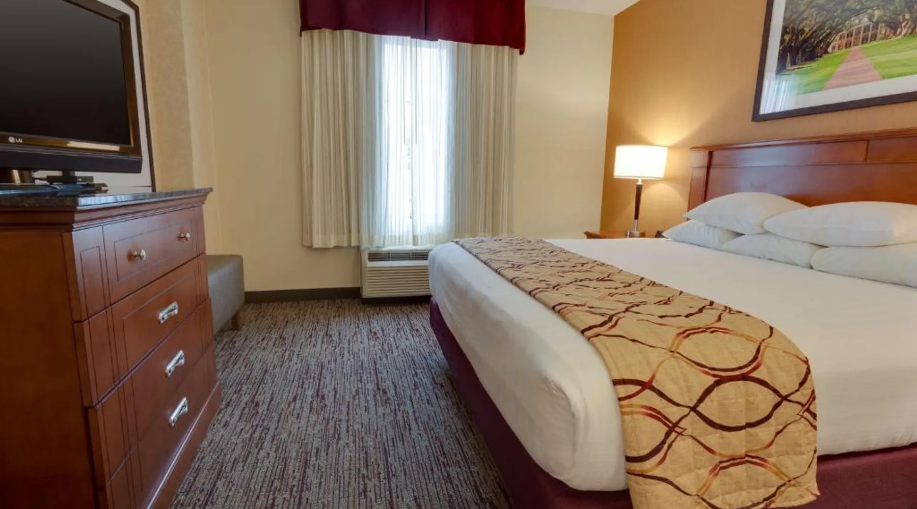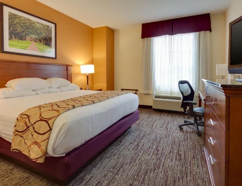 Located 13 miles from Baton Rouge Metropolitan Airport, this hotel features an indoor/outdoor swimming pool with a whirlpool. Free Wi-Fi is also included. A flat-screen TV is equipped in each room at the Drury Inn and Suites Baton Rouge. Rooms are also furnished with a microwave and small refrigerator. Guests can exercise in the fitness center at their convenience. Baton Rouge Drury Inn and Suites is also equipped with a 24-hour business center for guests to check email and work online. A complimentary breakfast is served daily. Free hot food and cold beverages are also available each evening at the 5:30 Kickback. Louisiana State University is a 10 minutes’ drive from the hotel. Belle of Baton Rouge Casino is 6.5 miles away. This suite is consisted of of 1 living room, 1 separate bedroom and 1 bathroom with a bath or a shower and free toiletries. The air-conditioned suite offers a flat-screen TV with cable channels, a coffee machine, a wardrobe and a sofa. The unit offers 3 beds.