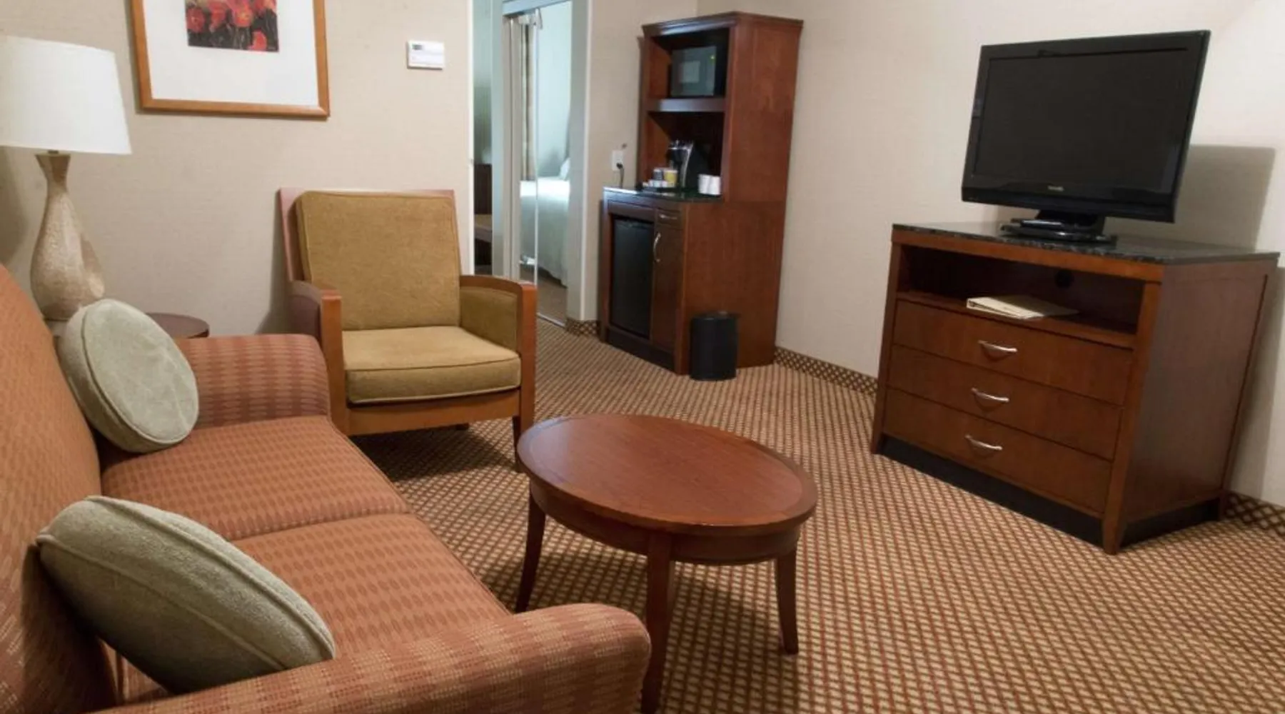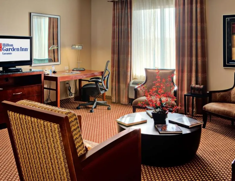 Comfortable Accommodations: Rooms feature air-conditioning, tea and coffee makers, hairdryers, refrigerators, work desks, free toiletries, microwaves, showers, and TVs. Additional amenities include spa baths, sofa beds, and seating areas. Exceptional Facilities: Guests enjoy a fitness center, indoor swimming pool, free WiFi, restaurant, bar, and free airport shuttle service. The hotel offers a lounge, hot tub, 24-hour front desk, business area, outdoor seating, express check-in and check-out, room service, and luggage storage. Prime Location: Located in Laramie, the hotel is 6.8 mi from Laramie Regional Airport and an 8-minute walk from War Memorial Stadium. Nearby attractions include an ice-skating rink. Guests appreciate the attentive staff, convenient location, and room cleanliness. This quadruple room is air-conditioned and has a flat-screen TV with cable channels, a tea and coffee maker and heating. The unit has 2 beds.