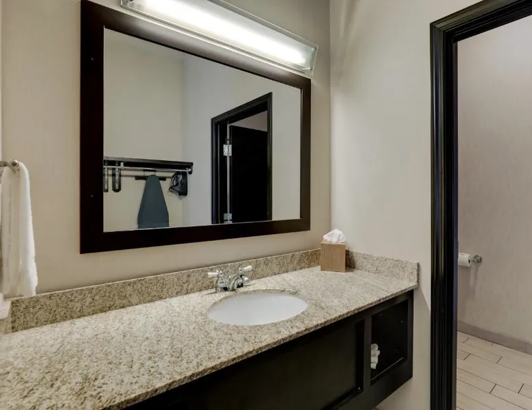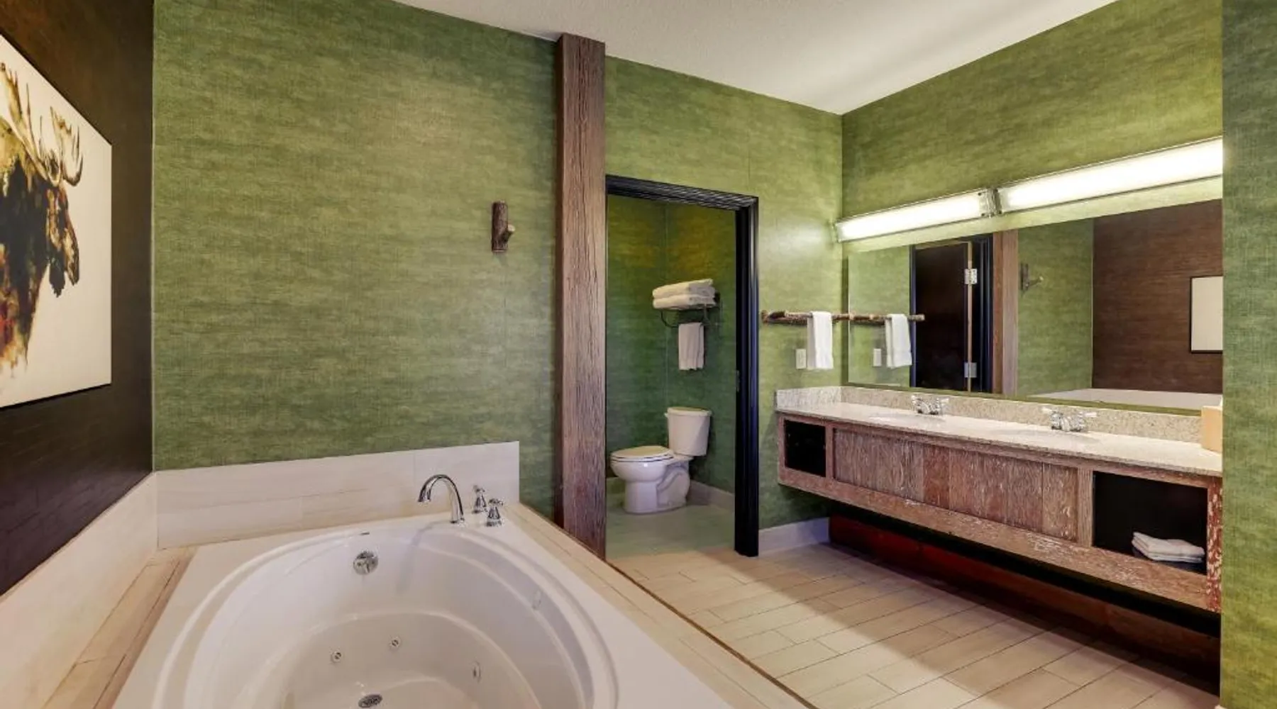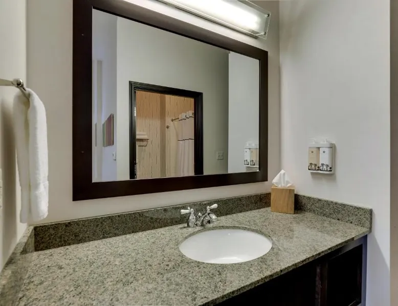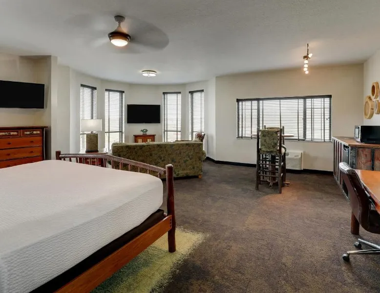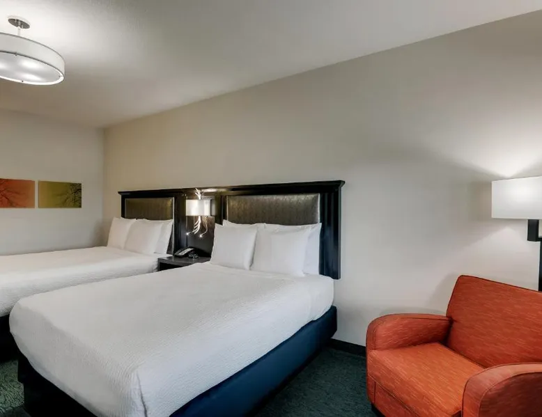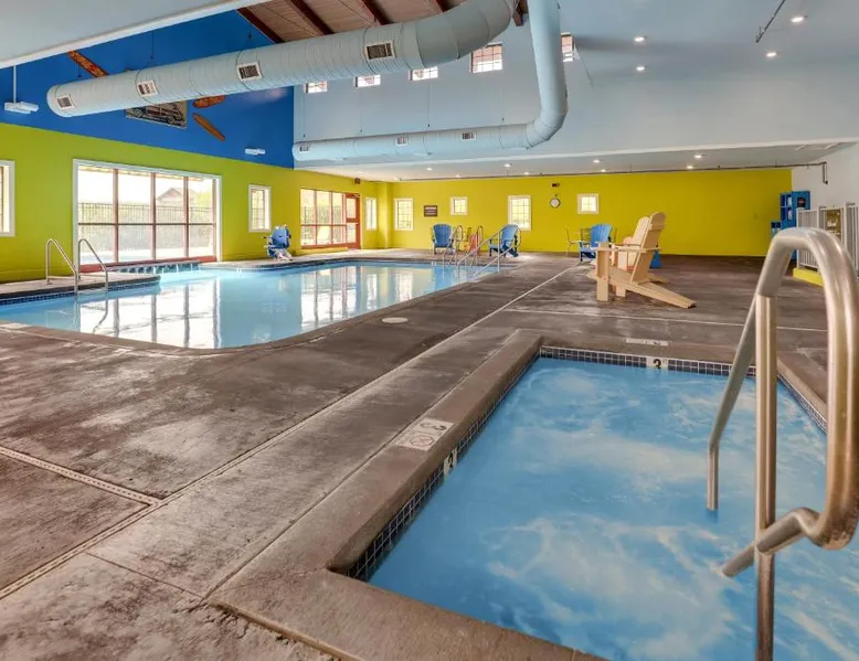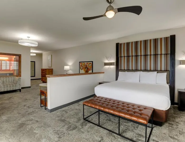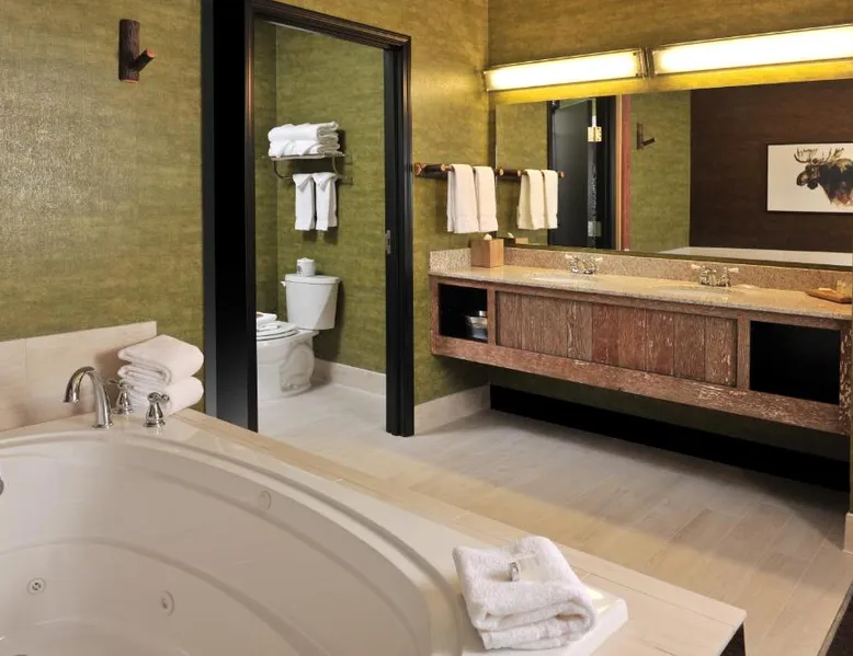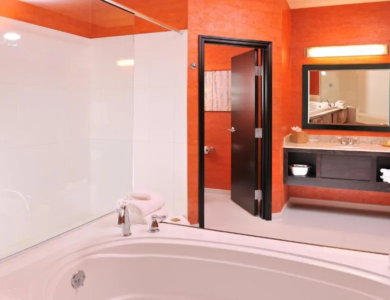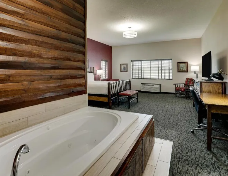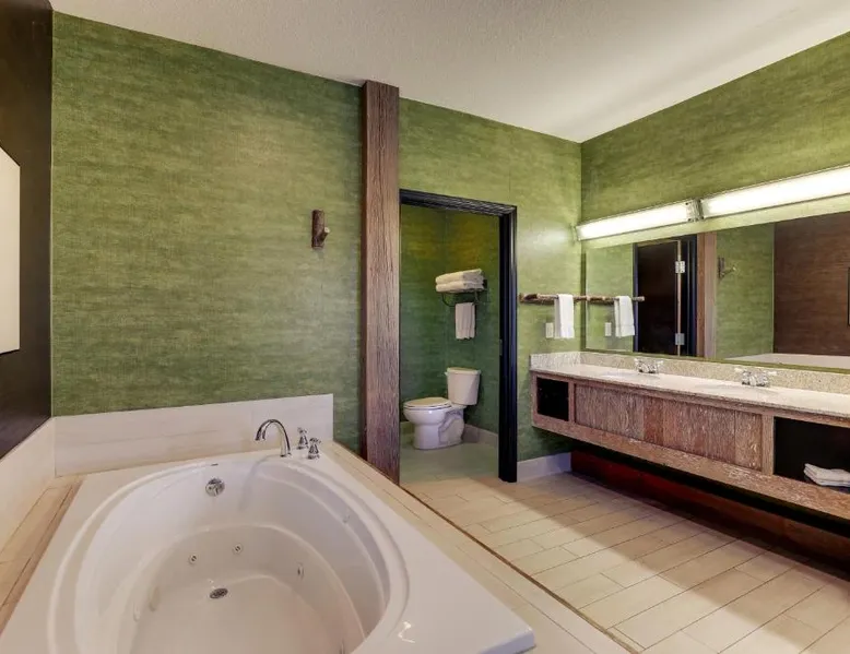 Comfortable Accommodations: Stony Creek Hotel Kansas City - Independence in Independence offers family rooms with air-conditioning, private bathrooms, and modern amenities. Each room includes a tea and coffee maker, hairdryer, refrigerator, work desk, free toiletries, microwave, shower, TV, and wardrobe. Exceptional Facilities: Guests can enjoy a fitness center, sun terrace, outdoor swimming pool, and free WiFi. Additional amenities include a hot tub, balcony with lake views, sofa bed, and interconnected rooms. Convenient Location: Located 32 mi from Kansas City International Airport, the hotel is near attractions such as Kauffman Stadium (7.5 mi), National World War I Museum at Liberty Memorial (13 mi), and Kansas City Zoo (14 mi). Free on-site parking is available. Guest Satisfaction: Guests appreciate the room cleanliness, convenient location, and attentive property staff and service support. The hot tub is a top feature of this suite. The air-conditioned suite has 1 bedroom and 1 bathroom with a walk-in shower and a hairdryer. The suite features carpeted floors, a seating area with a flat-screen TV with cable channels, a tea and coffee maker, a wardrobe, as well as heating. The unit has 2 beds.