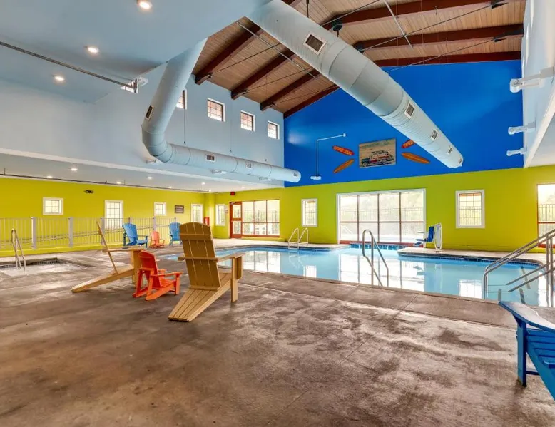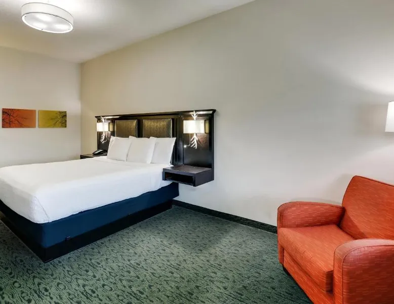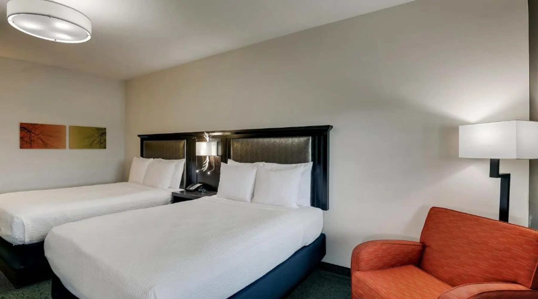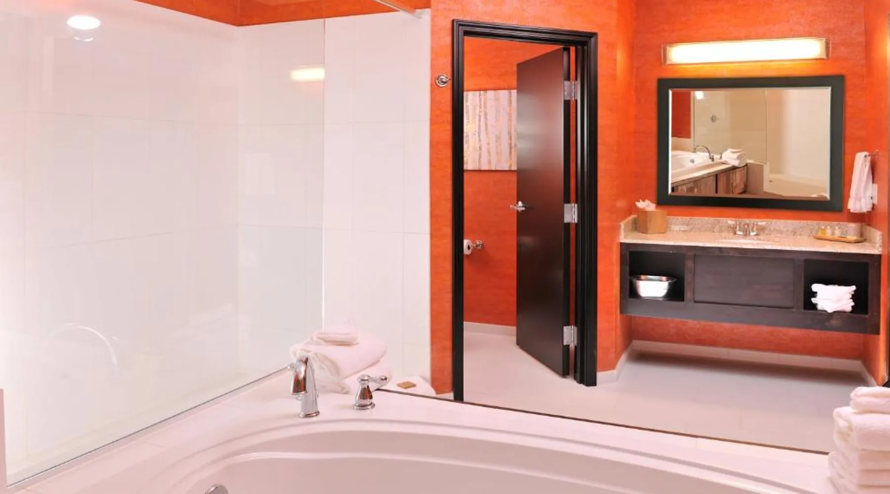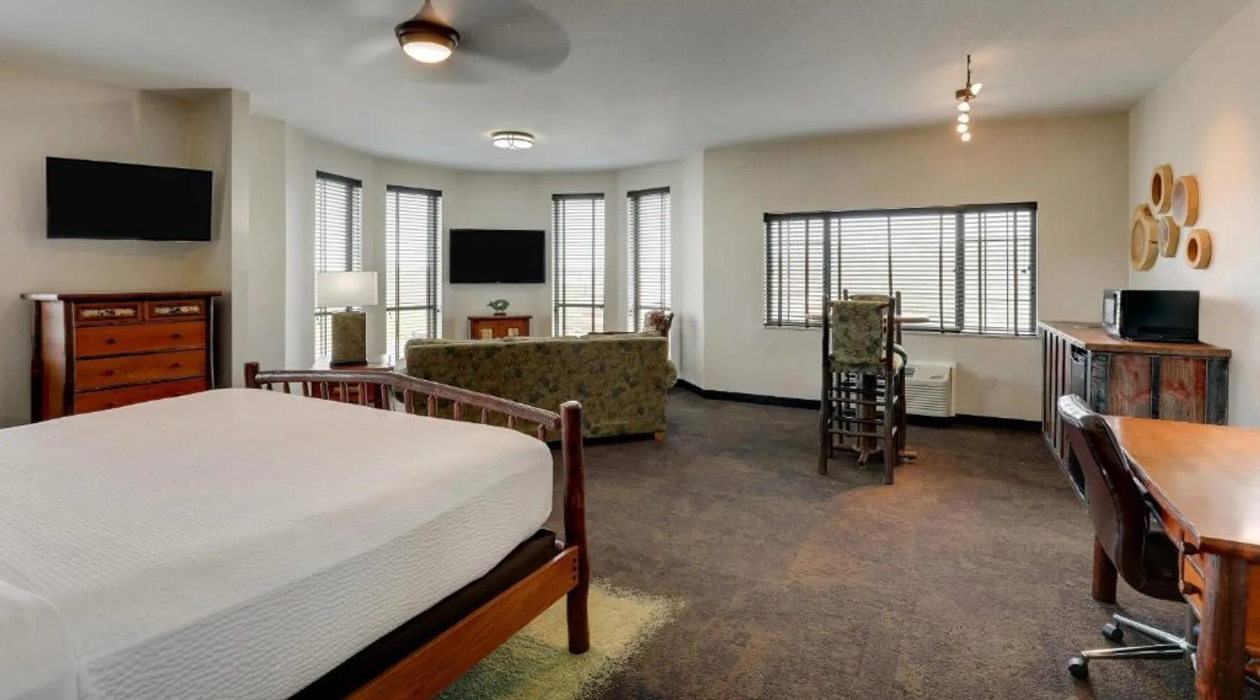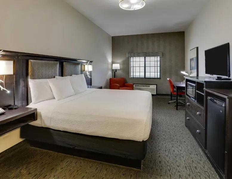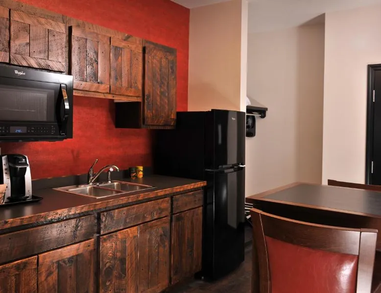 Comfortable Accommodations: Stony Creek Hotel Kansas City - Independence in Independence offers family rooms with air-conditioning, private bathrooms, and modern amenities. Each room includes a tea and coffee maker, hairdryer, refrigerator, work desk, free toiletries, microwave, shower, TV, and wardrobe. Exceptional Facilities: Guests can enjoy a fitness center, sun terrace, outdoor swimming pool, and free WiFi. Additional amenities include a hot tub, balcony with lake views, sofa bed, and interconnected rooms. Convenient Location: Located 32 mi from Kansas City International Airport, the hotel is near attractions such as Kauffman Stadium (7.5 mi), National World War I Museum at Liberty Memorial (13 mi), and Kansas City Zoo (14 mi). Free on-site parking is available. Guest Satisfaction: Guests appreciate the room cleanliness, convenient location, and attentive property staff and service support. The hot tub is a top feature of this suite. The air-conditioned suite has 1 bedroom and 1 bathroom with a walk-in shower and a hairdryer. The suite features carpeted floors, a seating area with a flat-screen TV with cable channels, a tea and coffee maker, a wardrobe, as well as heating. The unit has 2 beds.