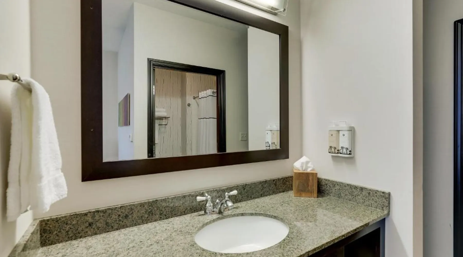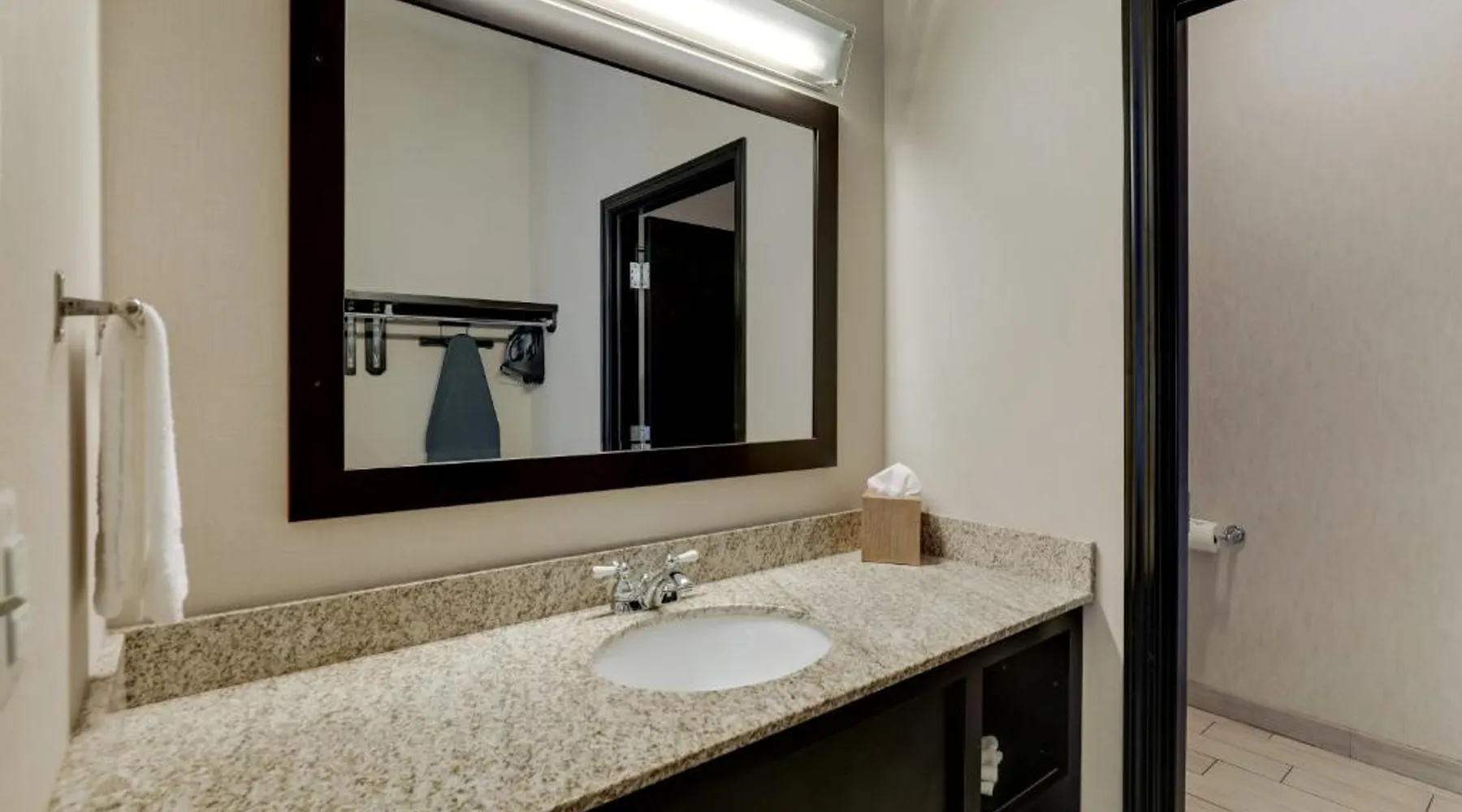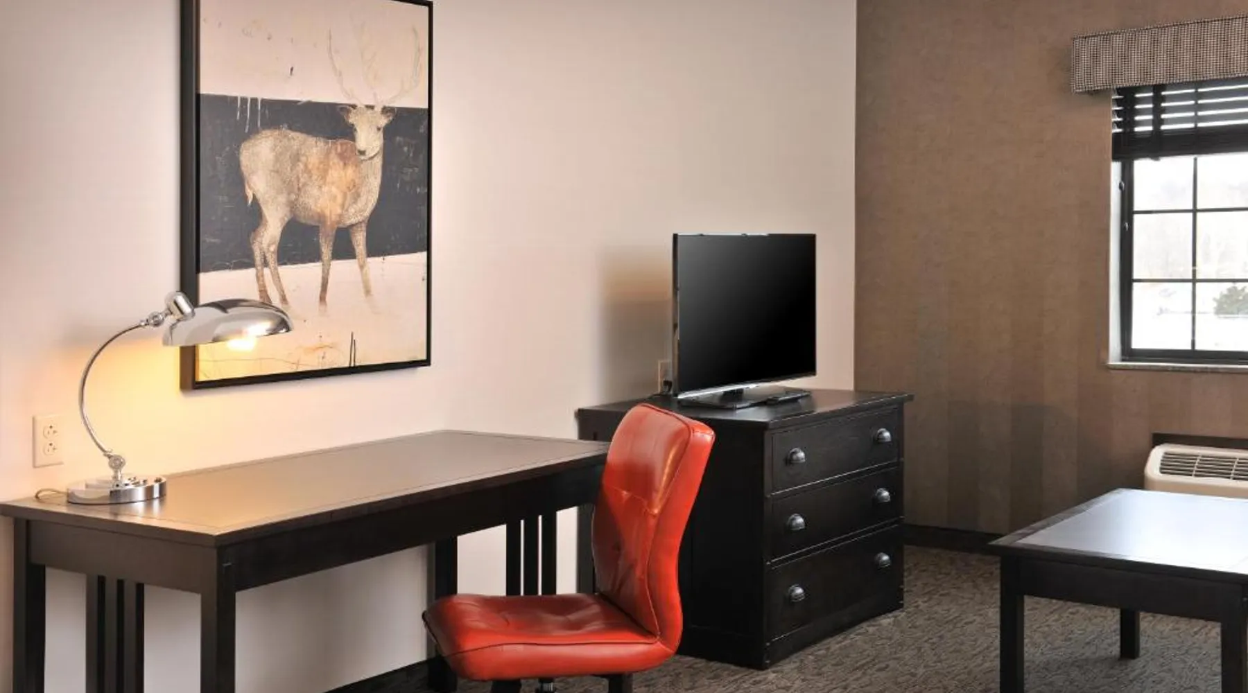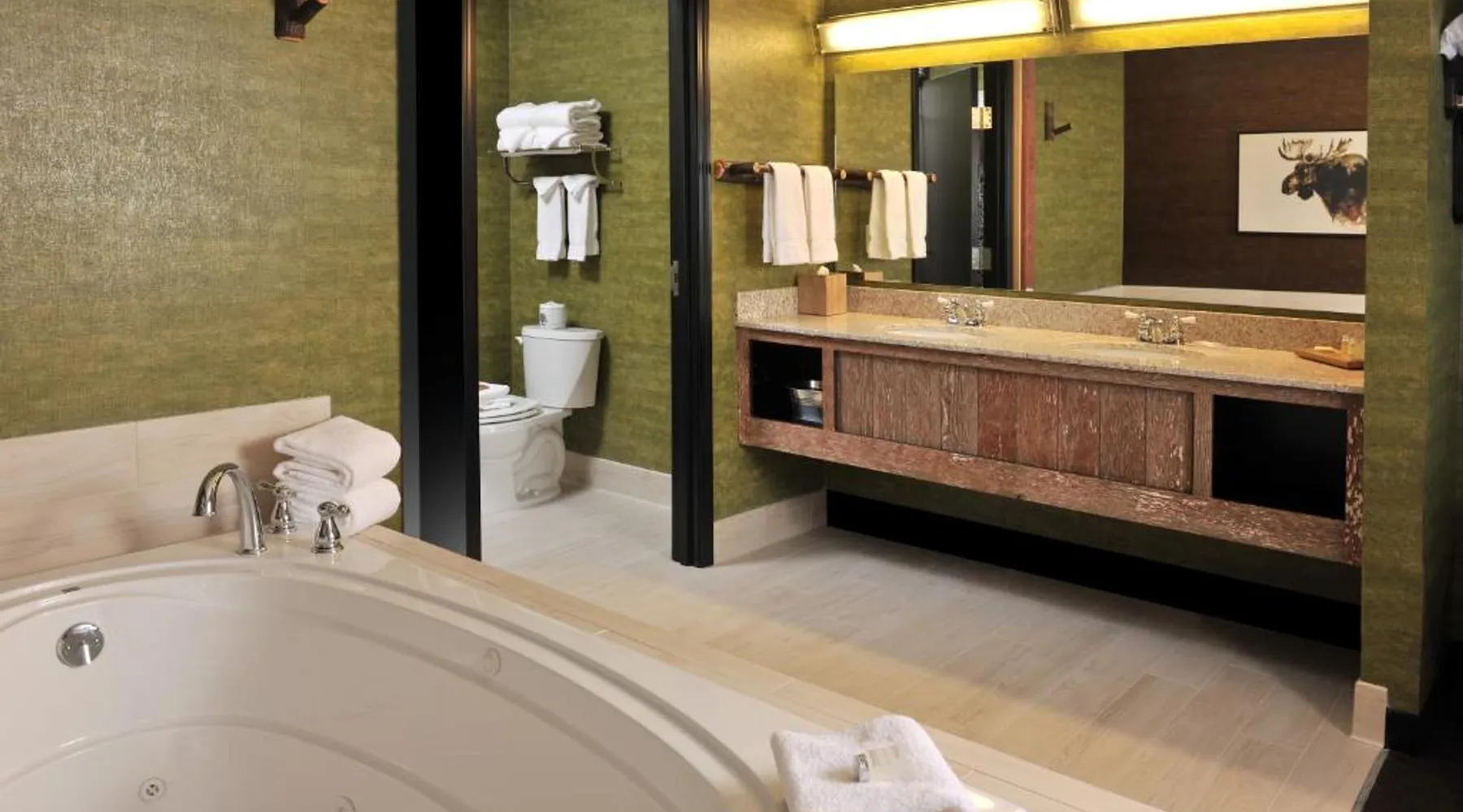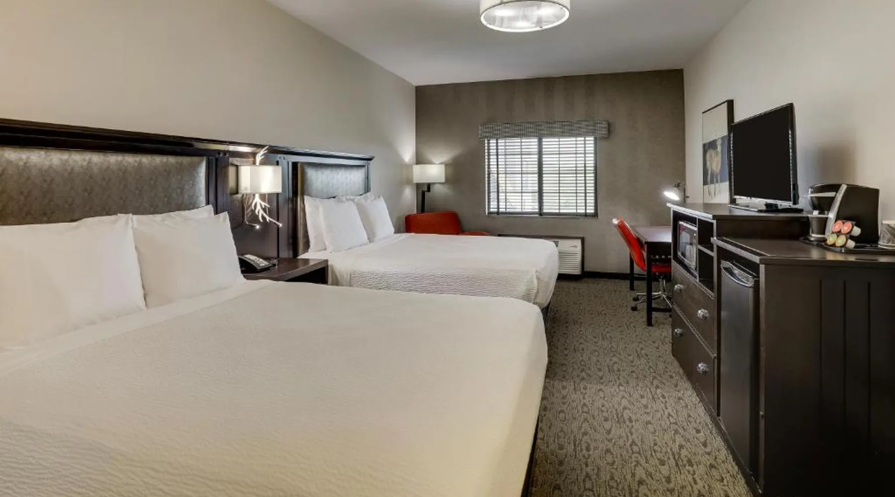 Comfortable Accommodations: Stony Creek Hotel Kansas City - Independence in Independence offers family rooms with air-conditioning, private bathrooms, and modern amenities. Each room includes a tea and coffee maker, hairdryer, refrigerator, work desk, free toiletries, microwave, shower, TV, and wardrobe. Exceptional Facilities: Guests can enjoy a fitness center, sun terrace, outdoor swimming pool, and free WiFi. Additional amenities include a hot tub, balcony with lake views, sofa bed, and interconnected rooms. Convenient Location: Located 32 mi from Kansas City International Airport, the hotel is near attractions such as Kauffman Stadium (7.5 mi), National World War I Museum at Liberty Memorial (13 mi), and Kansas City Zoo (14 mi). Free on-site parking is available. Guest Satisfaction: Guests appreciate the room cleanliness, convenient location, and attentive property staff and service support. The hot tub is a top feature of this suite. The air-conditioned suite has 1 bedroom and 1 bathroom with a walk-in shower and a hairdryer. The suite features carpeted floors, a seating area with a flat-screen TV with cable channels, a tea and coffee maker, a wardrobe, as well as heating. The unit has 2 beds.