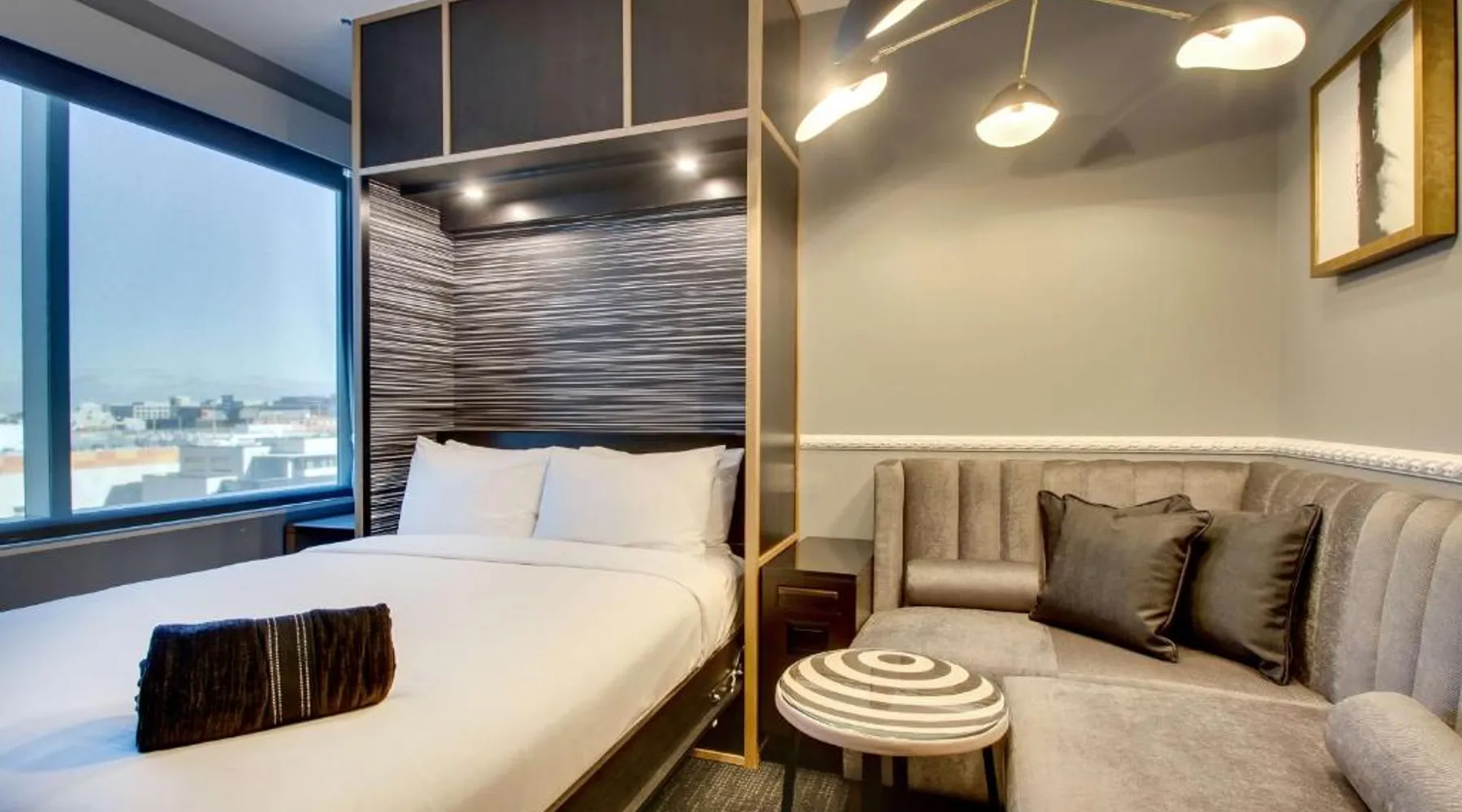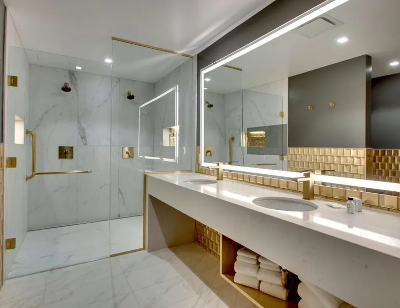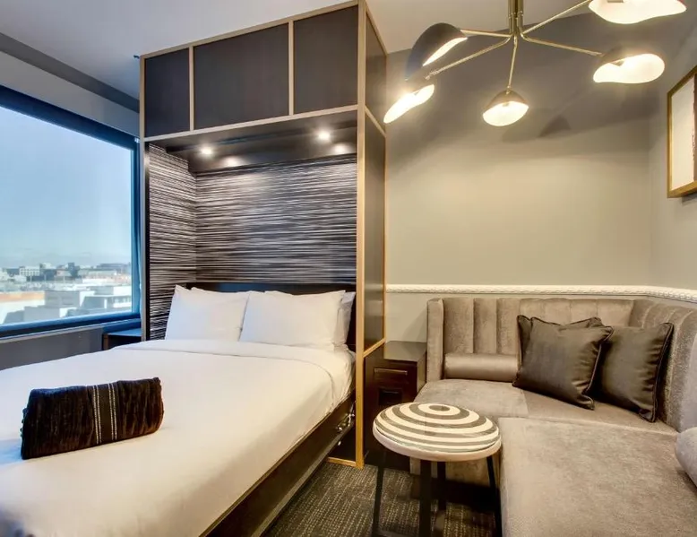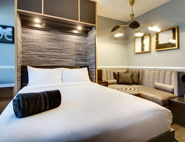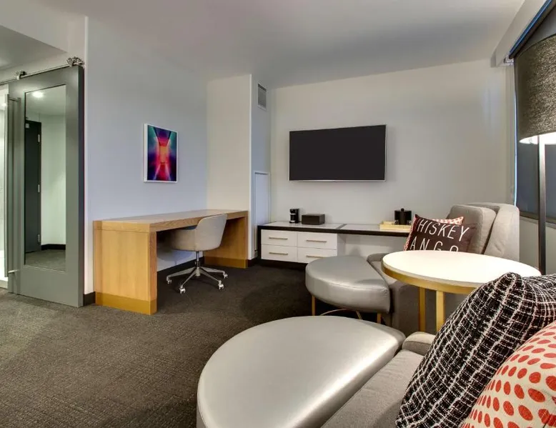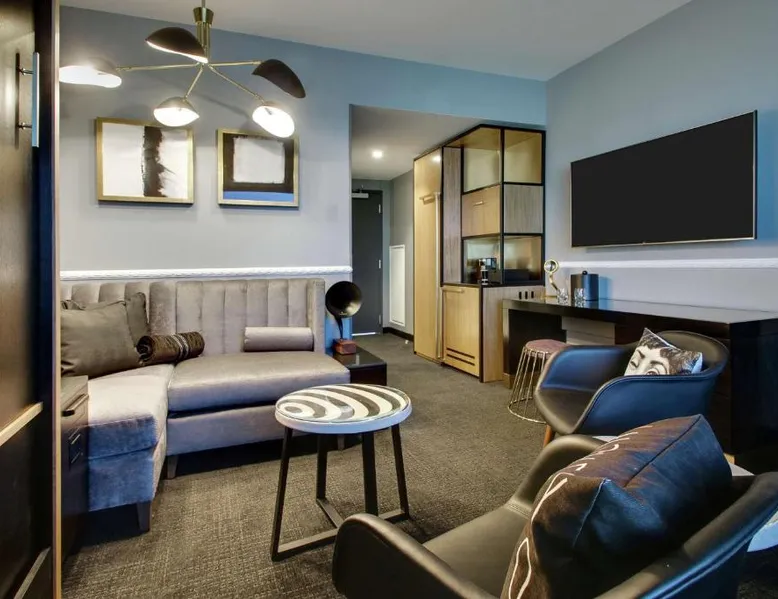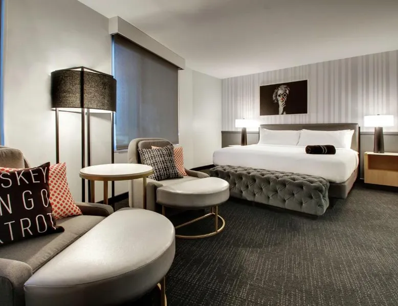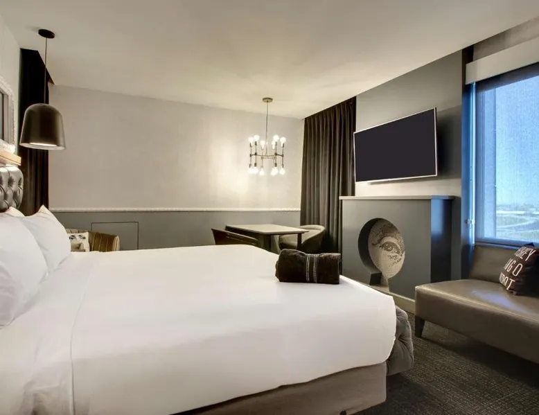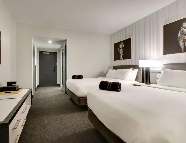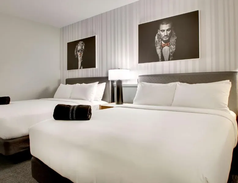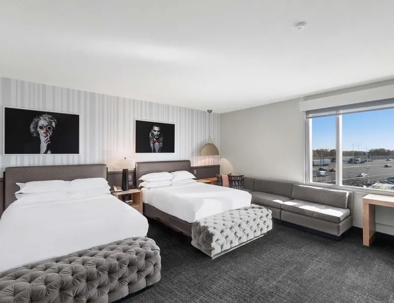 Comfortable Accommodations: The Rose Chicago, Tapestry Collection By Hilton in Rosemont offers family rooms with air-conditioning, private bathrooms, and city views. Each room includes a work desk, free WiFi, and modern amenities. Dining and Leisure: Guests can enjoy a fitness center, terrace, restaurant, and bar. The family-friendly restaurant serves American cuisine with vegetarian options, while the bar offers cocktails in a modern setting. Convenient Location: Located 1.2 mi from Chicago O'Hare International Airport, the hotel is near attractions such as Rosemont Theater (13-minute walk) and Donald E Stephens Convention Center (0.9 mi). Free airport shuttle and paid on-site parking are available. Featuring free toiletries, this quadruple room includes a private bathroom with a walk-in shower, a bath and a hairdryer. The air-conditioned quadruple room features a flat-screen TV with cable channels, soundproof walls, a tea and coffee maker, a seating area as well as city views. The unit has 2 beds.