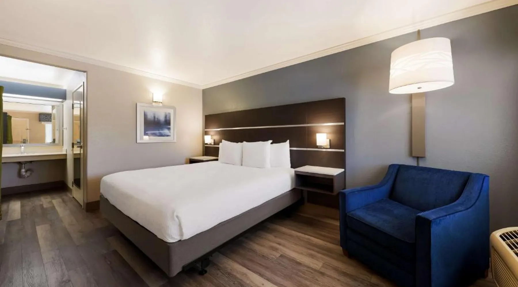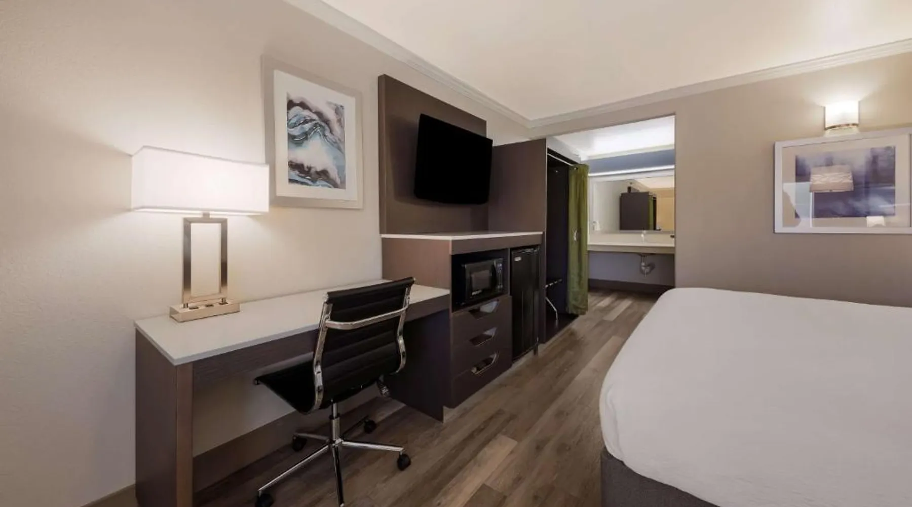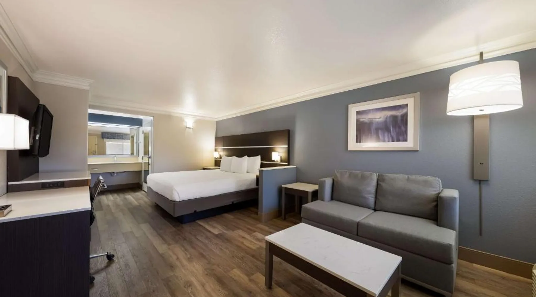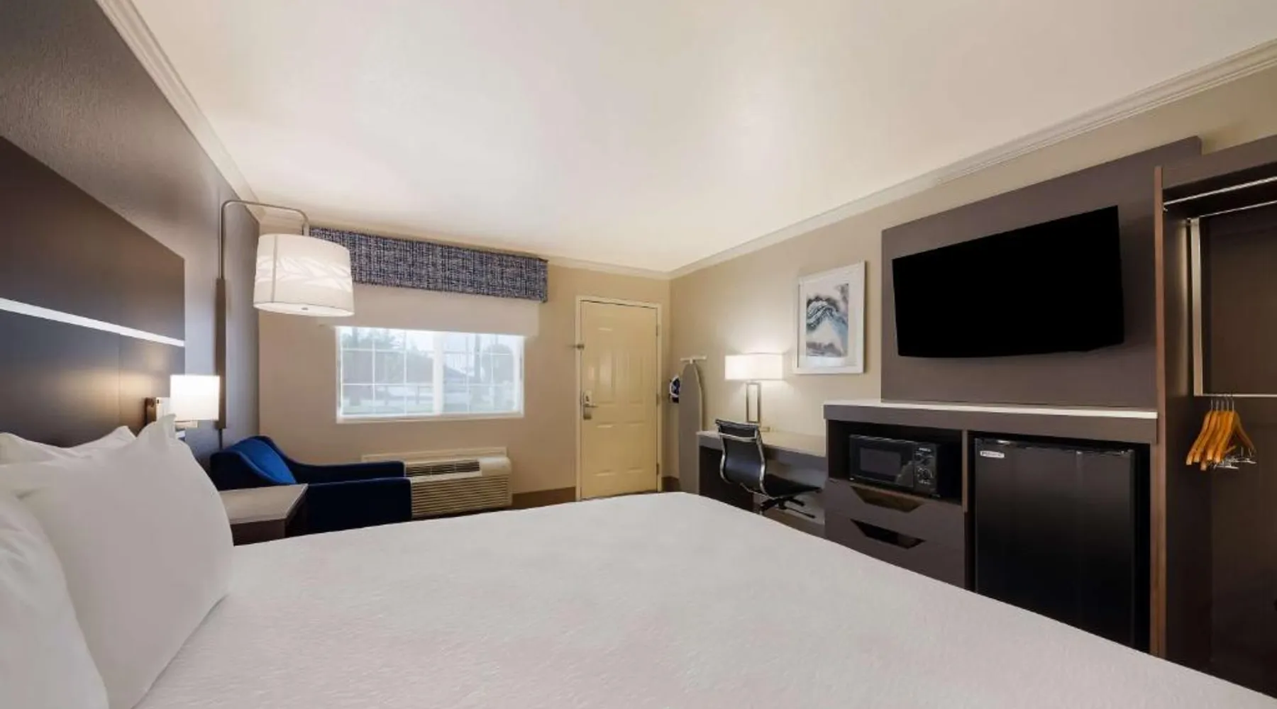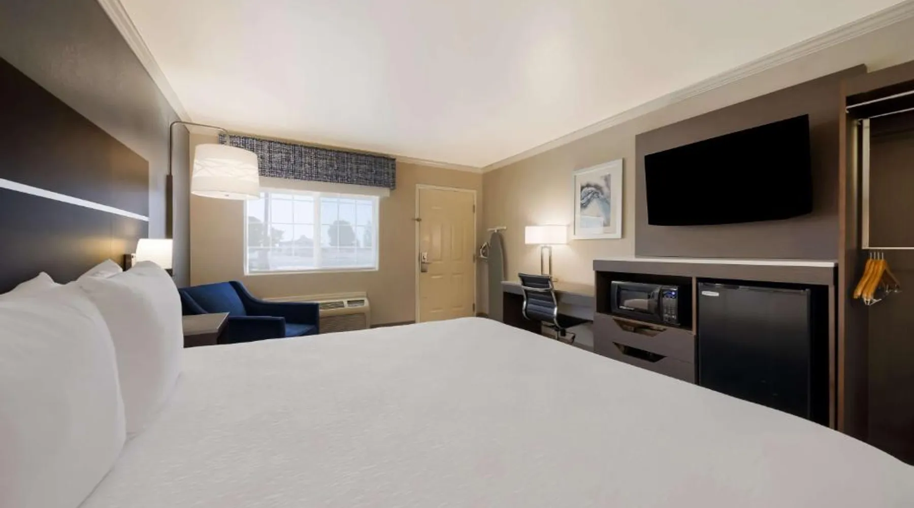 Offering an outdoor pool, Best Western Inn & Suites Lemoore is located in Lemoore. Free WiFi access is available. Each air-conditioned room offers a flat-screen cable TV. A microwave and refrigerator are provided. An private bathroom with free toiletries is included. At Best Western Inn & Suites Lemoore you will find a 24-hour front desk. Other facilities offered include a business center and vending machines offering snacks and drinks. The property offers free parking. Lemoore Golf Course is 1.7 mi away from the property. This is king bedroom has a microwave, tea/coffee maker and refrigerator.
