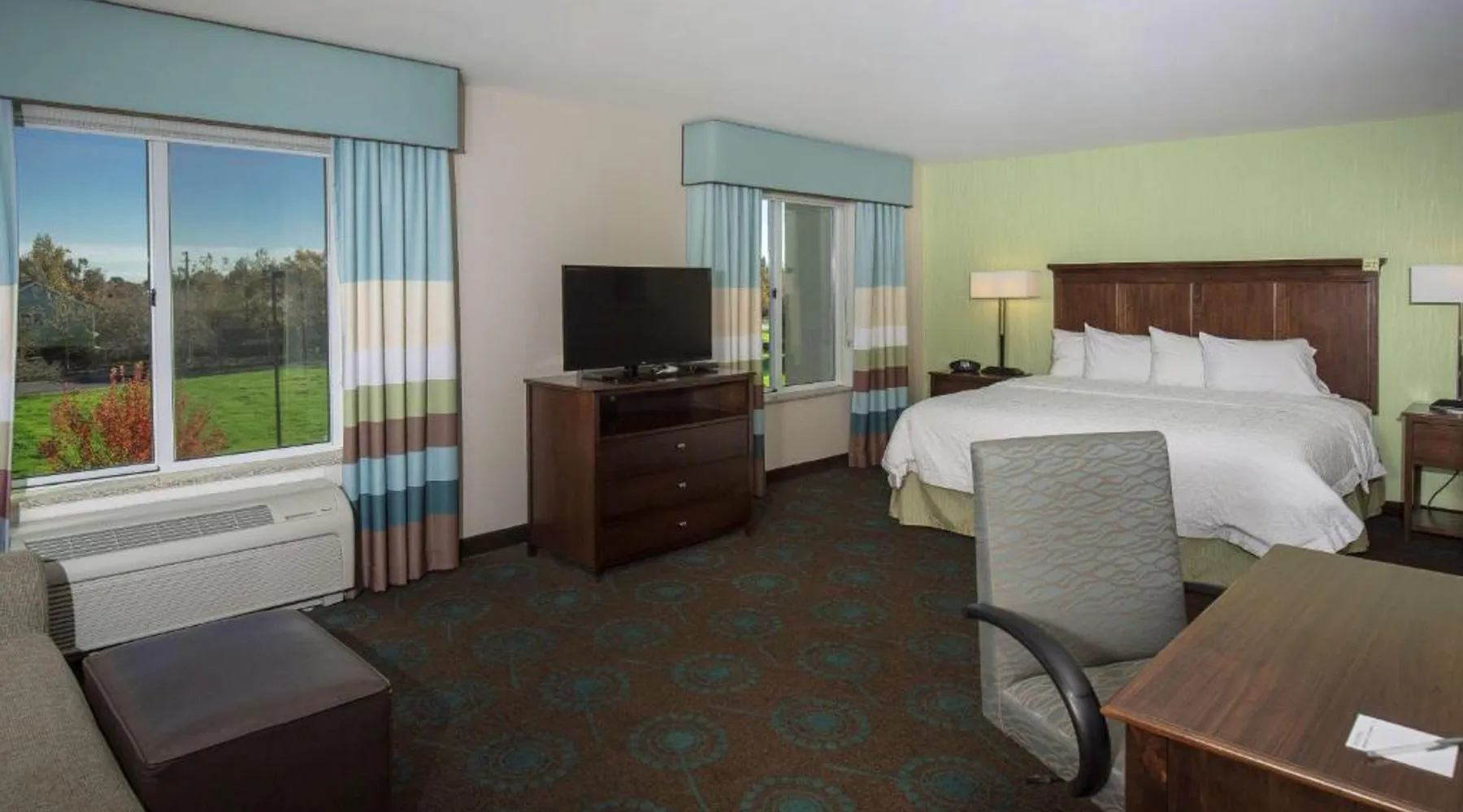 This hotel is in the Suisun City Waterfront and 8 miles from Travis Air Force Base. The hotel offers a tour desk, business center, gym and an outdoor pool. Hampton Inn & Suites Suisun City Waterfront rooms include a 32-inch flat-screen TV and coffee maker. The room is equipped with free Wi-Fi. Suisun City Waterfront Hampton Inn and Suites provides guests with a daily breakfast. The hotel has convenience store. The Hampton Inn & Suites is within a 60-minute drive of Napa Valley. The hotel is 14 miles from the Six Flags Discovery Kingdom, an amusement park. This room has a view of the Suisun City Waterfront.