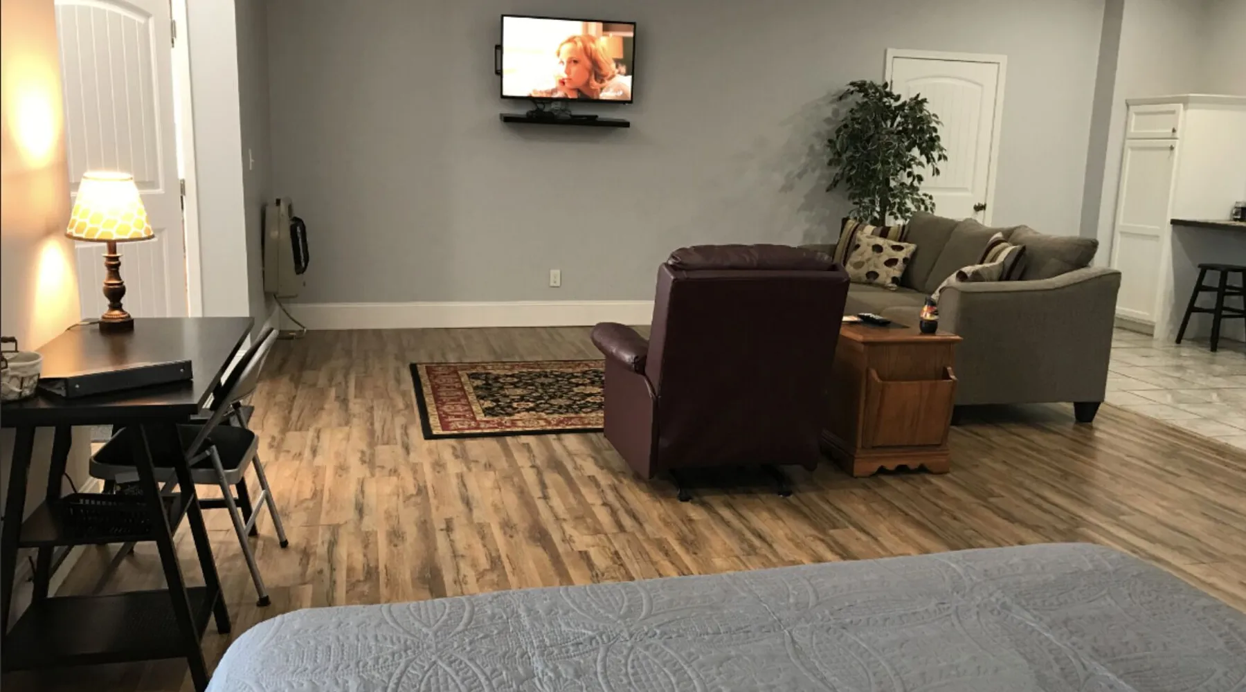 Private 1 bedroom studio on our 70 acre all natural farm. The apartment is in the basement of our house. It has its own private entrance and everything up to 2 people need to enjoy their time in the area. We are located 1 hr from Charlotte, Asheville, and Boone. In addition there is lots to do within minutes of our house. Table rock mountain, Lake Rhodehiss, Lake James, the site of the filming of the hunger games, historic Valdese, Wineries, Local Breweries, hiking in the south mountains, and many more awesome activities. Or just hang out and enjoy our many cows, sheep, chickens, and dogs. During the summer months you will also have access to our families swimming pool. Sit by the pool and enjoy the fire and listening to the many sounds the farm has to offer. Plenty of parking for your boat or camper. We live just upstairs so if you have any questions or problems we can help.