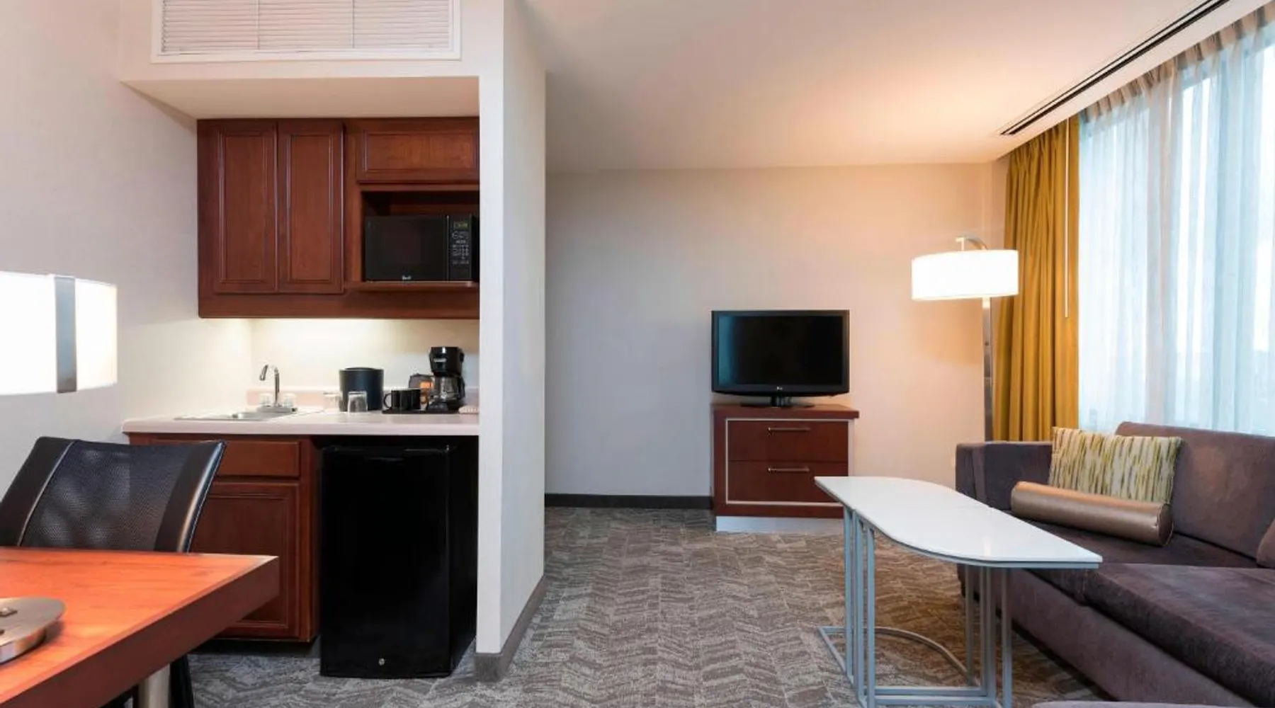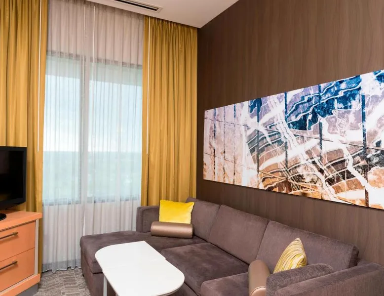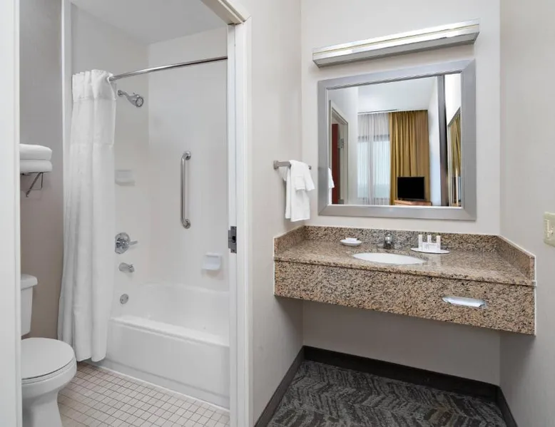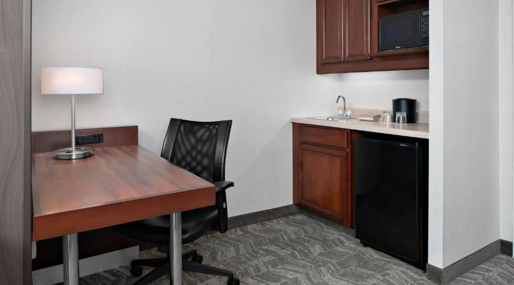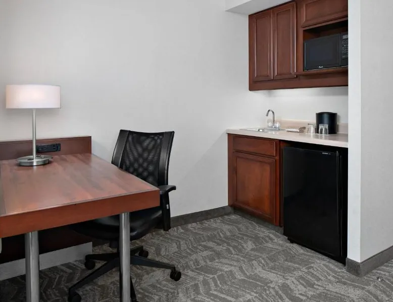 This Chicago hotel is a 10-minute walk from the Cumberland CTA Station and 4.1 mi from O'Hare International Airport. The hotel offers a daily hot breakfast and free airport shuttle service. Guest rooms at the Chicago SpringHill Suites are equipped with mini-refrigerators and microwave. Guests can also use the in-room free WiFi or the coffee maker. A fitness center are featured at SpringHill Suites by Marriott Chicago O'Hare. Laundry facilities and a 24-hour front desk are also included at this completely nonsmoking hotel. Chicago city center is 20 minutes' drive from the SpringHill Suites near O'Hare. The Donald E. Stevens Convention Center is 5 minutes' drive away, and guests will be 3 mi from Rivers Casino. Featuring a kitchenette, this room also provides cable TV and a seating area.
