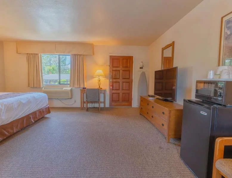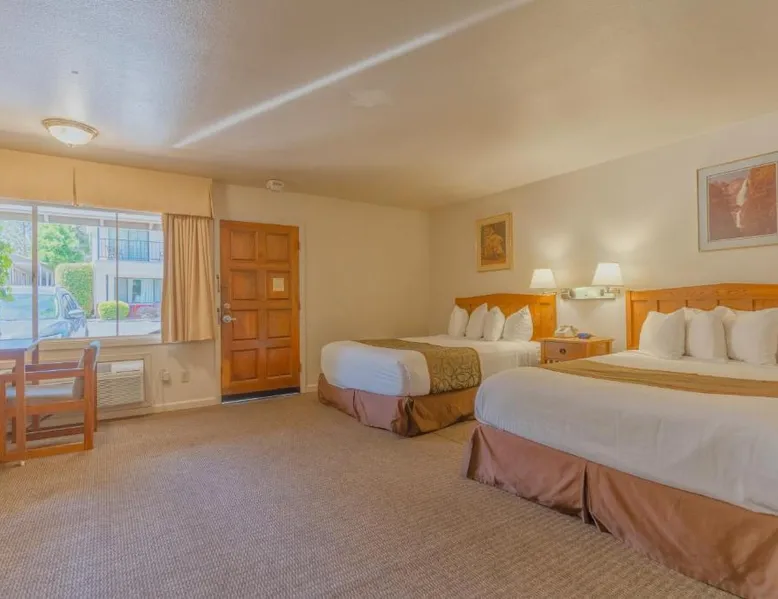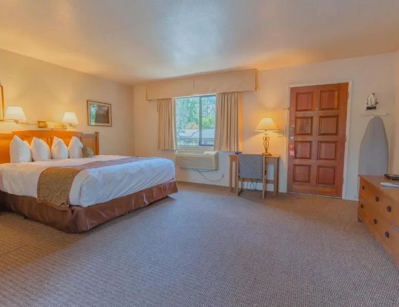 Comfortable Accommodations: Mariposa Lodge in Mariposa offers comfortable rooms with air-conditioning, private bathrooms, and modern amenities. Each room includes a tea and coffee maker, hairdryer, and free toiletries. Leisure Facilities: Guests can enjoy a seasonal outdoor swimming pool, a beautiful garden, and free WiFi throughout the property. Additional facilities include an outdoor seating area and a picnic area. Convenient Location: Located 39 mi from Merced Municipal Airport and 30 mi from Yosemite South Entrance, the hotel provides easy access to local attractions. Free on-site private parking is available for guests. Guest Satisfaction: Guests appreciate the convenient location, room cleanliness, and room comfort, ensuring a pleasant stay. The spacious double room offers air conditioning, soundproof walls, as well as a private bathroom boasting a bath and a shower. The double room features a tea and coffee maker, a wardrobe, a carpeted floor, heating and a flat-screen TV with satellite channels. The unit has 2 beds.