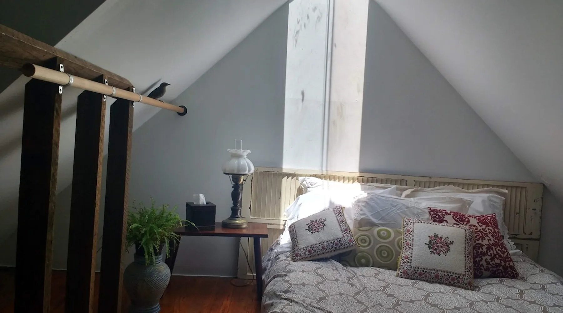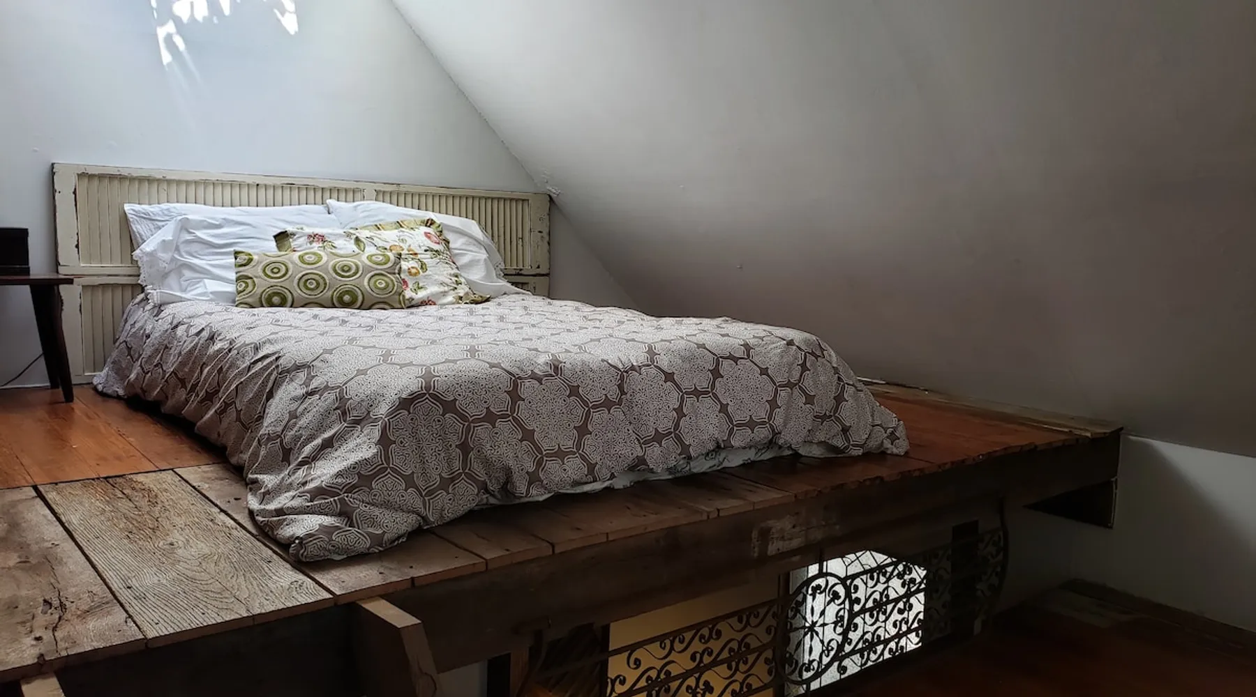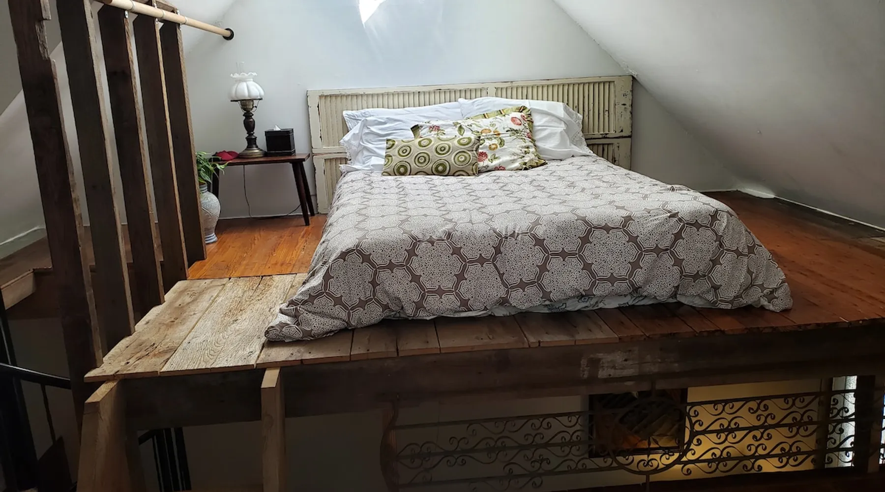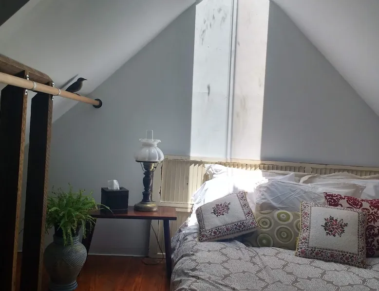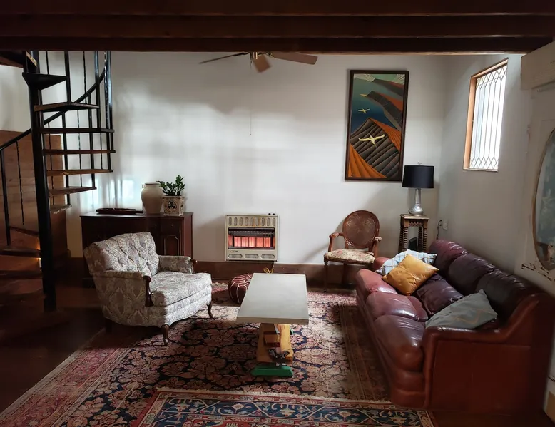 Currently available only for monthly rentals. Tucked away just steps from Dickson St. within easy walking distance of the Fayetteville square and it's award winning Farmer's Market. This location is truly unique. The building is older and recognized by Fayetteville residents for it's eccentricity and charm. Guest access This listing is for the entire apartment. The space is fairly large and open. The bedroom is in a loft accessed from the living room by a spiral staircase. The kitchen is a separate room, but also open to the living room. The bathroom has all the required amenities, including a claw foot tub with a shower above it.