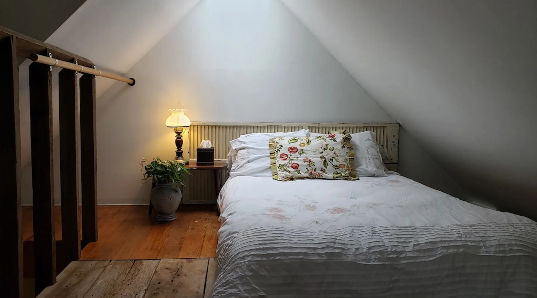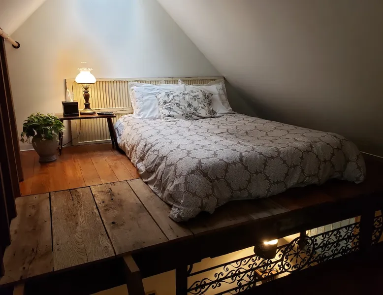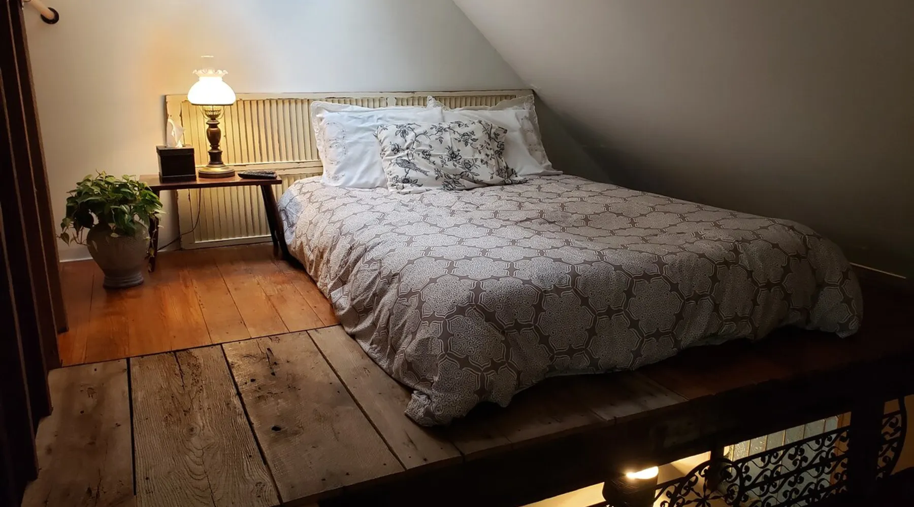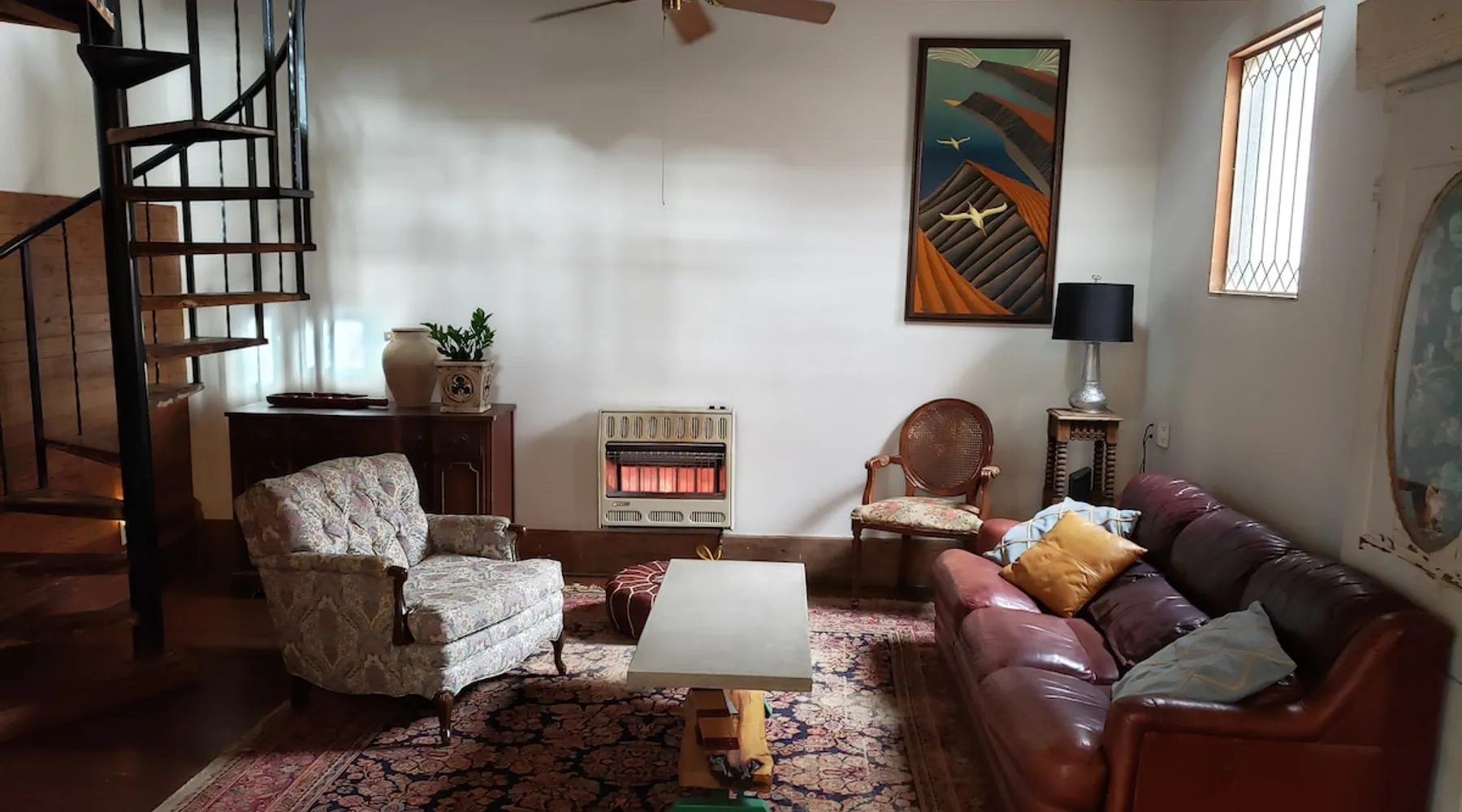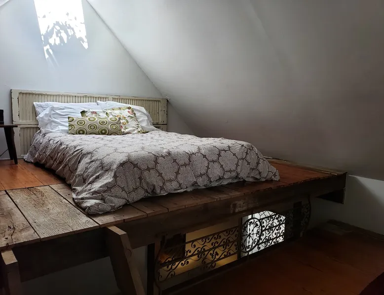Currently available only for monthly rentals. Tucked away just steps from Dickson St. within easy walking distance of the Fayetteville square and it's award winning Farmer's Market. This location is truly unique. The building is older and recognized by Fayetteville residents for it's eccentricity and charm. Guest access This listing is for the entire apartment. The space is fairly large and open. The bedroom is in a loft accessed from the living room by a spiral staircase. The kitchen is a separate room, but also open to the living room. The bathroom has all the required amenities, including a claw foot tub with a shower above it.