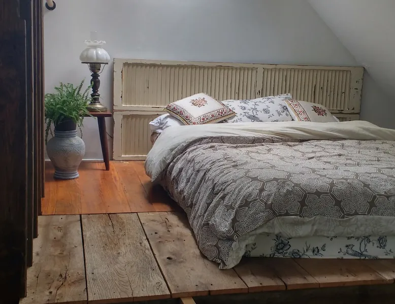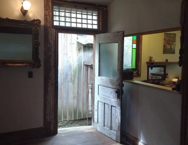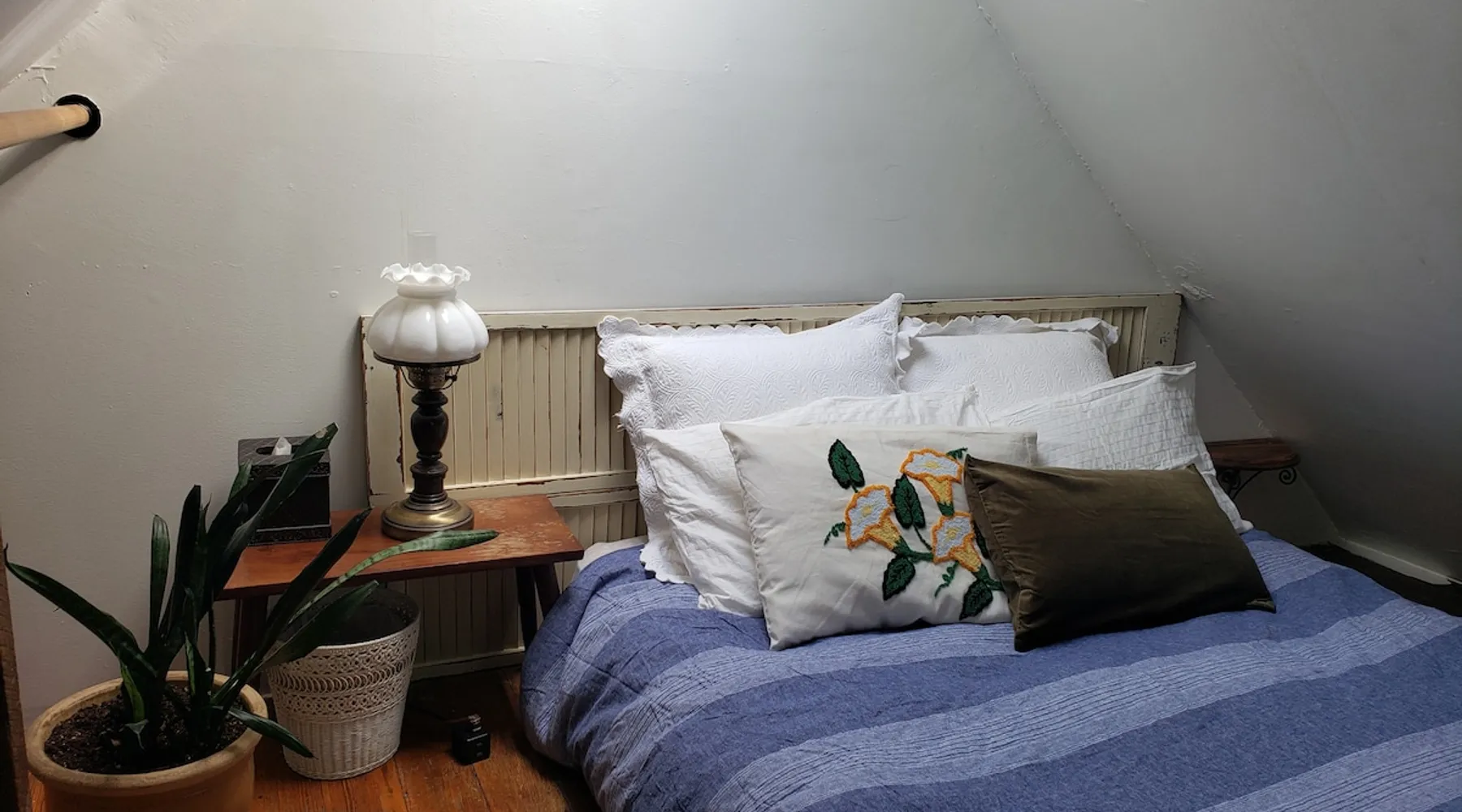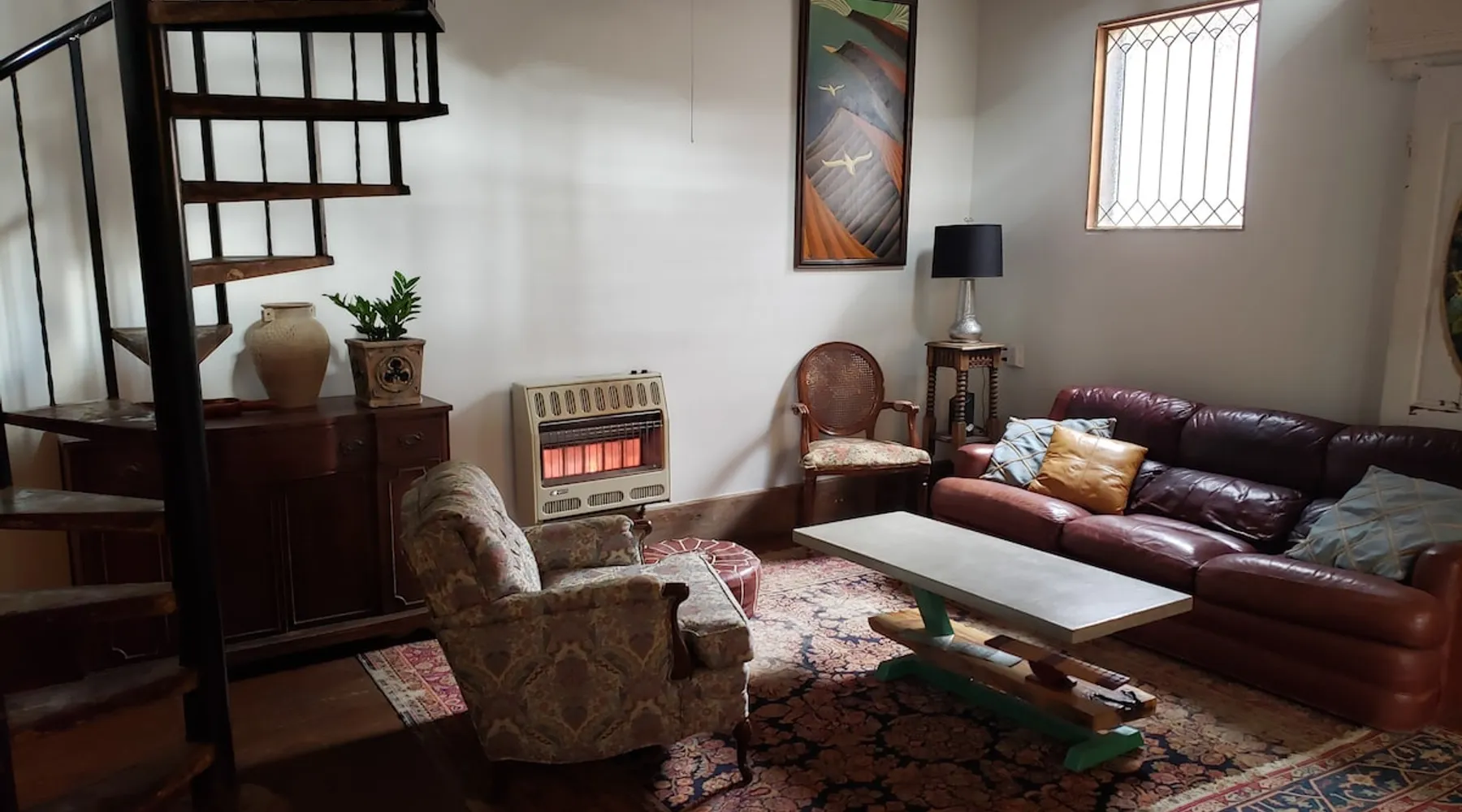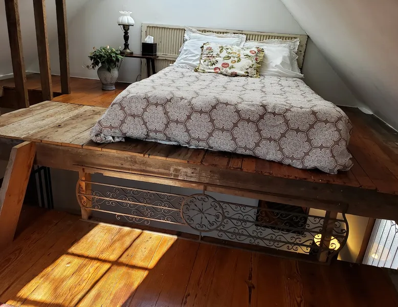 Currently available only for monthly rentals. Tucked away just steps from Dickson St. within easy walking distance of the Fayetteville square and it's award winning Farmer's Market. This location is truly unique. The building is older and recognized by Fayetteville residents for it's eccentricity and charm. Guest access This listing is for the entire apartment. The space is fairly large and open. The bedroom is in a loft accessed from the living room by a spiral staircase. The kitchen is a separate room, but also open to the living room. The bathroom has all the required amenities, including a claw foot tub with a shower above it.
