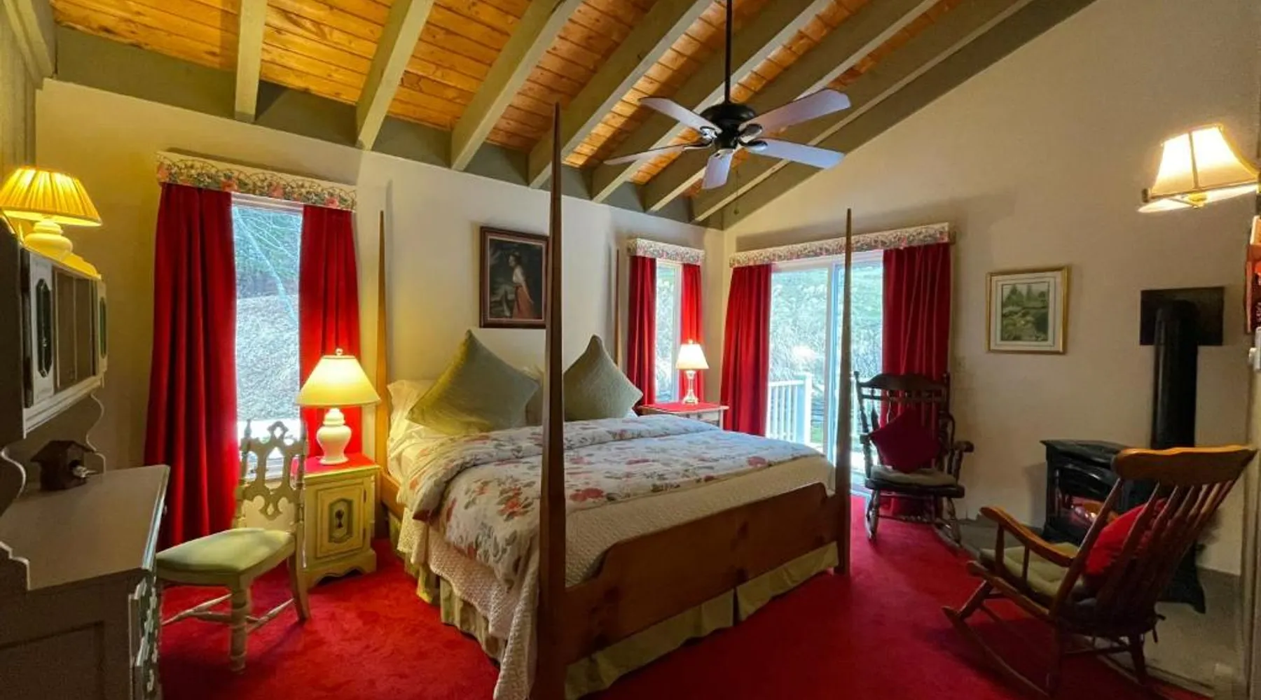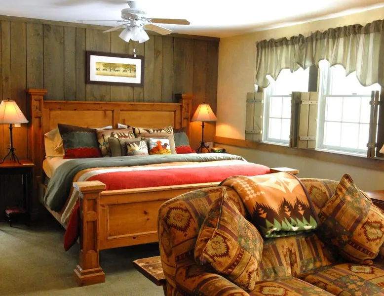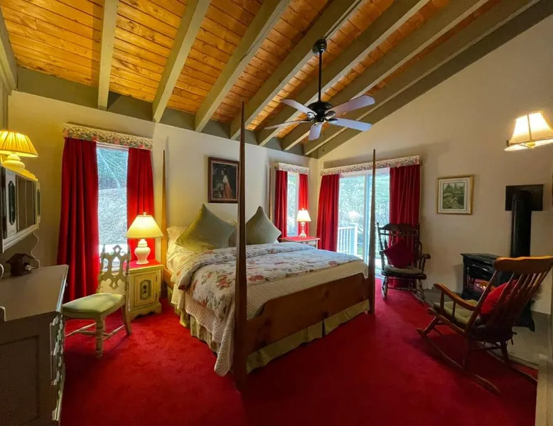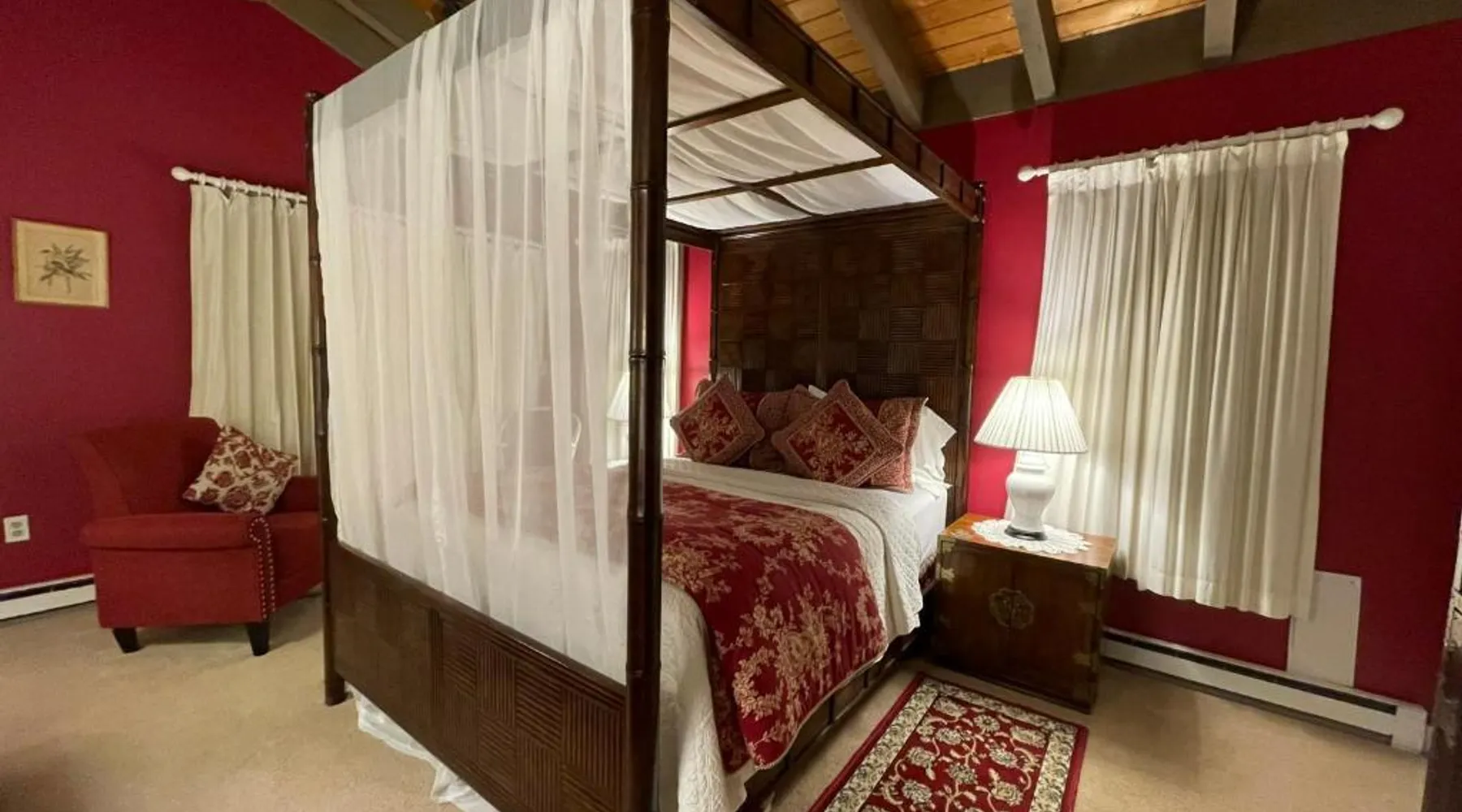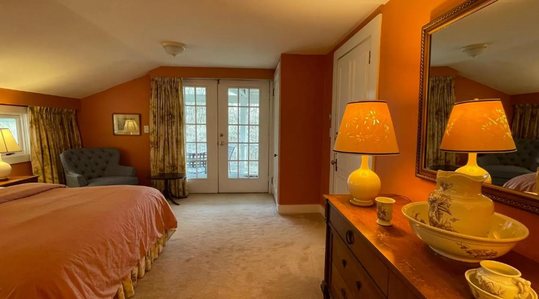 Elegant Accommodations: Deerhill Inn in West Dover offers a 5-star adults-only inn experience. Guests enjoy a swimming pool with stunning views, a sun terrace, and a lush garden. Free WiFi is available throughout the property. Comfortable Amenities: The inn features a bar, lounge, and outdoor seating area. Additional facilities include a fitness center, yoga classes, and ski pass sales point. Free private parking and electric vehicle charging are provided. Delicious Breakfast: A variety of breakfast options are available, including American, à la carte, vegetarian, and gluten-free. Guests can savor local specialties, fresh pastries, and a selection of fruits and juices. Prime Location: Located 58 mi from Rutland State Airport, the inn is near attractions such as Mount Snow Resort (1.9 mi) and Bennington Battle Monument (28 mi). Guests appreciate the friendly staff and comfortable rooms. This room features a spa bath, mountain views, and a balcony.