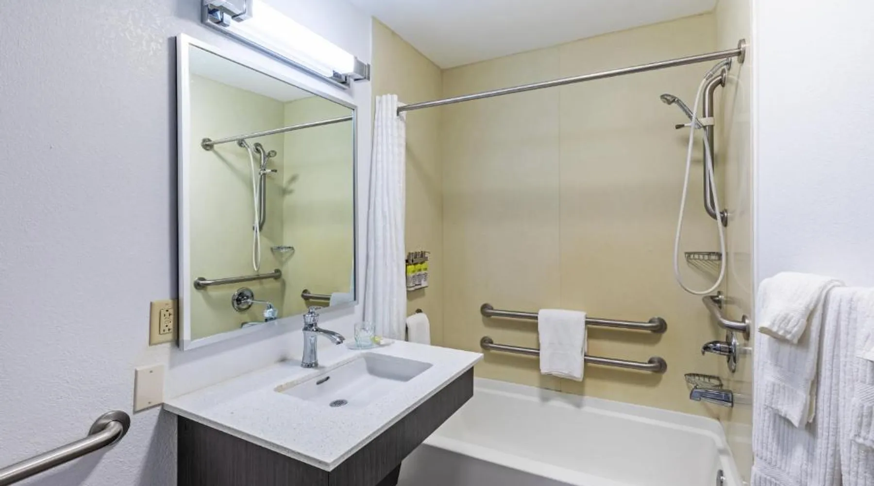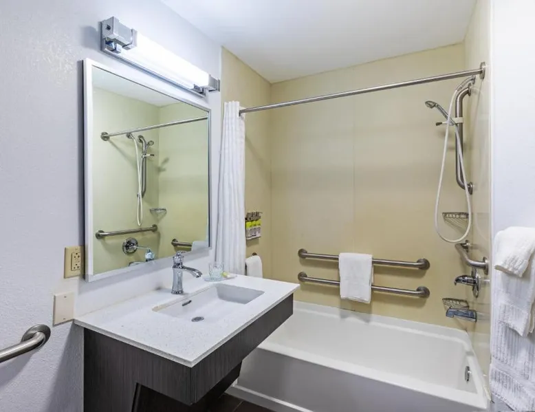 Comfortable Accommodations: Candlewood Suites Hattiesburg by IHG in Hattiesburg offers well-appointed rooms with air-conditioning, kitchenettes, and private bathrooms. Each room includes free toiletries, a work desk, and a sofa bed. Exceptional Facilities: Guests can enjoy a fitness center, garden, and free WiFi. Additional amenities include a elevator, 24-hour front desk, outdoor seating area, picnic area, and barbecue facilities. Free on-site parking is available. Prime Location: Located 8.7 mi from Hattiesburg-Laurel Regional Airport, the hotel is a 15-minute walk from Lake Terrace Convention Center. Nearby attractions include Hattiesburg Zoo at Kamper Park (4.3 mi) and Usm'S Museum Of Art (4.3 mi). Guest Favorites: Guests appreciate the attentive staff, fully equipped kitchen, and convenient location. This accessible suite features a fully-equipped kitchenette with a microwave and refrigerator.