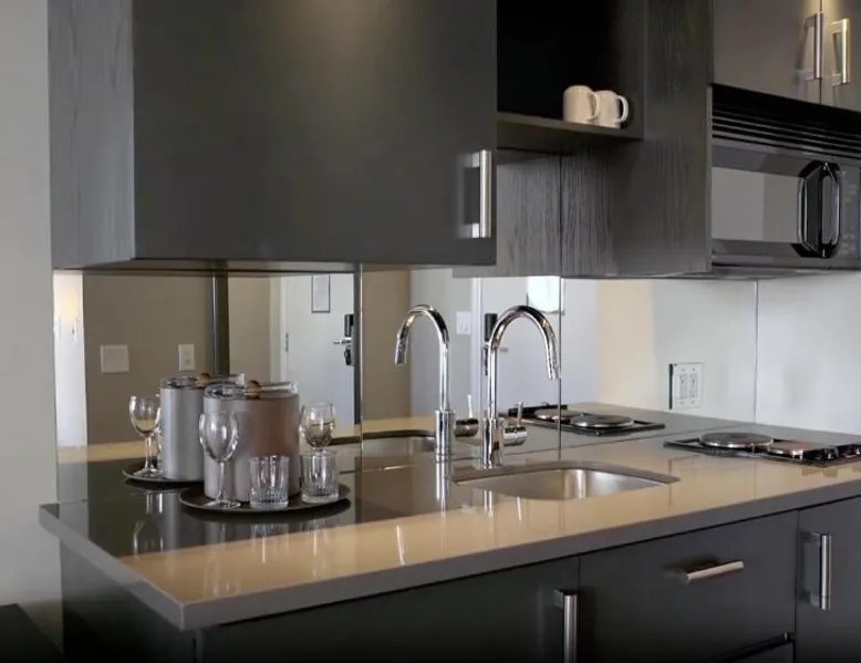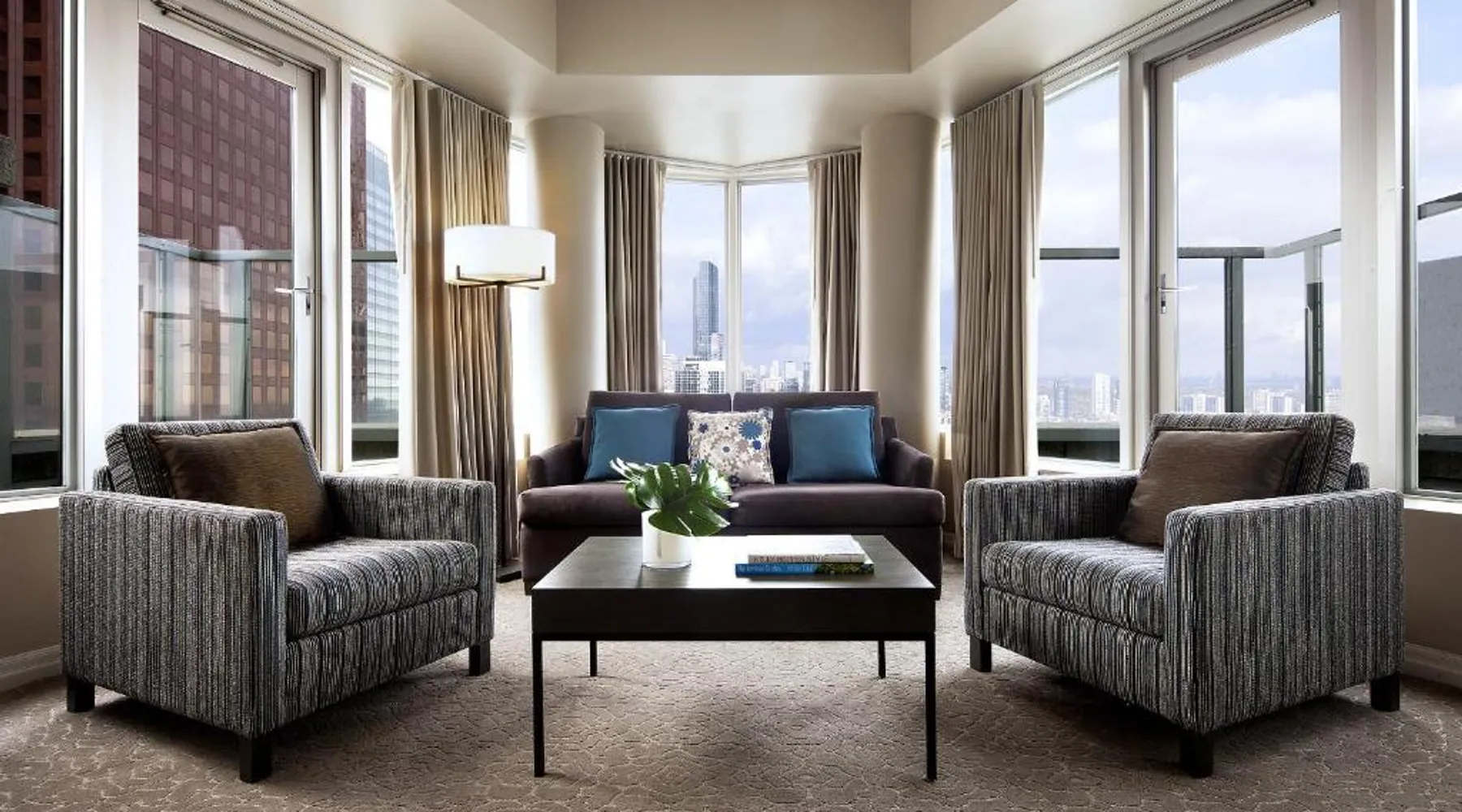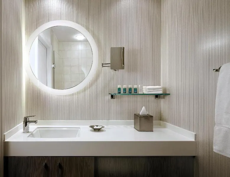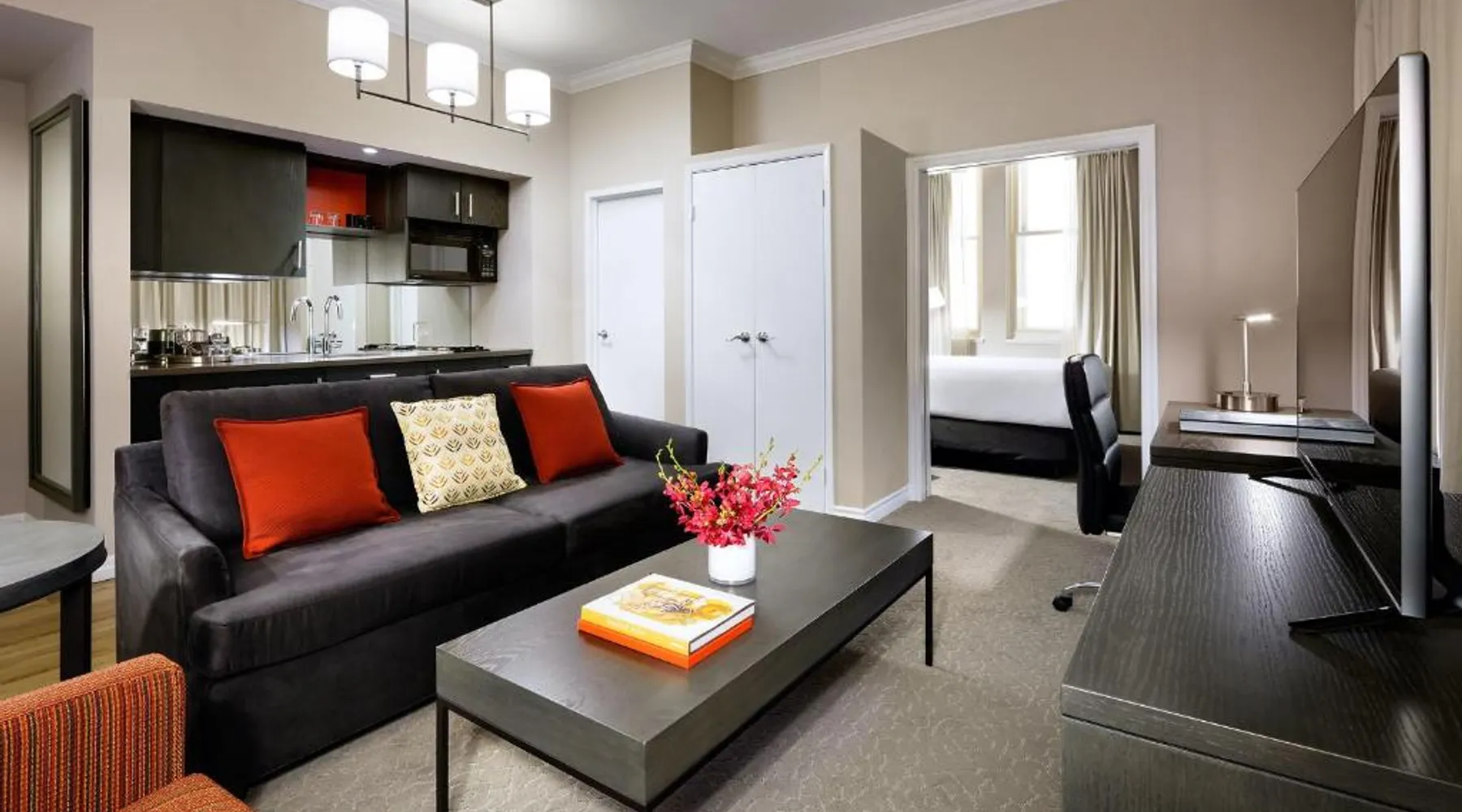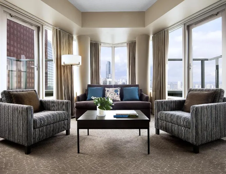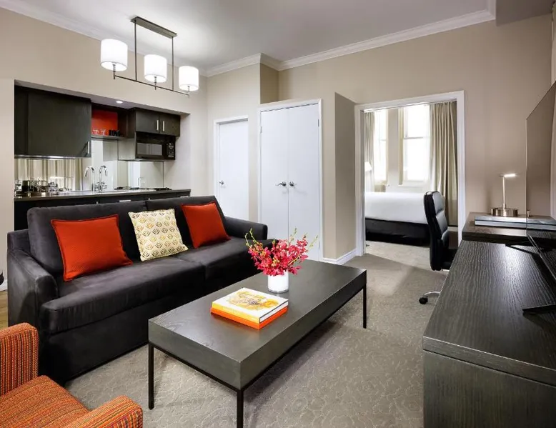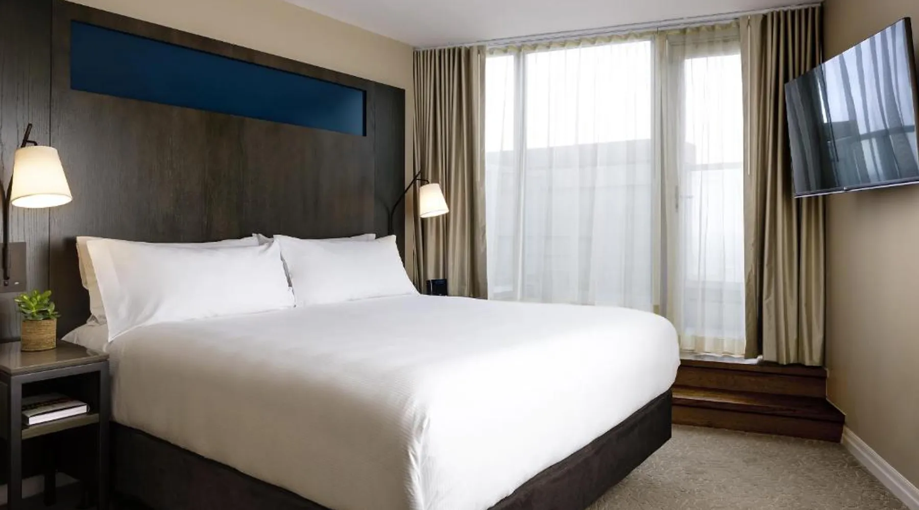 Built in 1914, this downtown Toronto hotel blends historic charm and elegance with modern conveniences. St. Lawrence Market and the Hockey Hall of Fame are less than 10 minutes' walk away. Accommodations at this all-suite hotel are furnished with a variety of thoughtful amenities, including microwaves, refrigerators and coffeemakers. They also feature separate sleeping, dining and working areas. One King West Hotel and Residence has an on-site fitness center along with a restaurant and a bar. One King West Hotel and Residence is 2461 feet from the Roy Thomson Hall. Billy Bishop Toronto City Airport is 2.4 mi away. Boasting views of Toronto or Lake Ontario, this modern suite consists of a living area and a kitchenette with a fridge, cooking hobs, a microwave oven and a dishwasher. It also features high ceilings, large windows, laundry facilities, a safety deposit box and a 47-inch Smart HDTV.