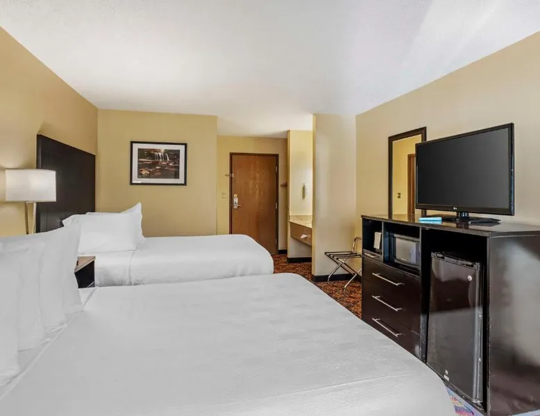 Comfortable Accommodations: Best Western Monticello in Monticello offers family rooms with air-conditioning, balconies, and private bathrooms. Each room includes a work desk, TV, and free WiFi. Relaxing Facilities: Guests can enjoy an indoor swimming pool, sauna, and steam room. Additional amenities include a lounge, games room, and outdoor seating area. Dining Experience: A continental buffet breakfast is served daily, featuring fresh pastries, pancakes, fruits, and juices. Special diet menus are available. Convenient Location: Located 37 mi from Stewart International Airport and 11 mi from Bethel Woods Center for the Arts. Free on-site private parking is provided. The spa bath is the standout feature of this suite. This air-conditioned suite is consisted of of a flat-screen TV with cable channels and a private bathroom. The unit has 2 beds.