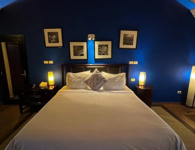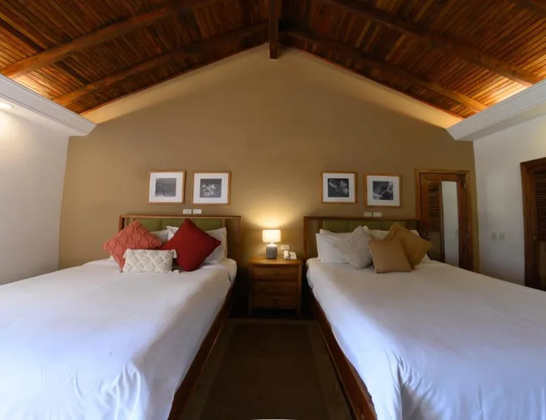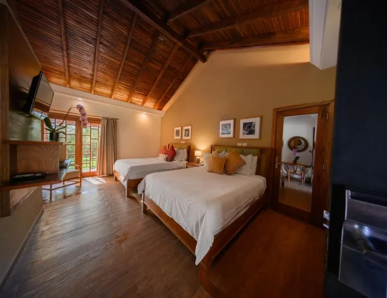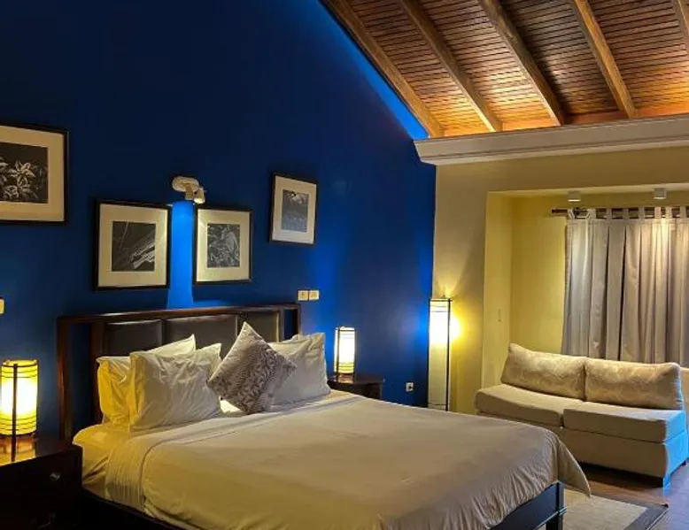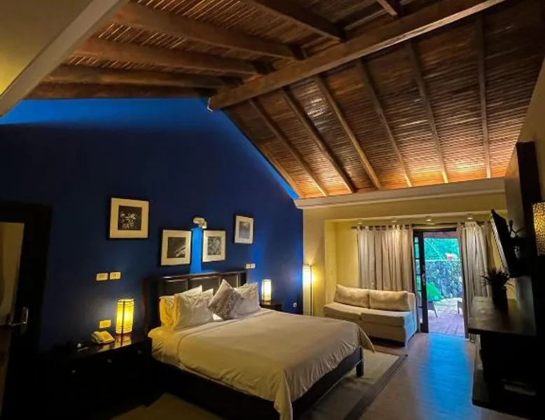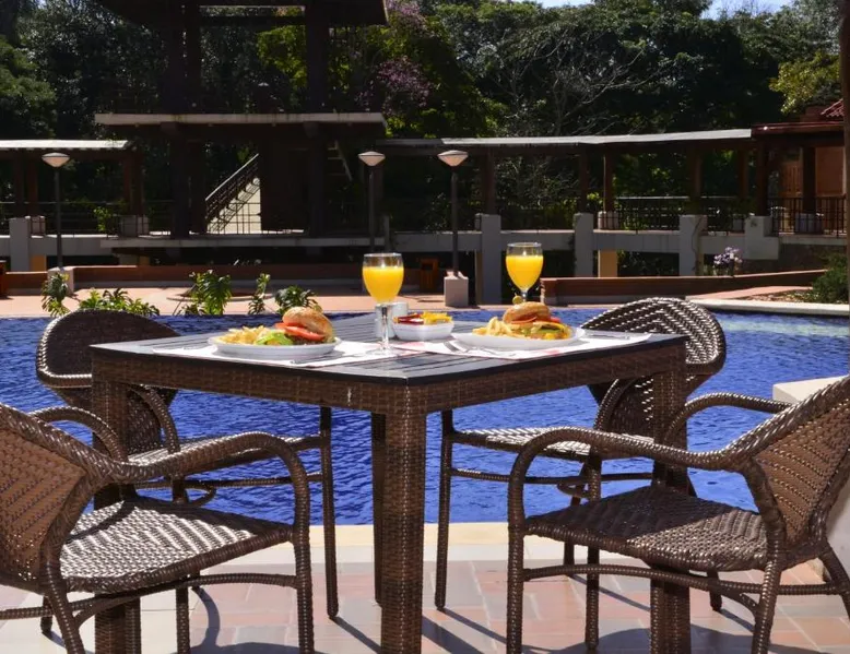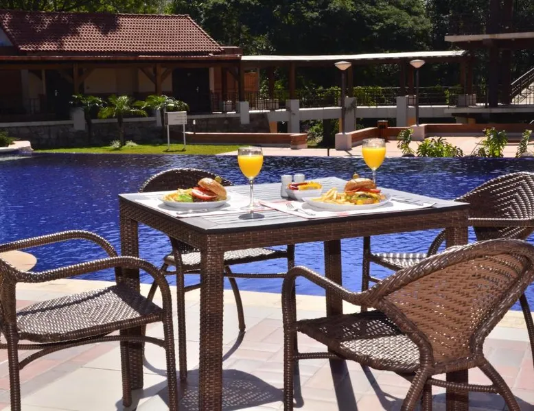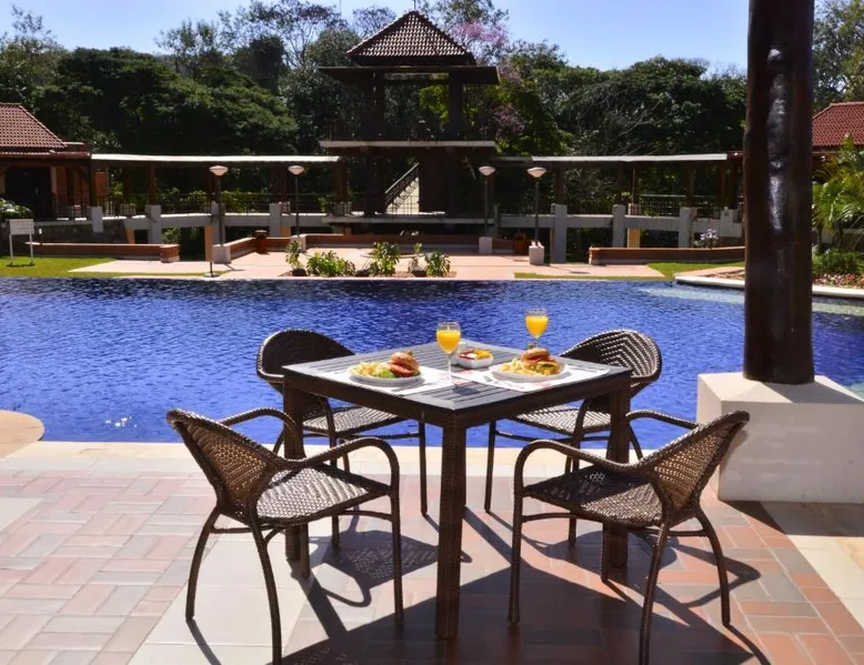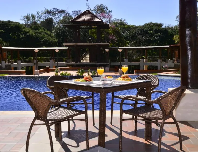Elegant Accommodations: Alta Gracia Parque Hotel in Caacupé offers a 5-star experience with spa facilities, a swimming pool with a view, sauna, fitness center, and a lush garden. Guests enjoy free WiFi, a terrace, and a restaurant serving international cuisine. Comfortable Amenities: Rooms feature air-conditioning, private bathrooms, balconies, and garden or pool views. Additional amenities include a hot tub, spa bath, sofa bed, and interconnected rooms. The hotel provides free on-site private parking, a 24-hour front desk, and concierge service. Dining and Leisure: The traditional restaurant serves lunch, while the pool bar offers a relaxing atmosphere. Guests can also enjoy the fitness center, games room, and outdoor seating areas. Activities such as cycling and picnics are available. Convenient Location: Located 32 mi from Silvio Pettirossi International Airport, the hotel is highly rated for its garden, swimming pool, and proximity to nature. This twin room features a private bathroom with free toiletries, a desk and safety deposit box. Towels and linen are included. Guests can enjoy the balcony.
