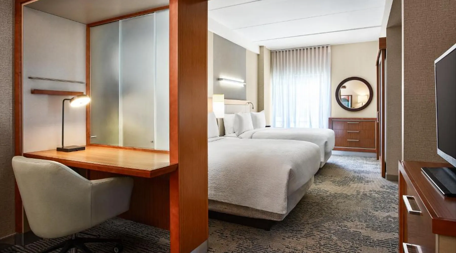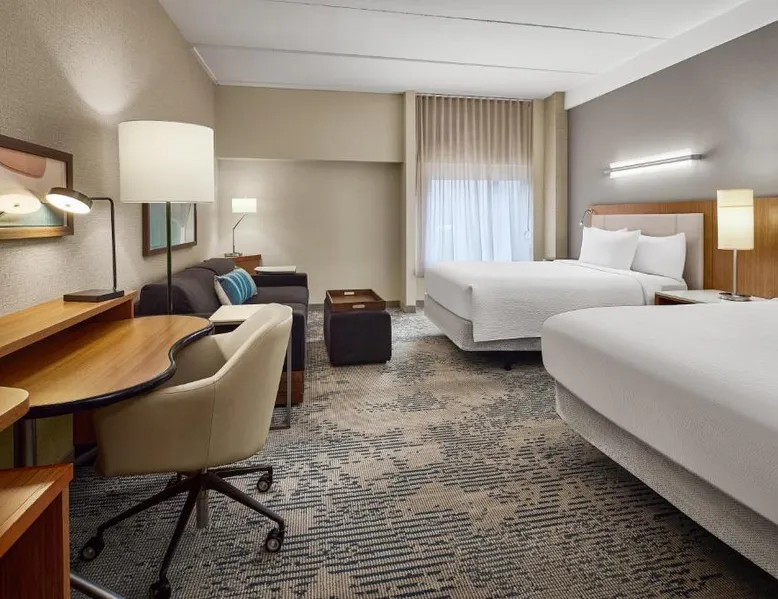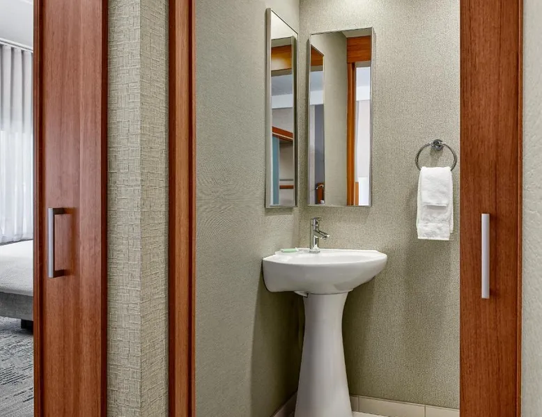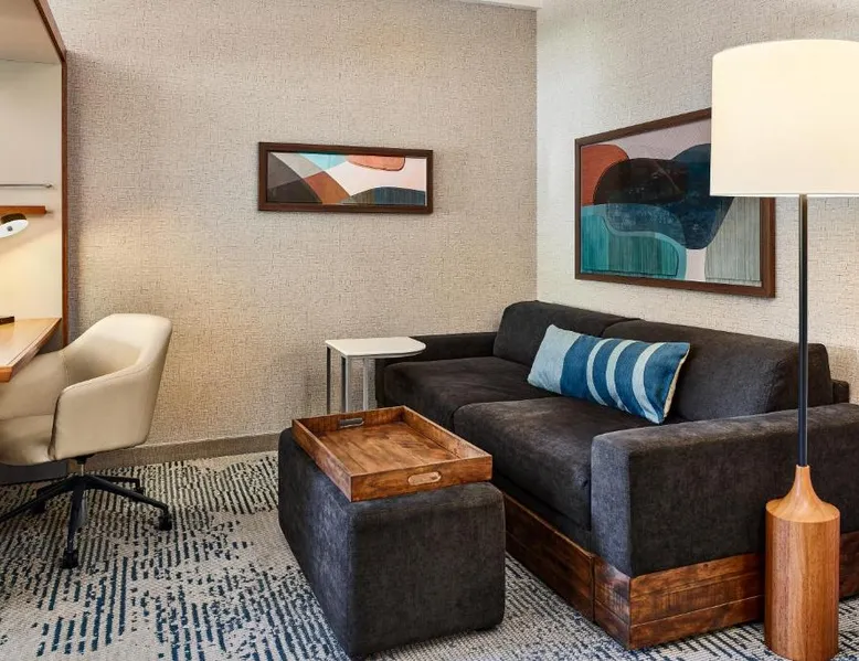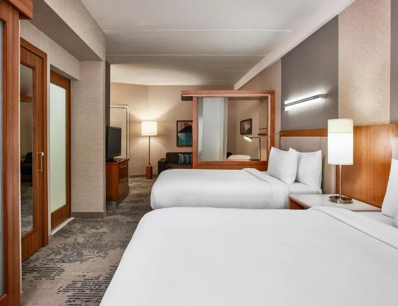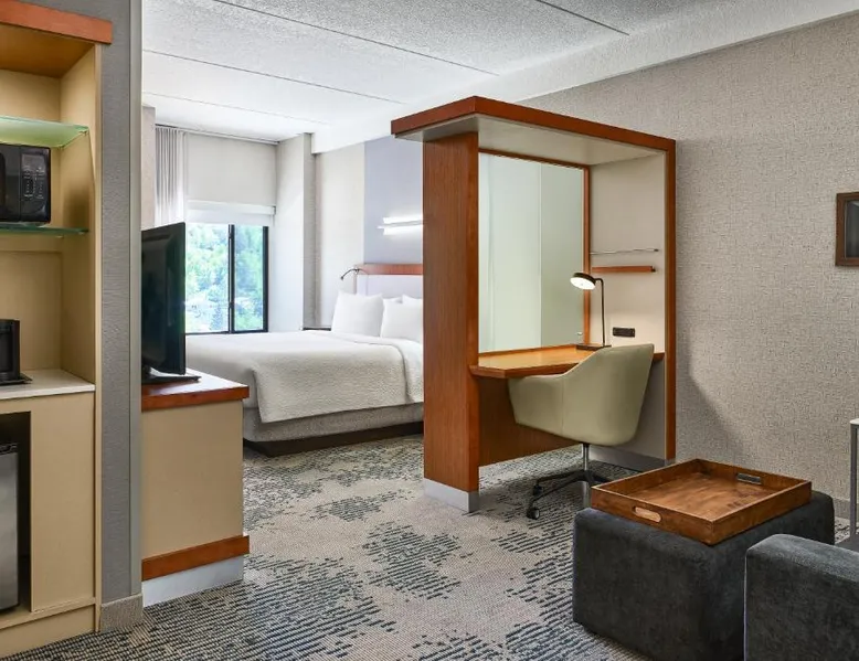 Hotel remodeled in 2025 and across the street from the Days of '76 Museum. Located adjacent to the Cadillac Jack's Casino and the Deadwood Welcome Center, SpringHill Suites by Marriott Deadwood provides a free breakfast buffet, a casino, and an onsite market. For those looking to try their luck, this hotel features 22 casino gaming tables, a casino VIP room, and 250 slot machines. This hotel features rooms with free Wi-Fi and cable TVs. A microwave, mini refrigerator and one-cup coffee-making facilities are offered in every guest room at SpringHill Suites by Marriott Deadwood. Featuring modern furnishings, each guest room also includes ironing facilities, a hairdryer, and an in-room safe. Guests can enjoy a swim in the indoor infinity pool or relax in the hot tub at Deadwood SpringHill Suites by Marriott. A fitness center is provided on the property. Guests can purchase snacks and drinks from the gift shop on site. At the 4 on-site restaurants you can enjoy breakast, lunch, dinner, and American cuisine. Rapid City and Mount Rushmore National Memorial are within 50 miles of the hotel. Boasting free Wi-Fi, a sofa bed, and a TV with cable channels, this room is equipped with tea and coffee-making facilities, a refrigerator and a microwave.