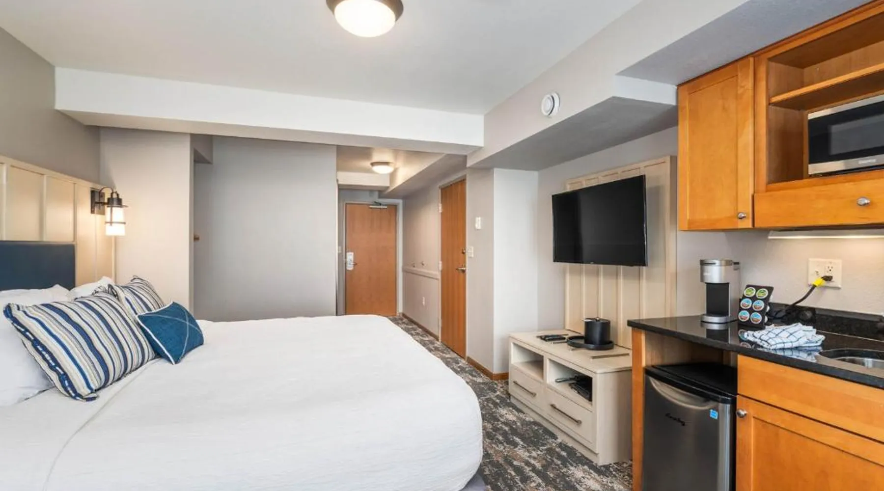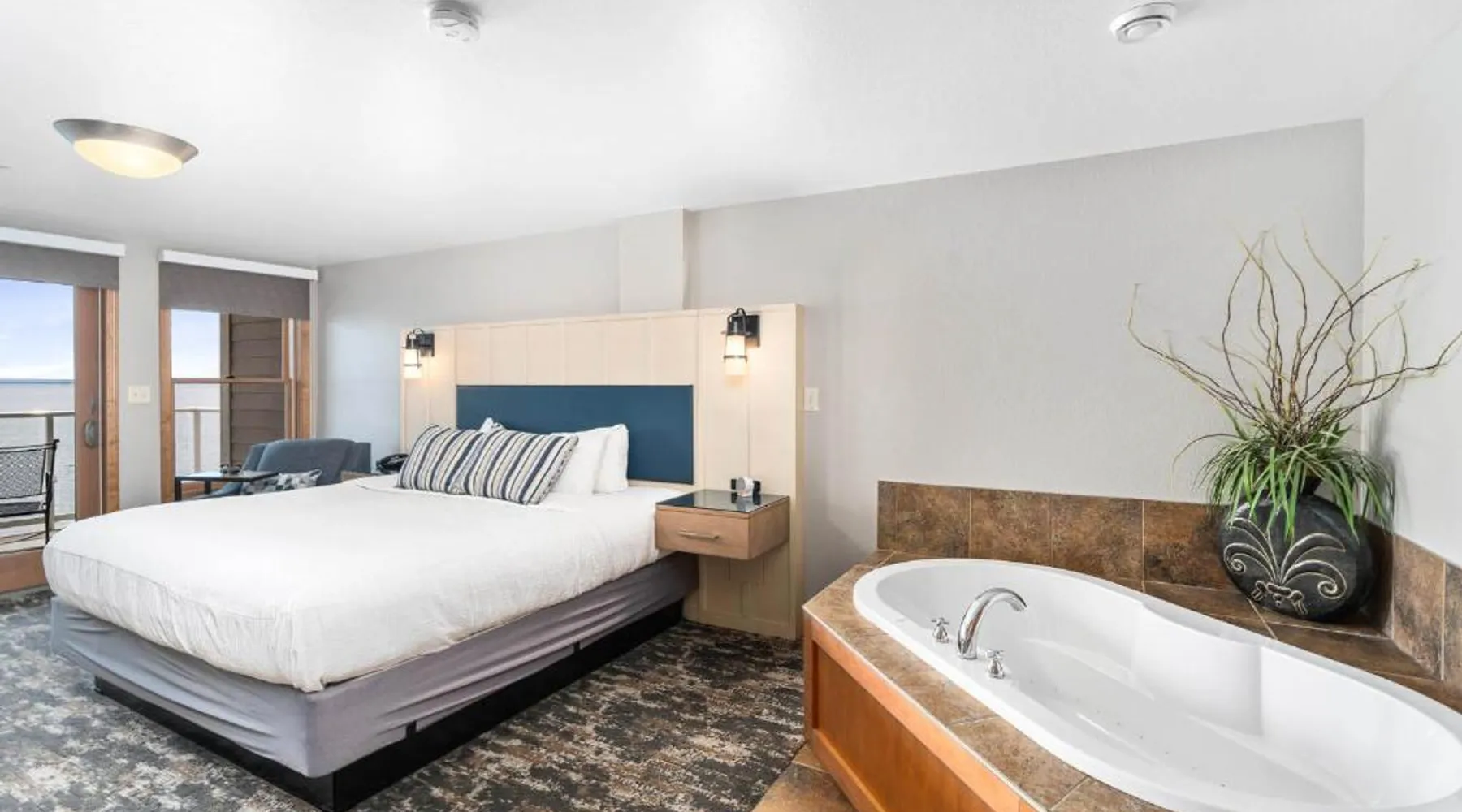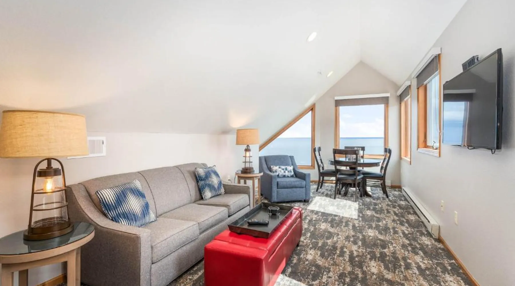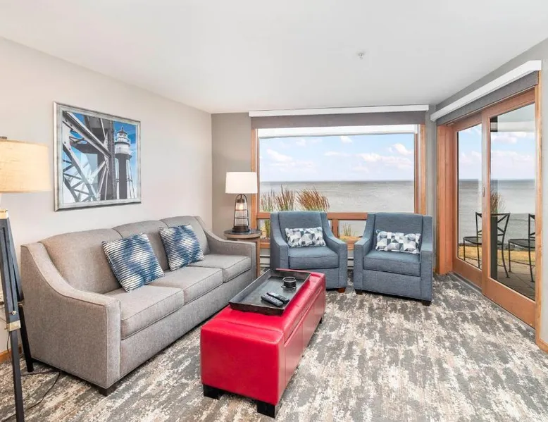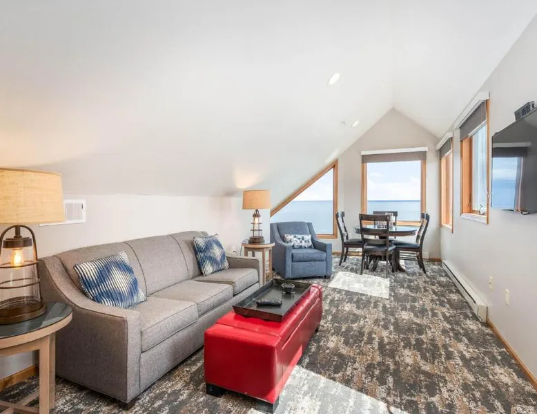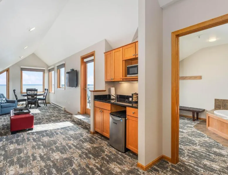 Hugging the Lakewalk in Duluth, this luxury resort with free WiFi features unobstructed views of Lake Superior and an indoor pool and hot tub. Canal Park is 7 minutes’ drive away. Self-catering accommodations feature a kitchen or kitchenette at Beacon Pointe on Lake Superior. A flat-screen cable TV, seating area, and refrigerator are provided as well. Select rooms include a spa bath, balcony, and fireplace. A fitness center, and barbecue facilities can be found on-site at the Duluth Beacon Pointe on Lake Superior. Cycling, hiking, and canoeing are offered nearby. The resort includes free WiFi access. There are nightly bonfires with unlimited S’mores are "weather permitting." Spirit Moutain, for skiing and hiking, is 9.3 mi away from the resort. Shopping on the lakefront in Central Duluth and the Great Lakes Aquarium are 2.5 mi away. This room includes a kitchenette with a microwave and refrigerator. There is a flat-screen cable TV, seating area, and a dining area. Please be advised this room does not offer a view.