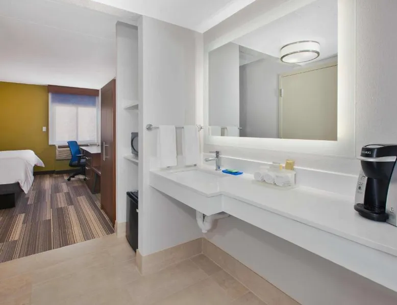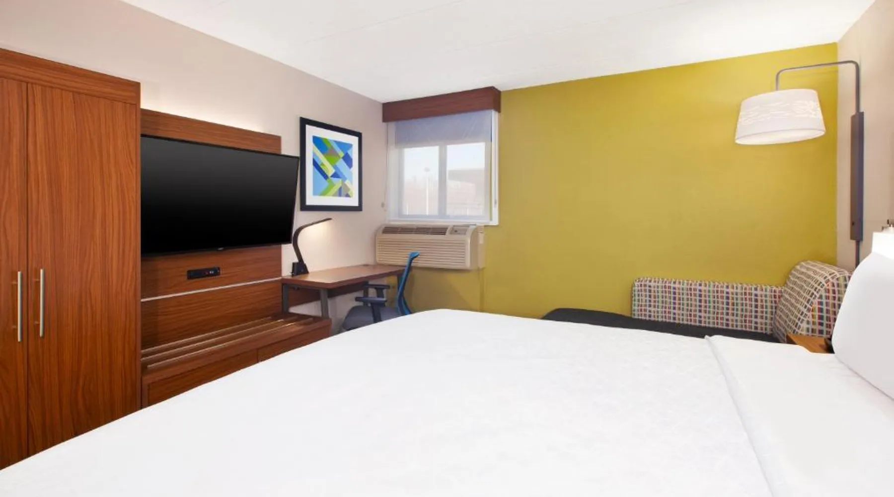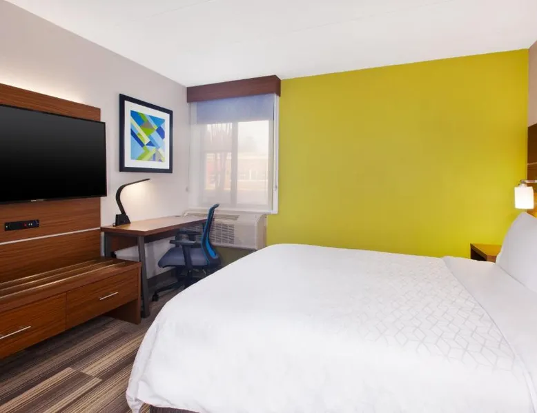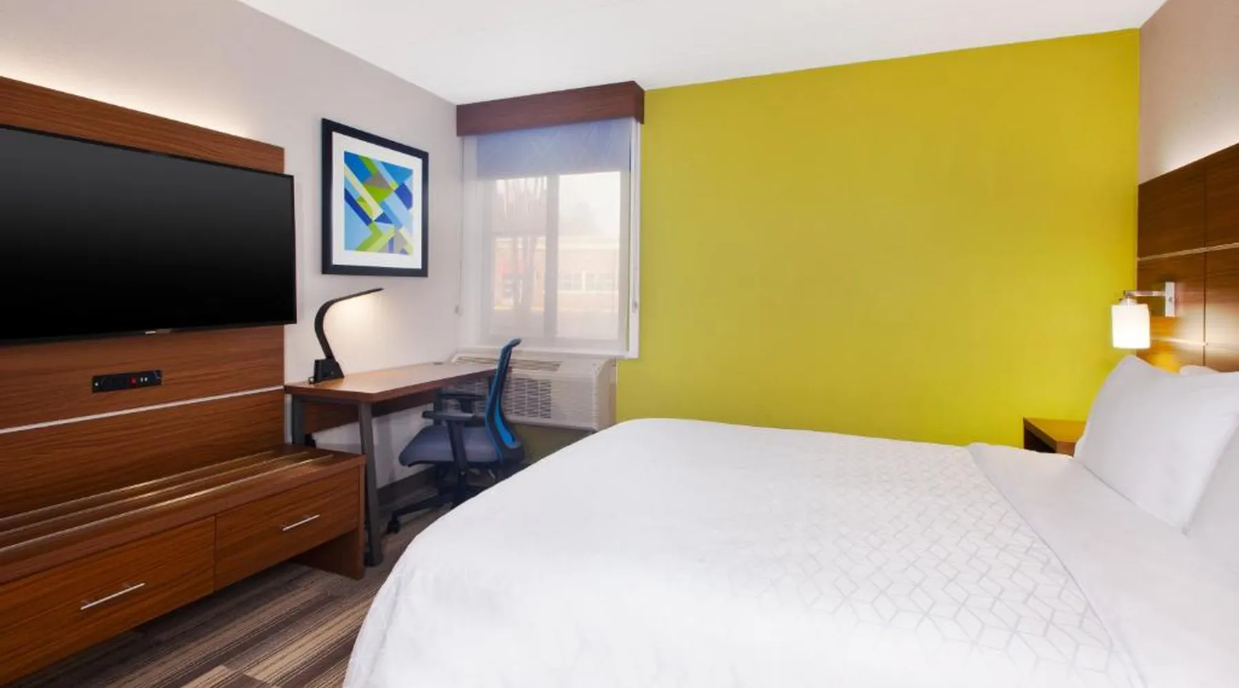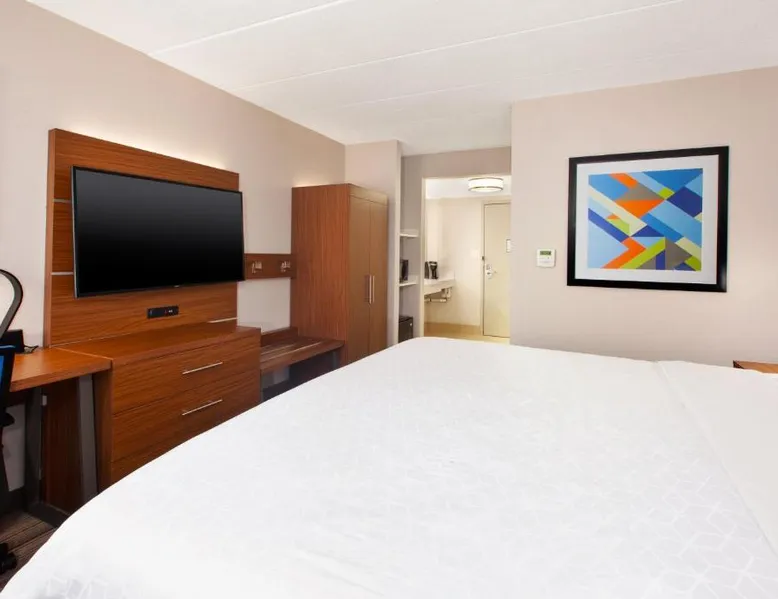 Comfortable Accommodations: Holiday Inn Express Fairfax-Arlington Boulevard in Fairfax offers family rooms with air-conditioning, private bathrooms, and free WiFi. Each room includes a work desk, TV, and free toiletries. Facilities and Services: Guests can enjoy a fitness center, lounge, minimarket, and 24-hour front desk. Additional amenities include a business area, coffee shop, and free on-site parking. Dining Options: A variety of breakfast options are available, including continental, American, buffet, and gluten-free. Breakfast includes warm dishes, fresh pastries, pancakes, cheese, fruits, and juice. Location and Attractions: Located 12 mi from Washington Dulles International Airport, the hotel is near attractions such as Air Force Memorial (13 mi) and Lincoln Memorial (17 mi). Guests appreciate the room cleanliness and attentive staff. Room features a 32-inch flat-screen TV, a small fridge and tea/coffee-making facilities.