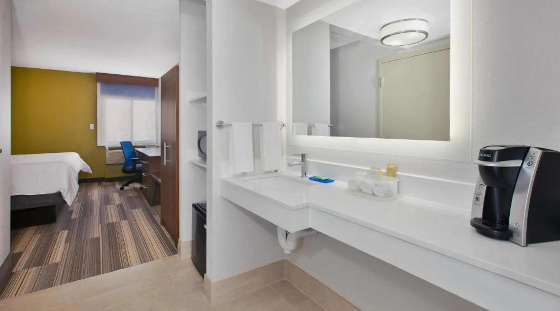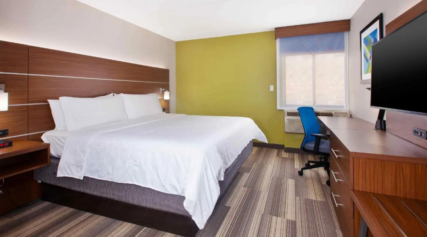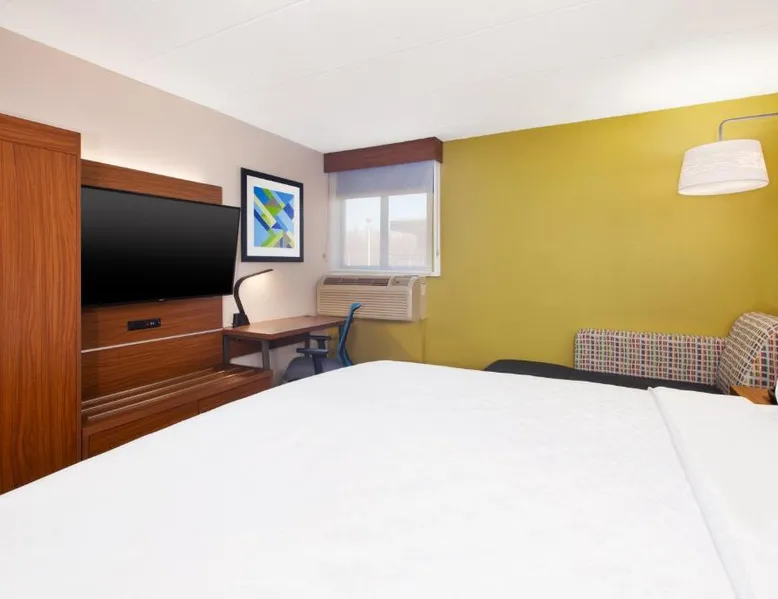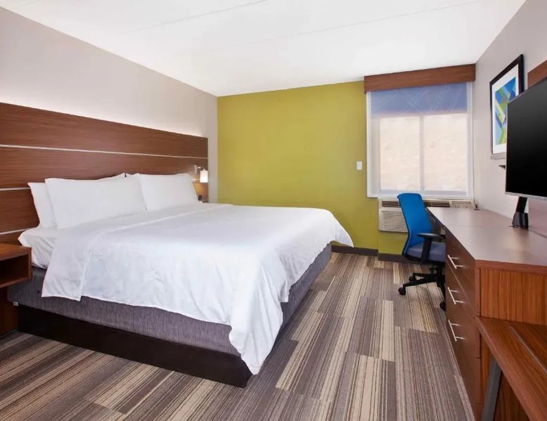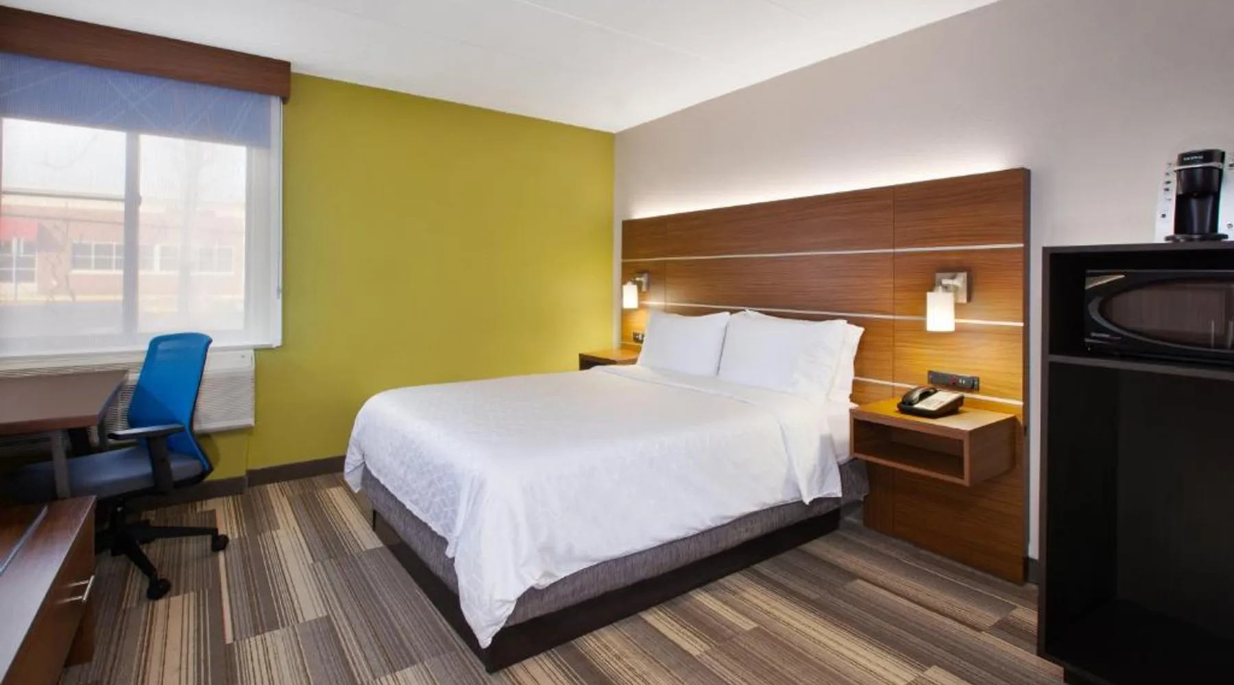Comfortable Accommodations: Holiday Inn Express Fairfax-Arlington Boulevard in Fairfax offers family rooms with air-conditioning, private bathrooms, and free WiFi. Each room includes a work desk, TV, and free toiletries. Facilities and Services: Guests can enjoy a fitness center, lounge, minimarket, and 24-hour front desk. Additional amenities include a business area, coffee shop, and free on-site parking. Dining Options: A variety of breakfast options are available, including continental, American, buffet, and gluten-free. Breakfast includes warm dishes, fresh pastries, pancakes, cheese, fruits, and juice. Location and Attractions: Located 12 mi from Washington Dulles International Airport, the hotel is near attractions such as Air Force Memorial (13 mi) and Lincoln Memorial (17 mi). Guests appreciate the room cleanliness and attentive staff. Room features a 32-inch flat-screen TV, a small fridge and tea/coffee-making facilities.