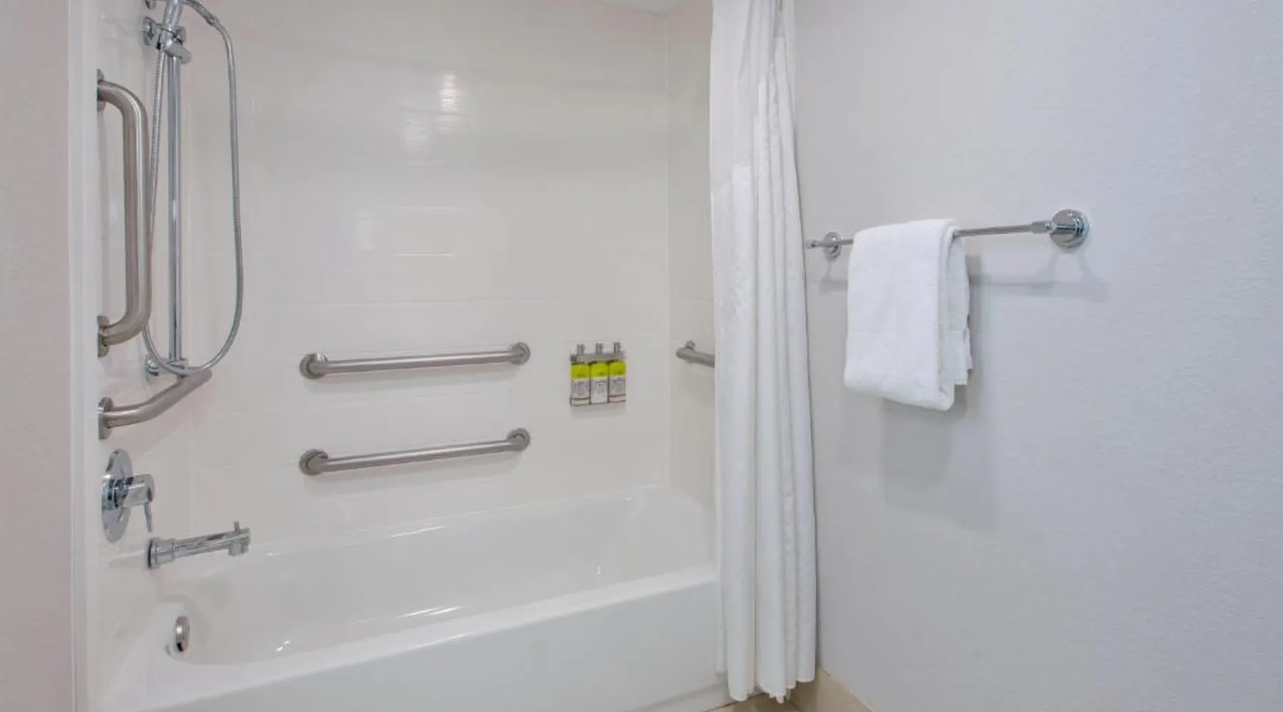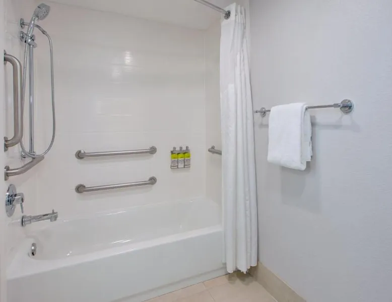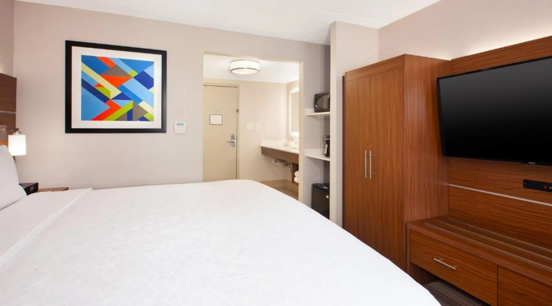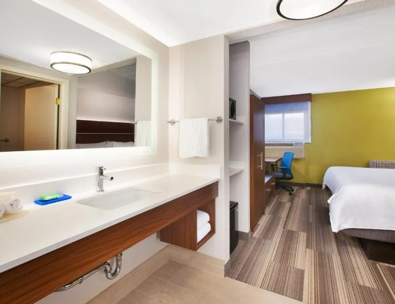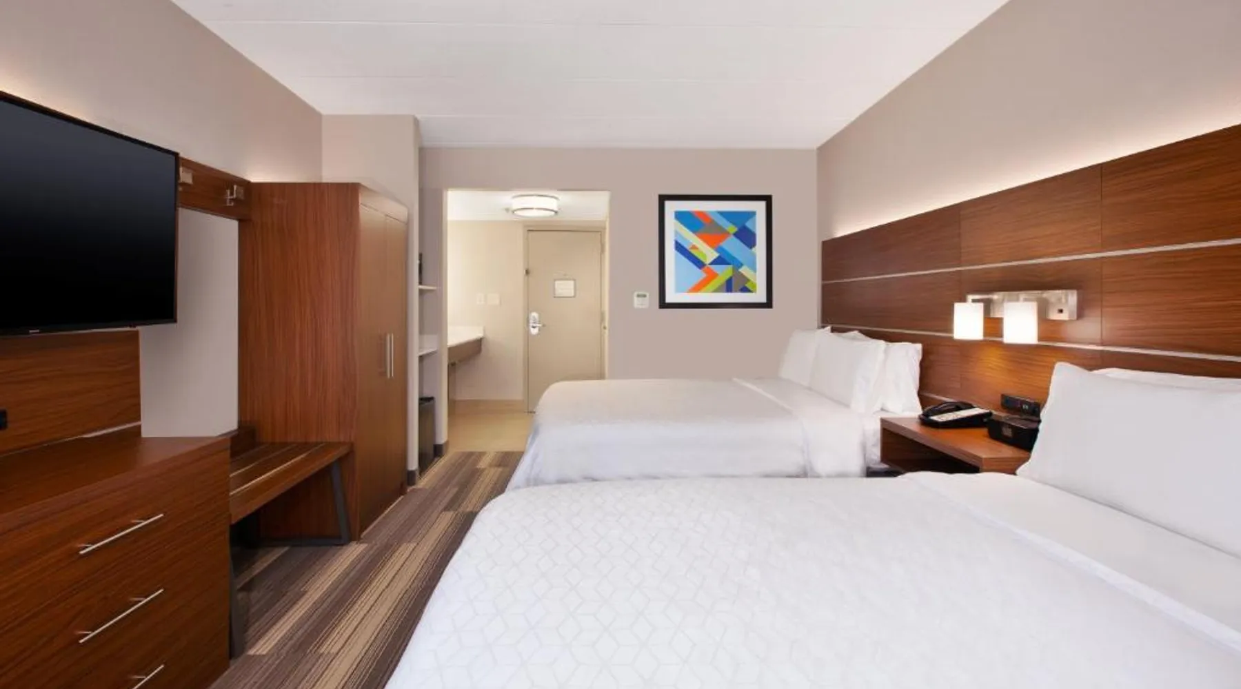 Comfortable Accommodations: Holiday Inn Express Fairfax-Arlington Boulevard in Fairfax offers family rooms with air-conditioning, private bathrooms, and free WiFi. Each room includes a work desk, TV, and free toiletries. Facilities and Services: Guests can enjoy a fitness center, lounge, minimarket, and 24-hour front desk. Additional amenities include a business area, coffee shop, and free on-site parking. Dining Options: A variety of breakfast options are available, including continental, American, buffet, and gluten-free. Breakfast includes warm dishes, fresh pastries, pancakes, cheese, fruits, and juice. Location and Attractions: Located 12 mi from Washington Dulles International Airport, the hotel is near attractions such as Air Force Memorial (13 mi) and Lincoln Memorial (17 mi). Guests appreciate the room cleanliness and attentive staff. Room features a 32-inch flat-screen TV, a small fridge and tea/coffee-making facilities.