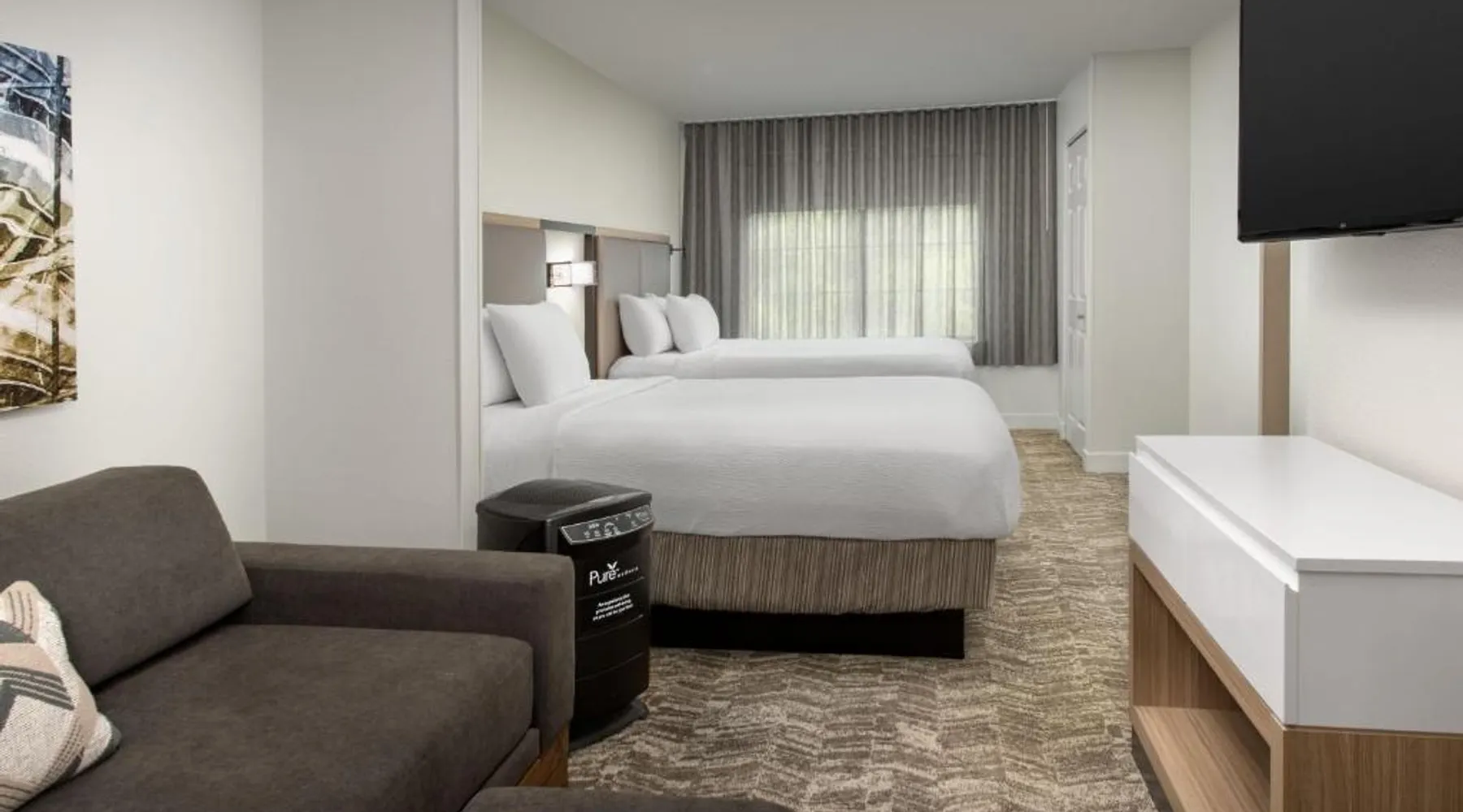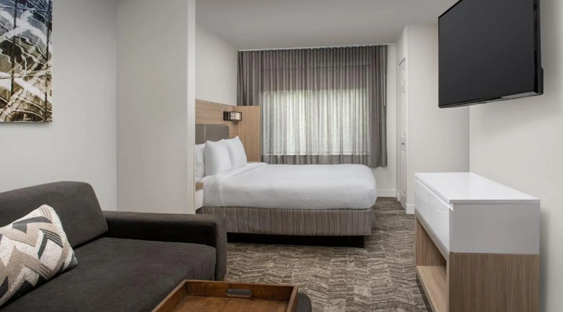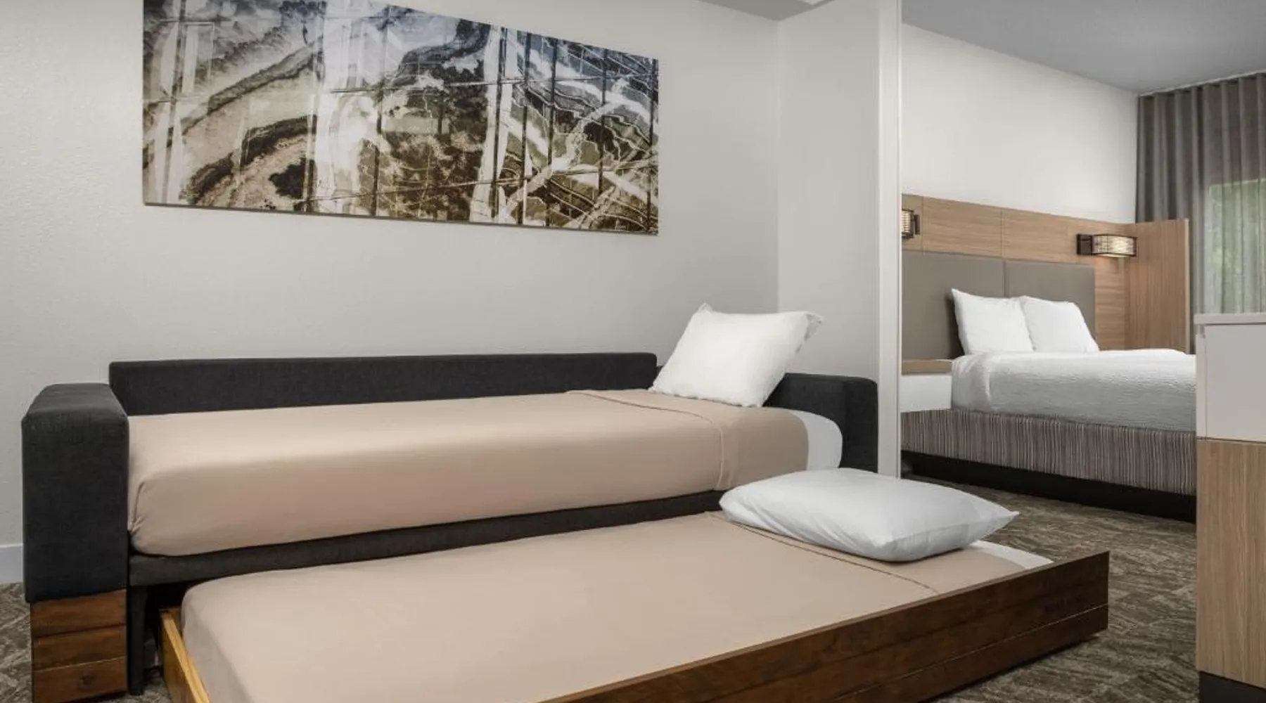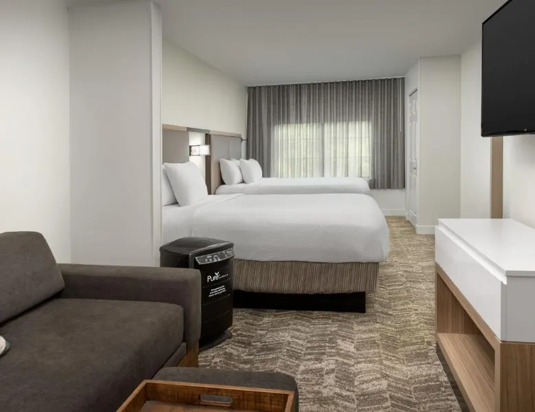 Next to the Mall of Georgia, this SpringHill Suites features an outdoor pool, parking and a 24-hour market. Rooms have a dining area, sofa bed and microwave. Wi-Fi is free. Free coffee is available in the SpringHill Suites Atlanta Buford’s lobby. Guests can relax in the seasonal outdoor pool or seasonal hot tub. All suites feature a separate dining area and an ergonomic work space. Each of Springhill Suites Mall of Georgia’s rooms also have a mini-fridge and TV with cable and HBO. Hot breakfast is available each morning. A large number of restaurants are within a one-mile drive of the SpringHill Suites by Marriott Atlanta Buford Mall of Georgia. Suite features a microwave, a small refrigerator and a seating area with a sofa bed.