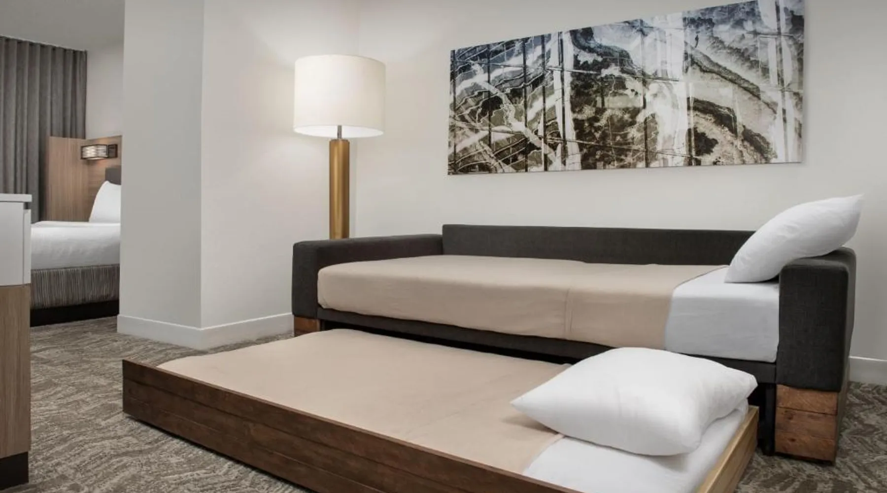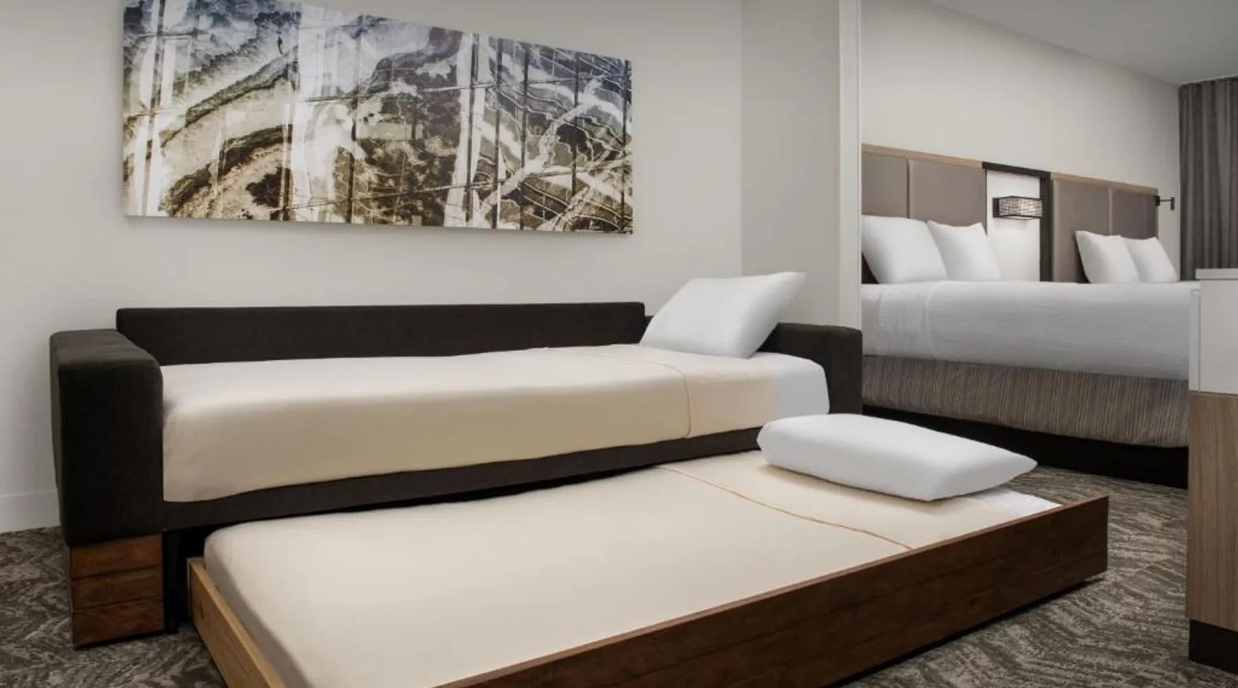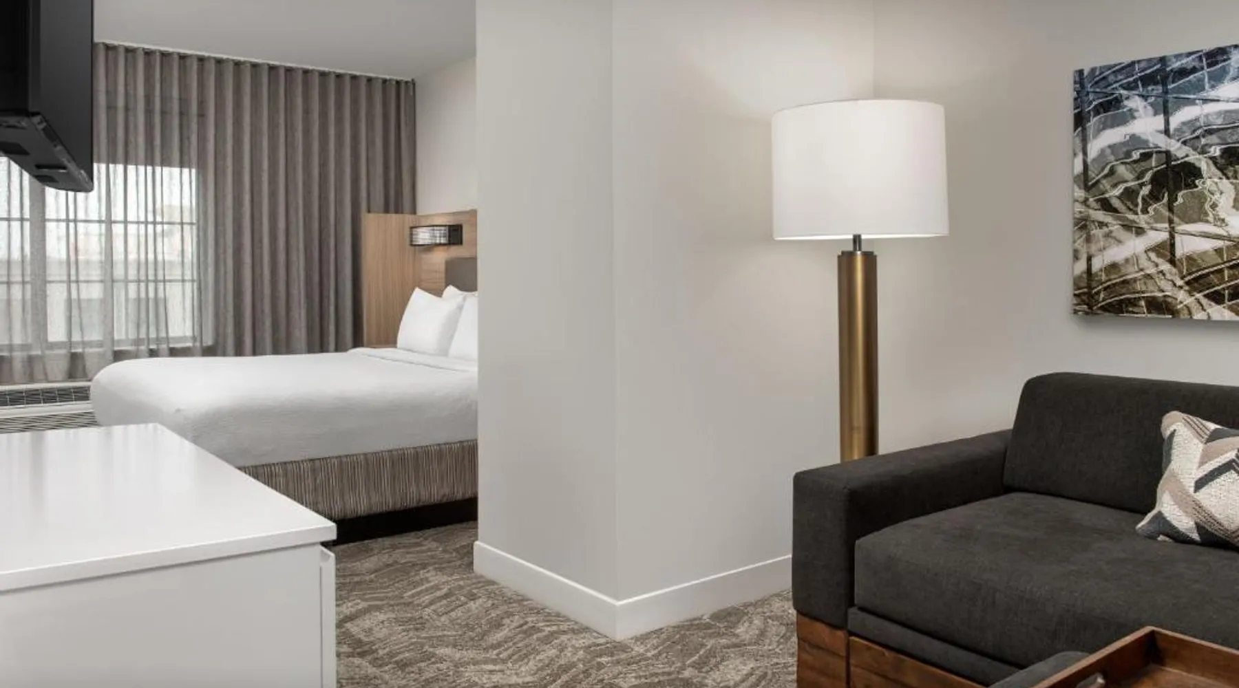 Next to the Mall of Georgia, this SpringHill Suites features an outdoor pool, parking and a 24-hour market. Rooms have a dining area, sofa bed and microwave. Wi-Fi is free. Free coffee is available in the SpringHill Suites Atlanta Buford’s lobby. Guests can relax in the seasonal outdoor pool or seasonal hot tub. All suites feature a separate dining area and an ergonomic work space. Each of Springhill Suites Mall of Georgia’s rooms also have a mini-fridge and TV with cable and HBO. Hot breakfast is available each morning. A large number of restaurants are within a one-mile drive of the SpringHill Suites by Marriott Atlanta Buford Mall of Georgia. Suite features a microwave, a small refrigerator and a seating area with a sofa bed.