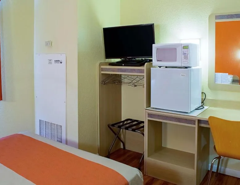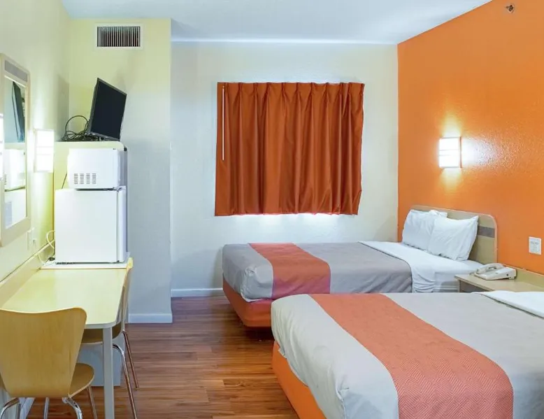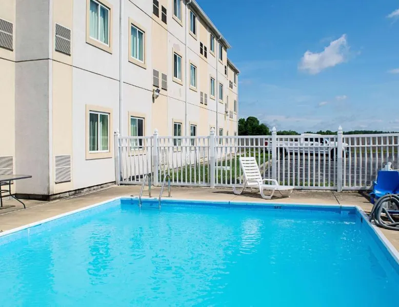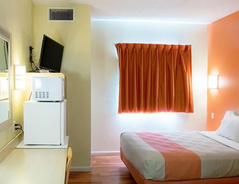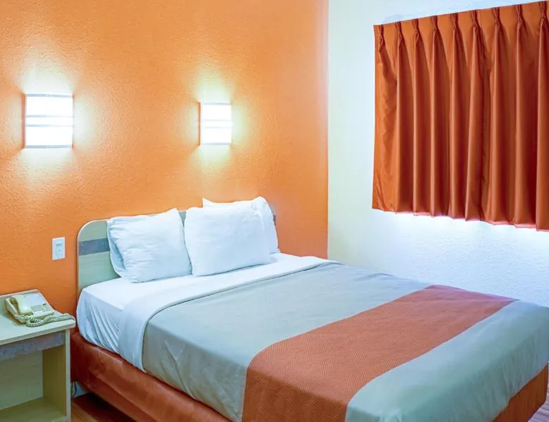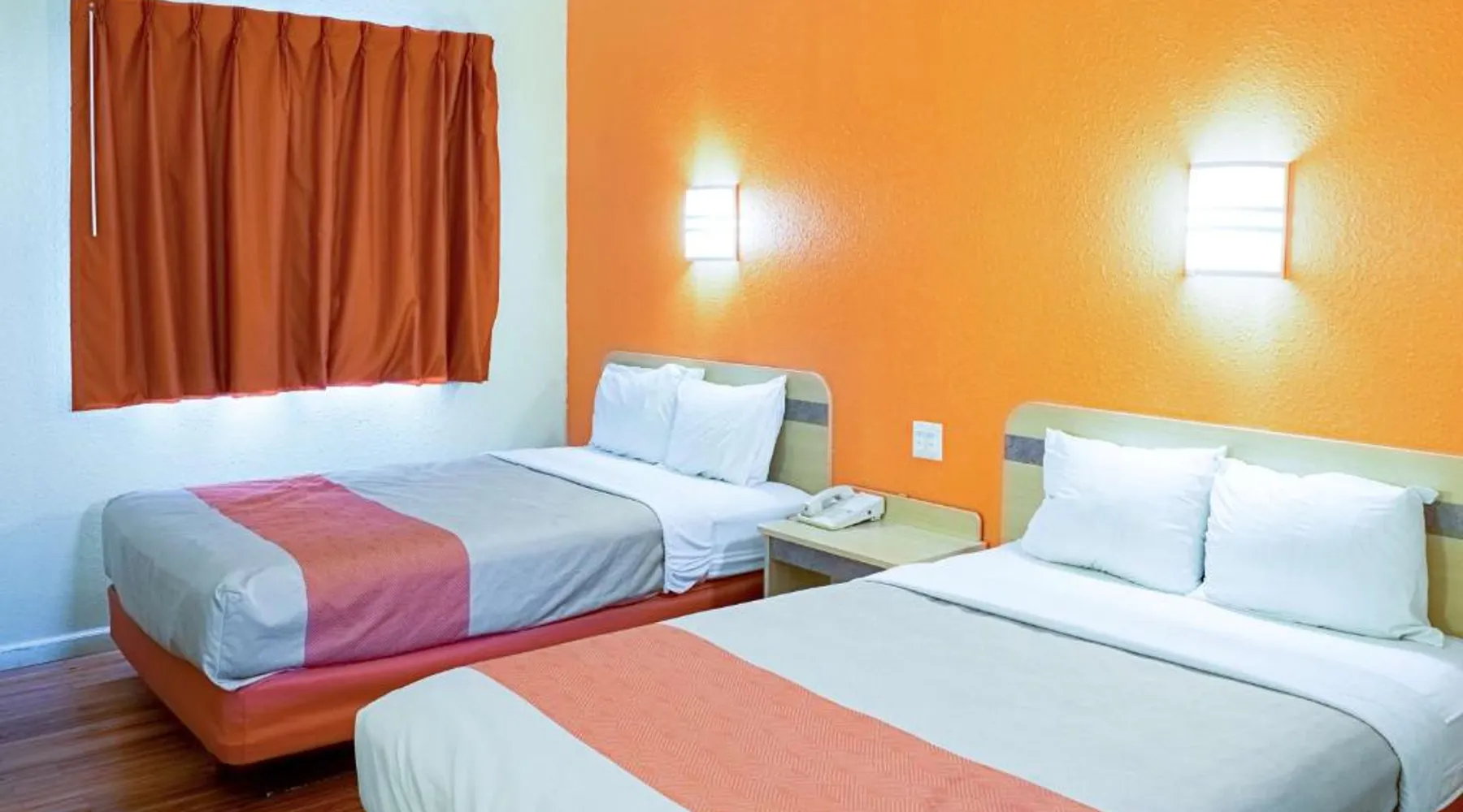 Comfortable Accommodations: Motel 6-Seymour, IN - North in Seymour offers four-star comfort with air-conditioning, private bathrooms, and televisions. Each room includes a walk-in shower and bath. Relaxing Amenities: Guests can enjoy an outdoor swimming pool, hot tub, and free WiFi. Additional facilities include a elevator and a 24-hour front desk. Convenient Location: Located 57 mi from Louisville International Airport, the hotel provides easy access to local attractions. Cable TV is included in this air-conditioned room.