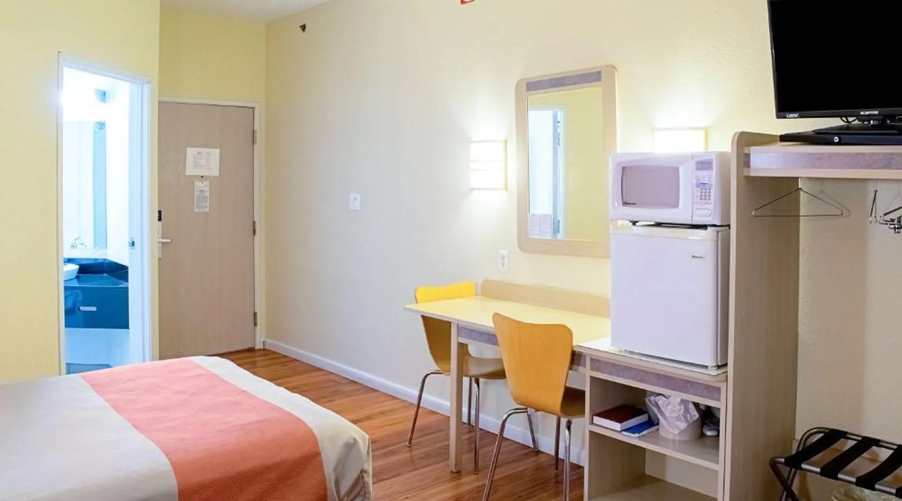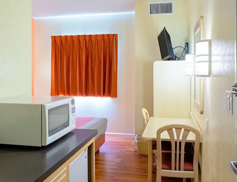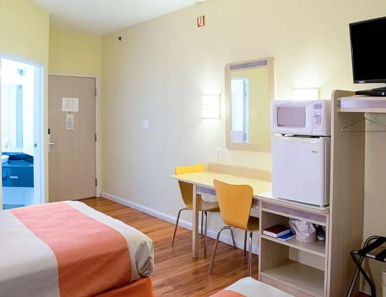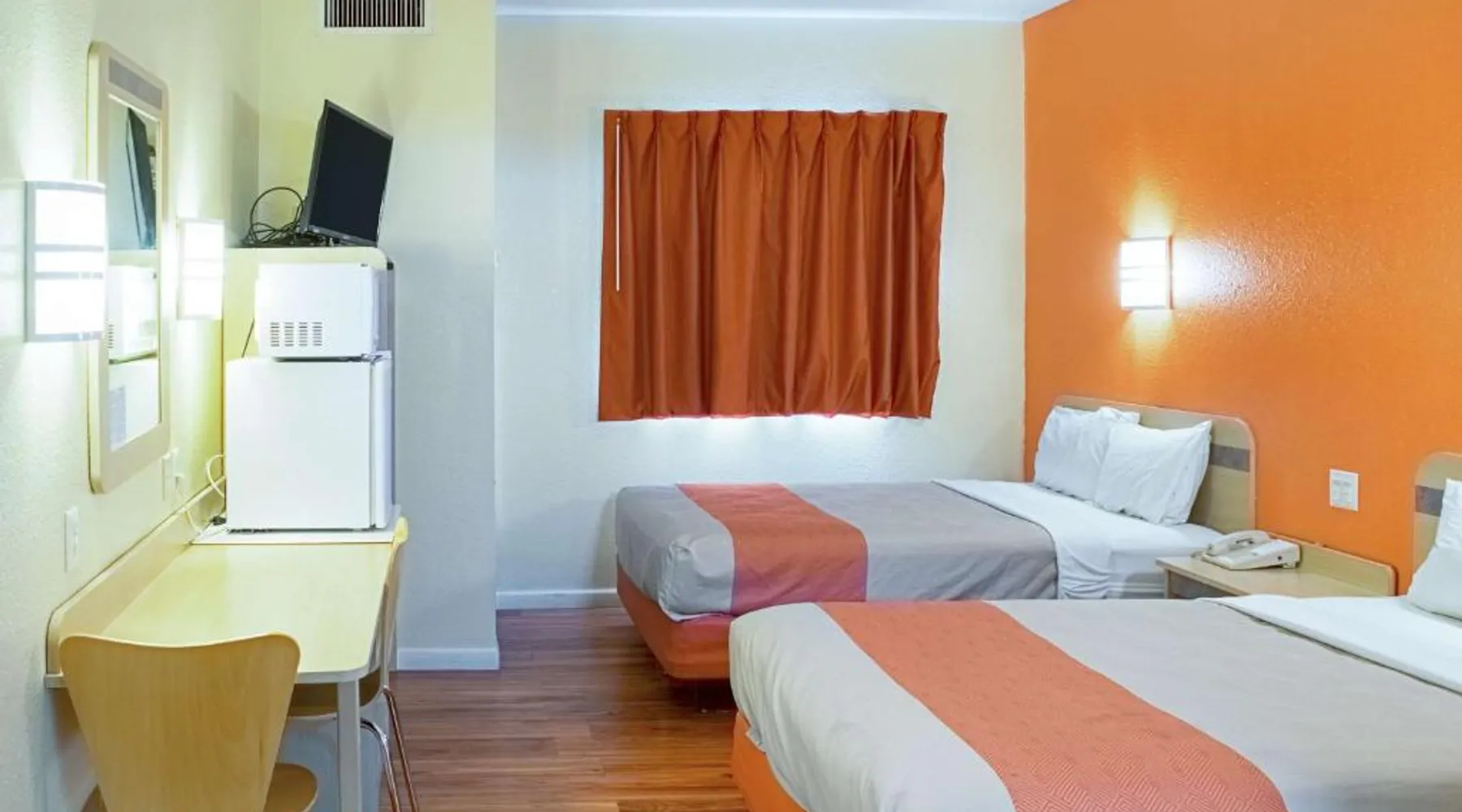 Comfortable Accommodations: Motel 6-Seymour, IN - North in Seymour offers four-star comfort with air-conditioning, private bathrooms, and televisions. Each room includes a walk-in shower and bath. Relaxing Amenities: Guests can enjoy an outdoor swimming pool, hot tub, and free WiFi. Additional facilities include a elevator and a 24-hour front desk. Convenient Location: Located 57 mi from Louisville International Airport, the hotel provides easy access to local attractions. Cable TV is included in this air-conditioned room.