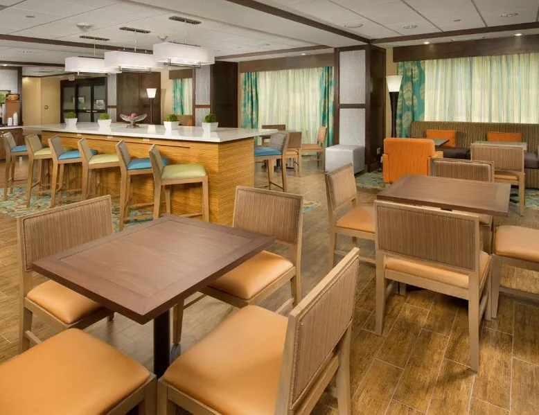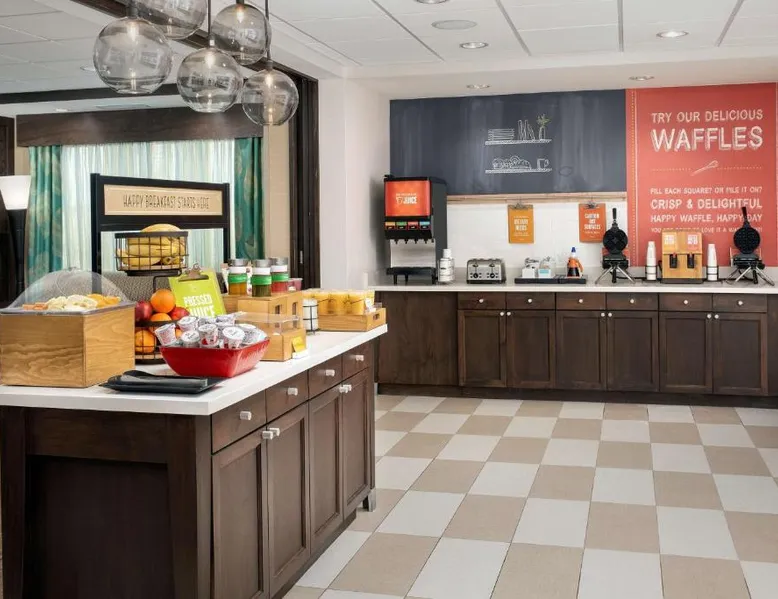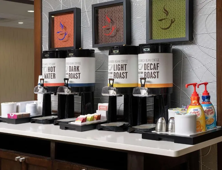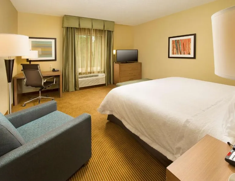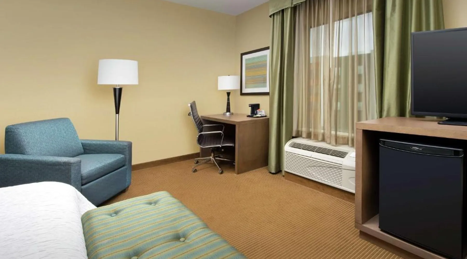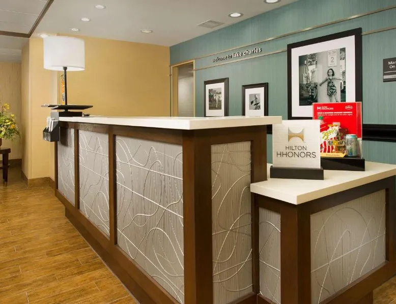 Comfortable Accommodations: Hampton Inn Lake Charles in Lake Charles offers family rooms with refrigerators, microwaves, TVs, and free WiFi. Each room includes a tea and coffee maker, hairdryer, sofa bed, and seating area. Exceptional Facilities: Guests can enjoy a fitness center, indoor swimming pool, and restaurant serving American cuisine with vegetarian and dairy-free options. Additional amenities include a minimarket, business area, and free on-site parking. Convenient Location: Located 5 mi from Lake Charles Regional Airport, the inn is near attractions such as L'Auberge Casino (1.5 mi) and Prien Lake Park (2.1 mi). Highly rated for its attentive staff and excellent service support. A flat-screen cable TV is featured in this room. There are also a microwave, refrigerator and coffee machine.