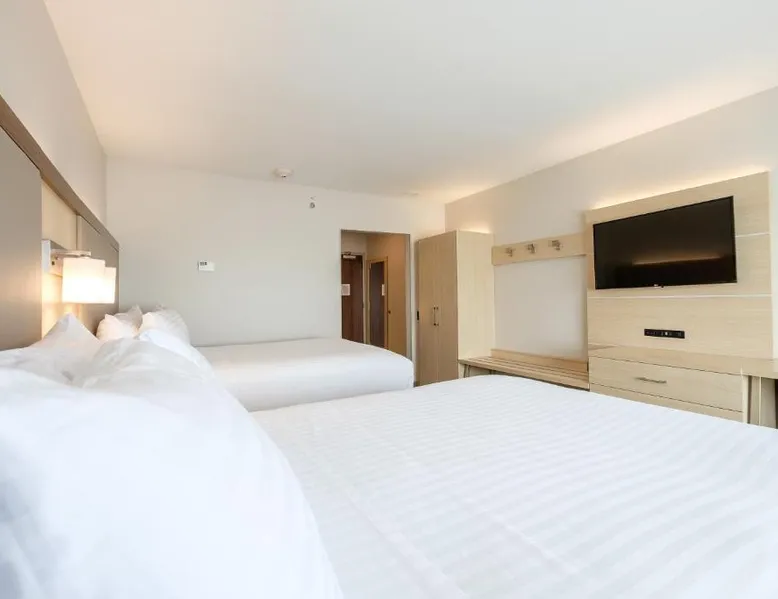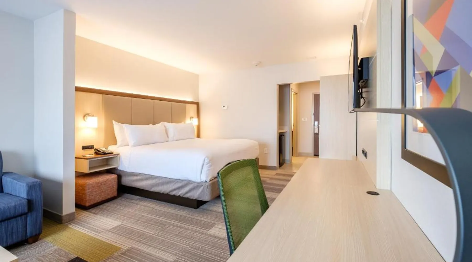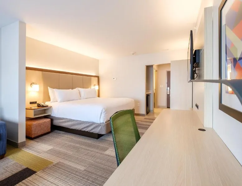 Comfortable Accommodations: Holiday Inn Express & Suites Eagan in Eagan offers rooms with air-conditioning, private bathrooms, and free WiFi. Guests enjoy amenities such as tea and coffee makers, hairdryers, and work desks. Leisure Facilities: The hotel features a sun terrace, indoor swimming pool, and fitness room. Additional facilities include a lounge, outdoor seating area, and a business area. Dining Options: A complimentary American buffet breakfast is served daily, including warm dishes, fresh pastries, pancakes, fruits, and juice. Convenient Location: Located 6.2 mi from Minneapolis-Saint Paul International Airport and Mall of America, the hotel is near attractions like U.S. Bank Stadium and Target Field. This suite features a microwave, sofa and air conditioning. A separate living area with a sofa is also featured.