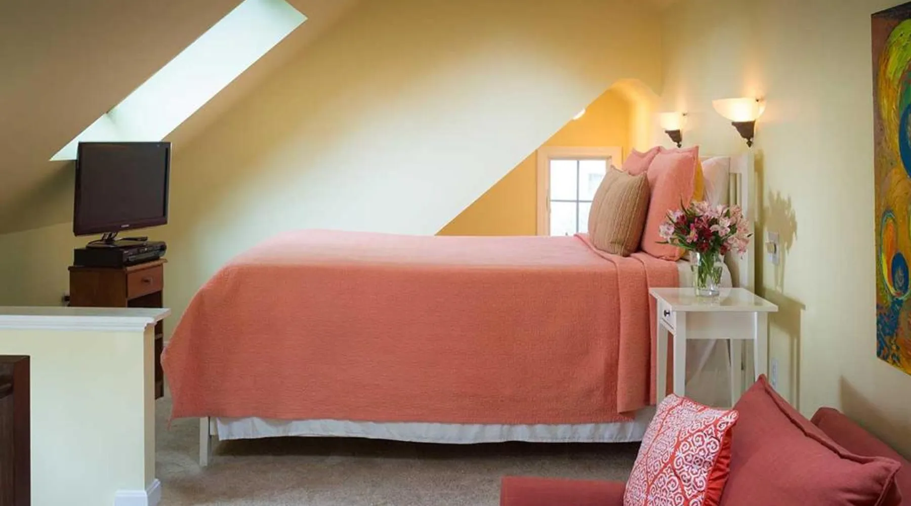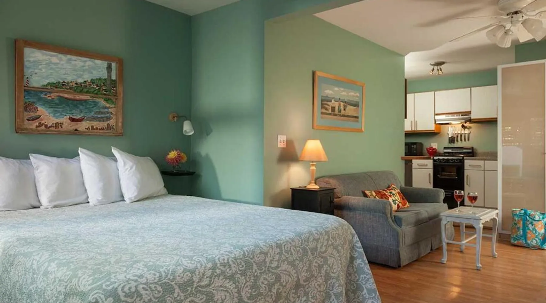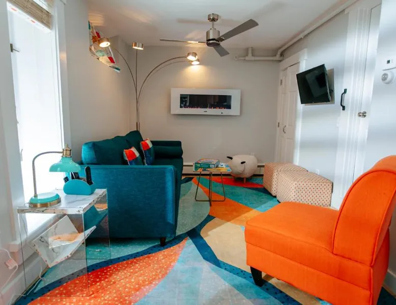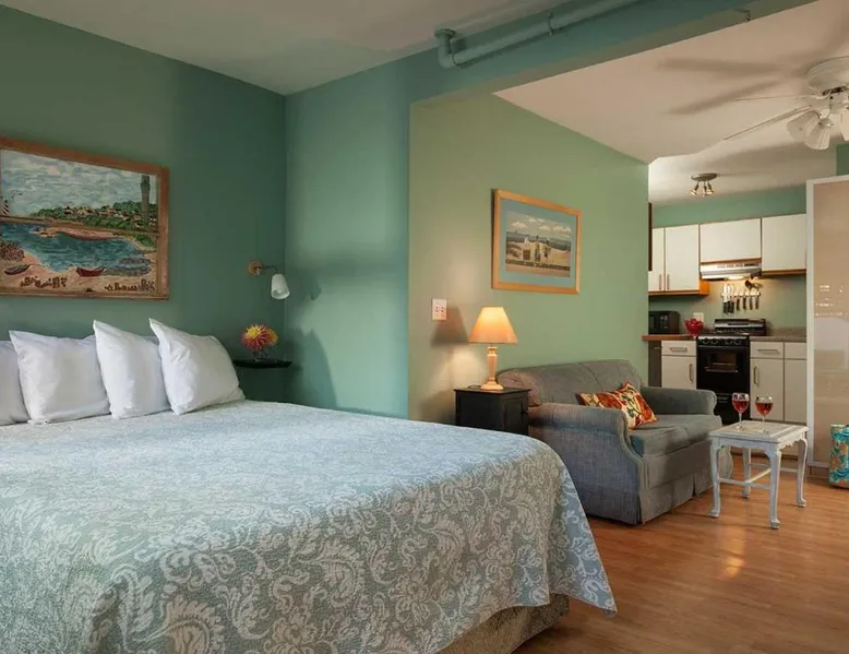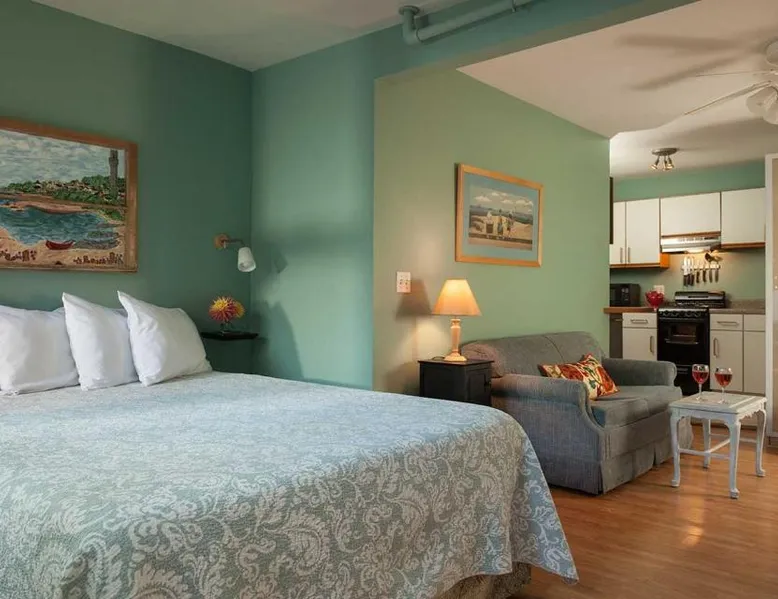 Comfortable Accommodations: The Provincetown Hotel at Gabriel's in Provincetown offers family rooms with air-conditioning, private bathrooms, and modern amenities. Each room includes a tea and coffee maker, refrigerator, and free toiletries. Exceptional Facilities: Guests enjoy a sun terrace, garden, and free WiFi. Additional facilities include an outdoor fireplace, outdoor seating area, picnic area, and bicycle parking. Private check-in and check-out, concierge service, and daily housekeeping ensure a comfortable stay. Prime Location: Located 2.5 mi from Provincetown Municipal Airport, the hotel is steps from Ryder Street Beach and close to attractions such as Pilgrim Monument and Commercial Street. Boating and hiking are available in the surrounding area. Highly rated for its convenient location and quietness. Guests will have a special experience as this double room provides a fireplace. Offering free toiletries, this double room includes a private bathroom with a walk-in shower, a bath or a shower and a hairdryer. The double room offers air conditioning, a tea and coffee maker, a seating area, heating and a flat-screen TV with cable channels. The unit offers 1 bed.