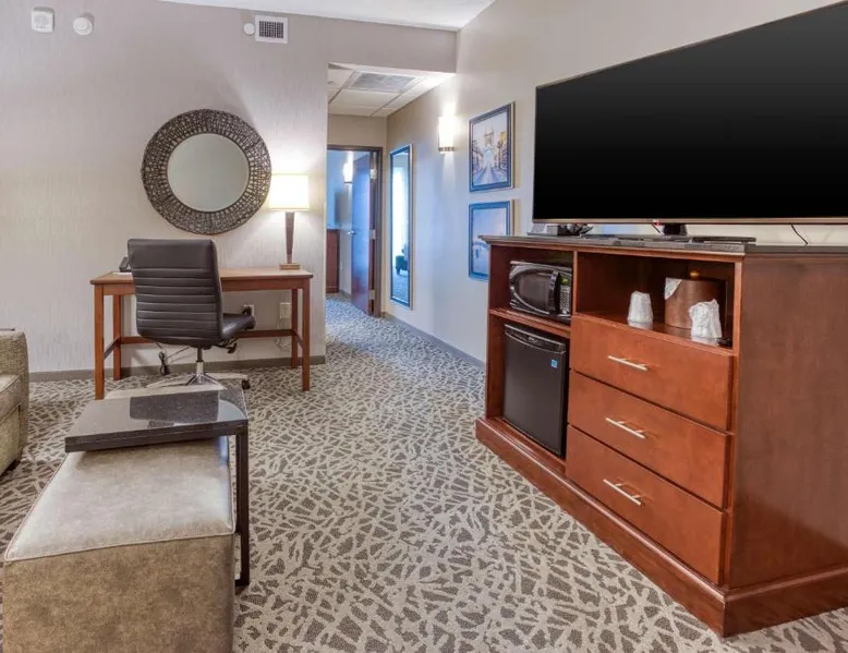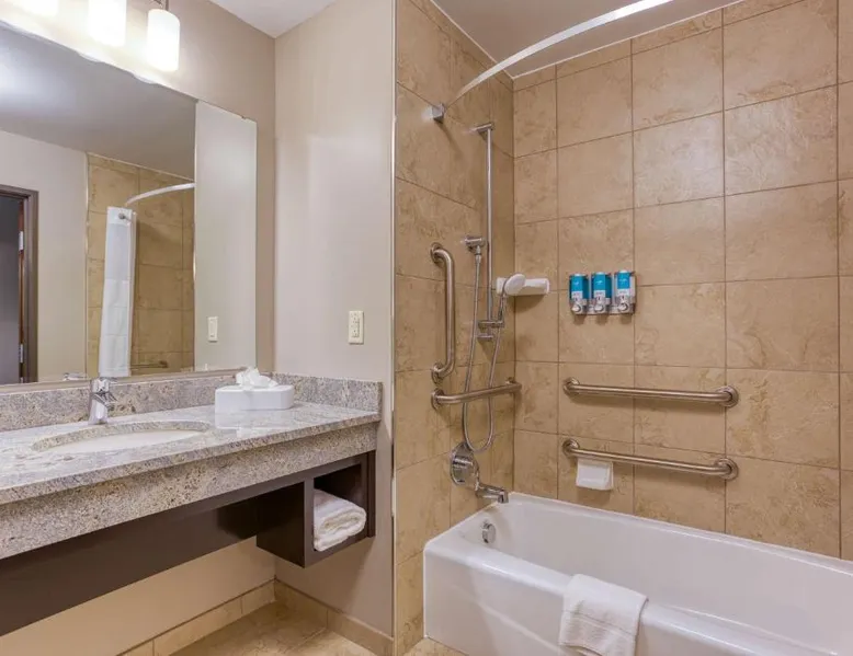 Comfortable Accommodations: Drury Inn & Suites Cincinnati Northeast Mason in Mason offers family rooms with air-conditioning, private bathrooms, and free WiFi. Each room includes a work desk, TV, and free toiletries. Exceptional Facilities: Guests can enjoy an indoor swimming pool, fitness center, and hot tub. Additional amenities include a fitness room, elevator, 24-hour front desk, housekeeping service, and a business area. Delicious Breakfast: A buffet breakfast is provided each morning, highly praised by guests for its quality and variety. Prime Location: Located 5 mi from Kings Island and 14 mi from Cincinnati Observatory Center, the hotel is near attractions such as Cincinnati Zoo and Botanical Garden and Great American Ball Park. This air-conditioned quadruple room is consisted of of a flat-screen TV with cable channels and a private bathroom. The unit has 2 beds.
