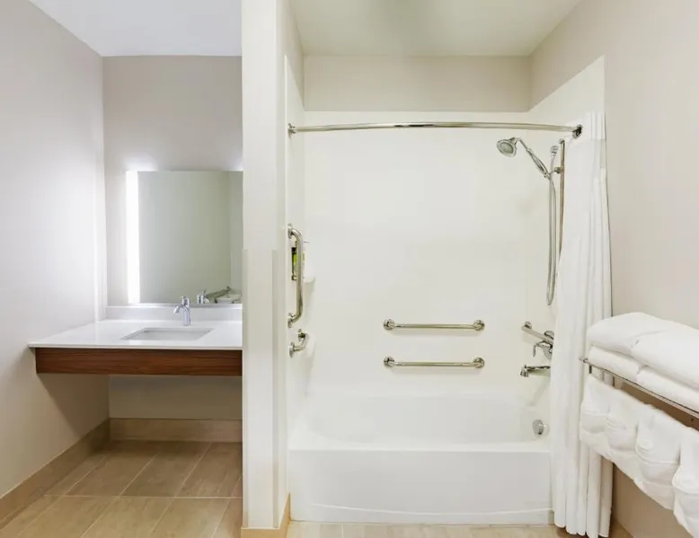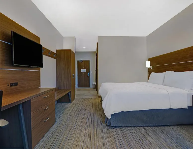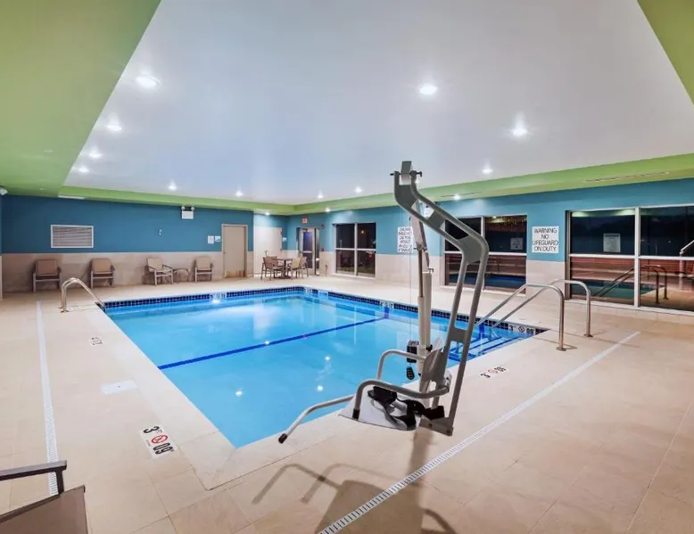 Comfortable Accommodations: Holiday Inn Express & Suites - Lenexa - Overland Park Area by IHG in Lenexa offers rooms with private bathrooms, air-conditioning, and free WiFi. Each room includes a tea and coffee maker, hairdryer, and free toiletries. Facilities and Services: Guests can enjoy a fitness center, indoor swimming pool, and a lounge. Additional amenities include a minimarket, business area, and express check-in and check-out services. The property provides a 24-hour front desk, housekeeping, and luggage storage. Dining Options: A continental buffet breakfast is served daily, featuring fresh pastries, pancakes, fruits, and juice. Outdoor seating is available for guests to enjoy their meals. Location and Attractions: Located 29 mi from Kansas City International Airport, the hotel is near attractions such as the National World War I Museum at Liberty Memorial (14 mi) and Union Station Kansas City (14 mi). Guests appreciate the room cleanliness, breakfast provided by the property, and attentive staff. This double room has air conditioning and satellite TV.