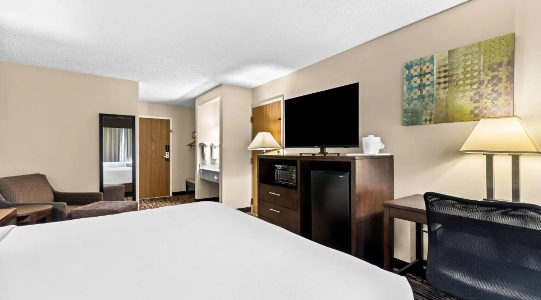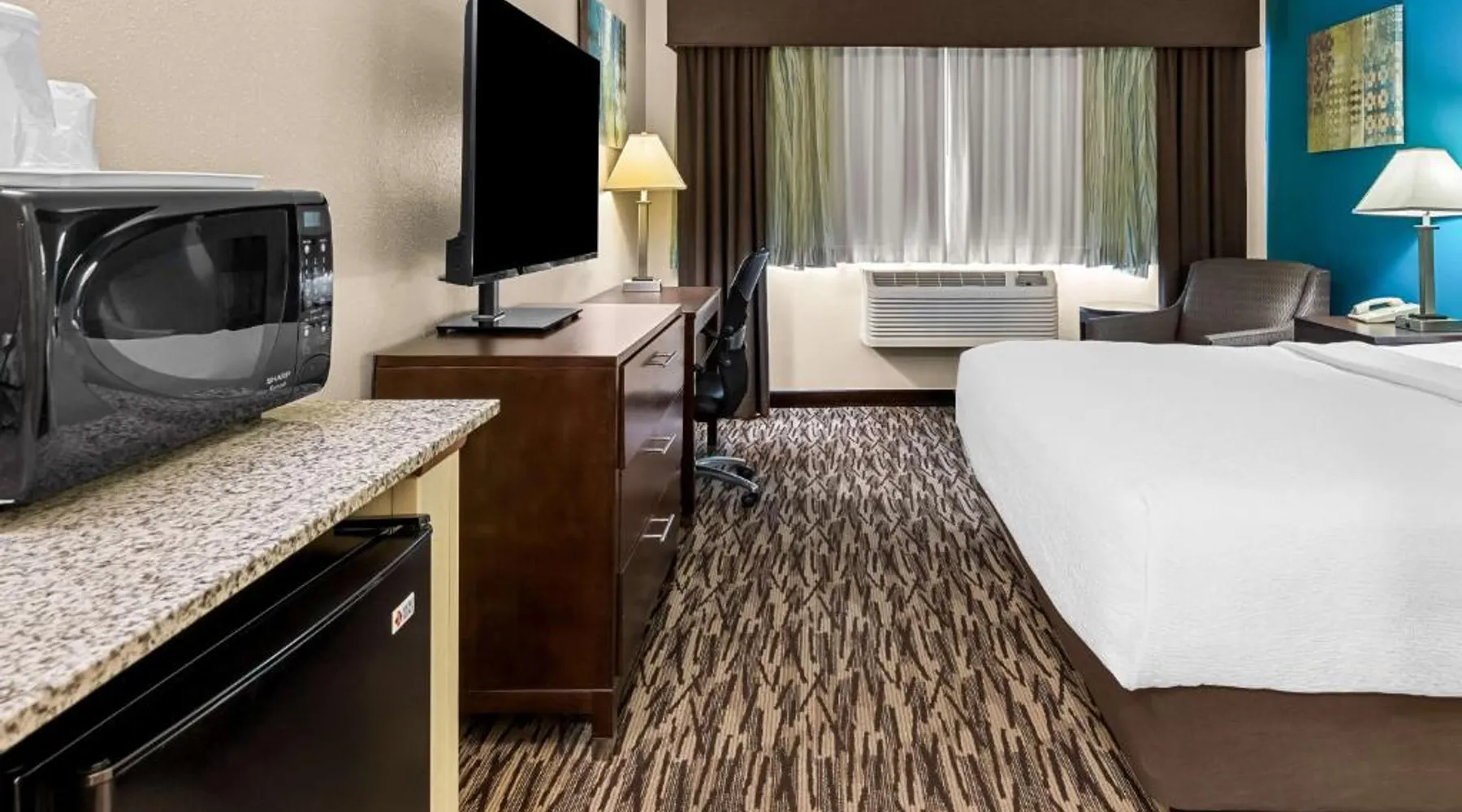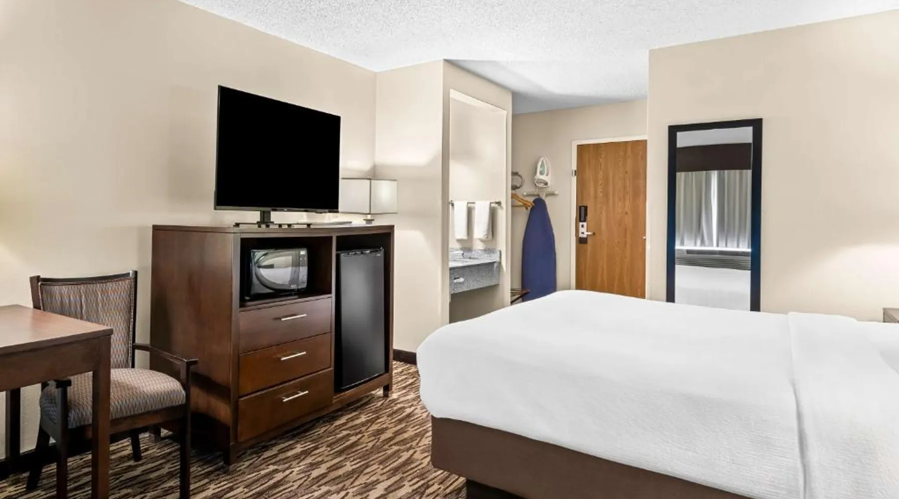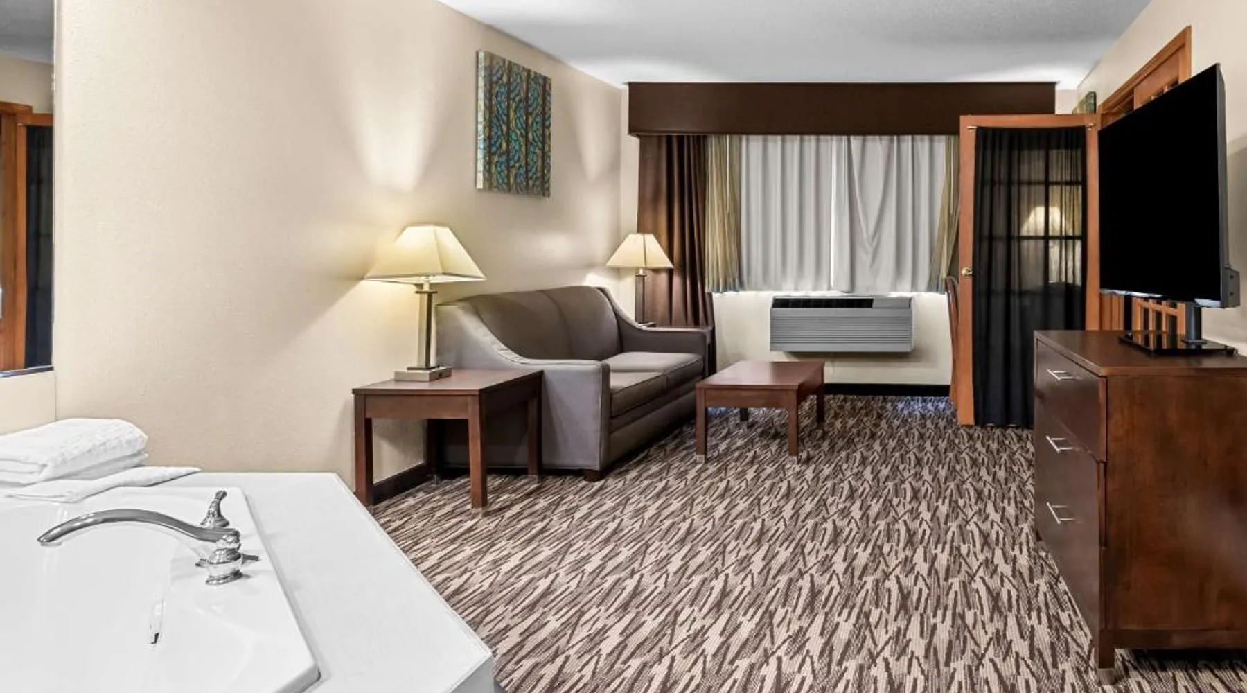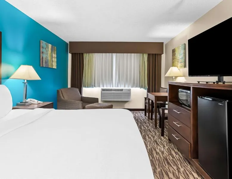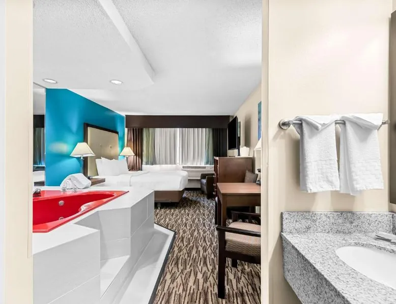 Located 12 miles from Wisconsin Dells, this Baraboo hotel features an indoor pool and hot tub. Free Wi-Fi is available throughout the property. Each room includes cable TV with movie channels. A refrigerator is provided in each room at Best Western Baraboo Inn. For convenience, tea and coffee-making facilities and a private bathroom are included. Microwaves are available upon request. Continental breakfast is served daily at Baraboo Best Western Inn. A fitness center is on-site. Free parking is available. This hotel is 7 miles from Interstate 90. Devil’s Lake State Park is a 10-minute drive away. Circus World Museum is 3 miles from this hotel. The spacious double room features air conditioning, a tea and coffee maker, a carpeted floor, heating, as well as a flat-screen TV with cable channels. The unit has 1 bed.