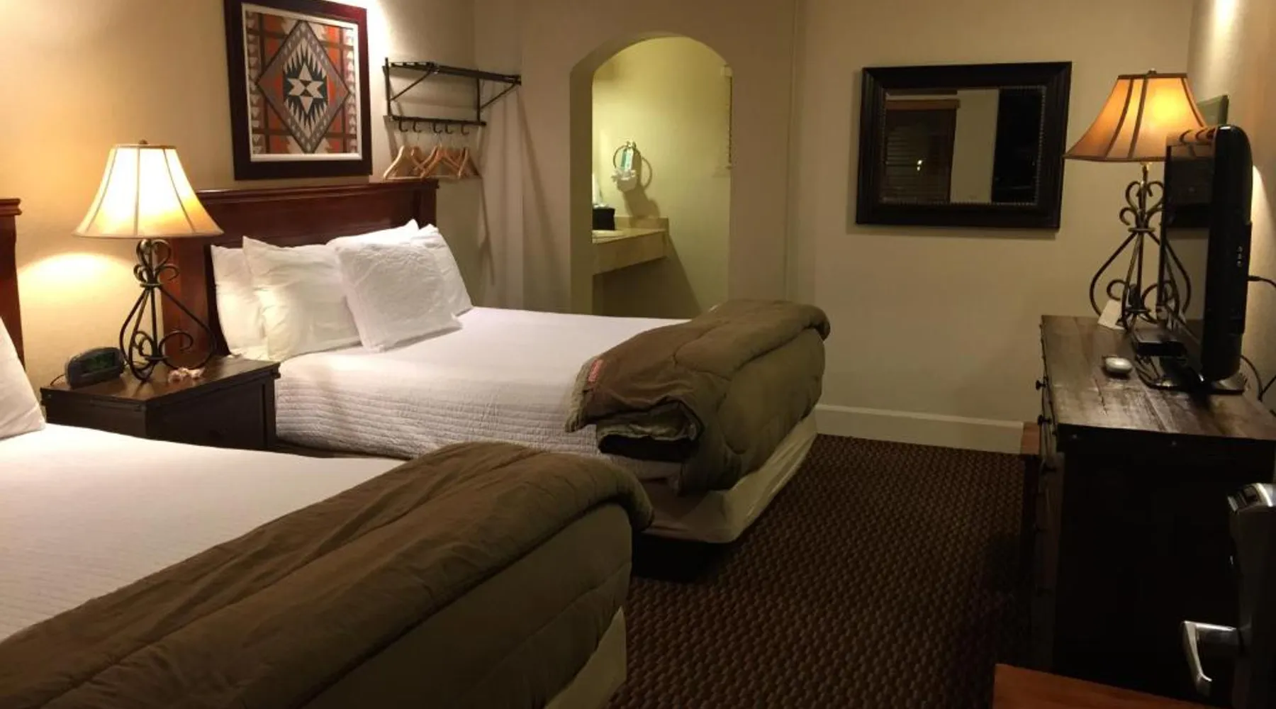 The Lodge on Route 66 is a motel offering accommodations in Williams. Featuring a tour desk, this property also provides guests with a terrace. Free WiFi is featured. All units in the motel are equipped with a flat-screen TV with satellite channels, a coffee machine and a private bathroom with a bath and free toiletries. Select rooms here will provide you with a seating area. A continental breakfast can be enjoyed in the breakfast area. Flagstaff is 30 mi from The Lodge on Route 66. The nearest airport is Flagstaff Pulliam Airport, 30 mi from the property. This double room has air conditioning and satellite TV.